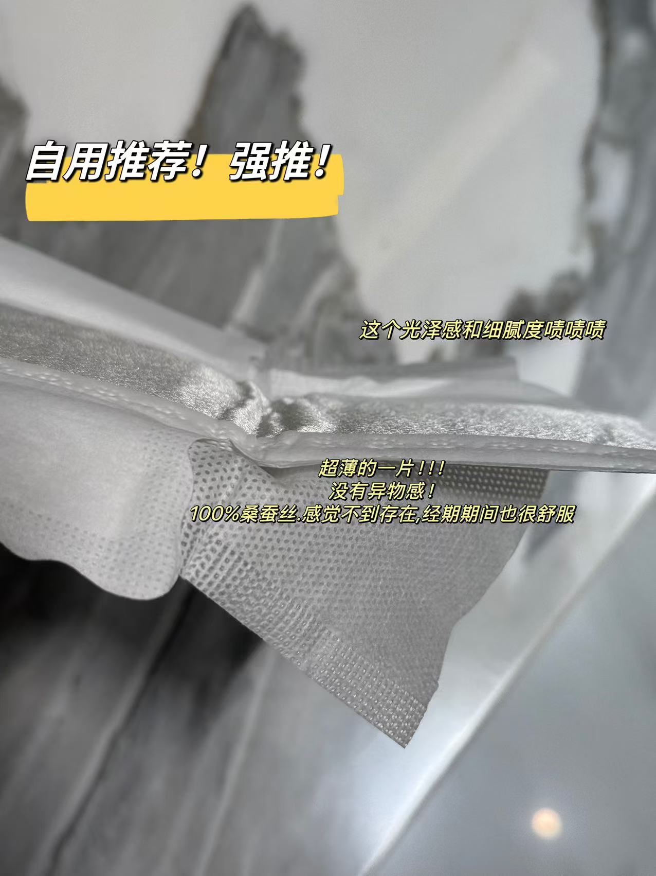 超超超超好用的卫生巾!错过会后悔!!💯%天然优质桑蚕丝表层!桑蚕丝纤维细腻顺滑☁️敏感肌放心用!!!!
