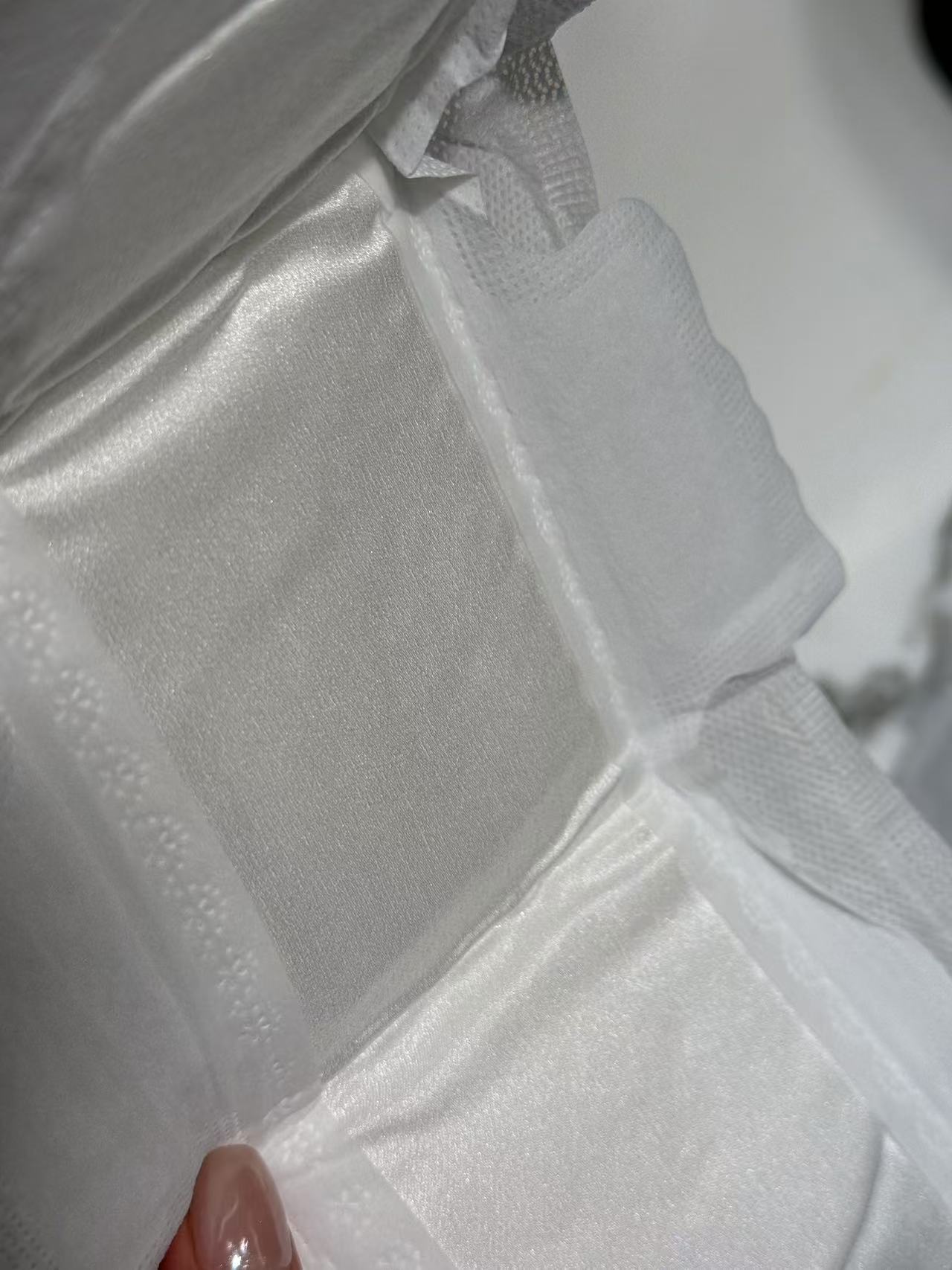【产品材质】蚕丝面层、无纺布、无尘纸、高分子吸收树脂、PE膜、离型纸
