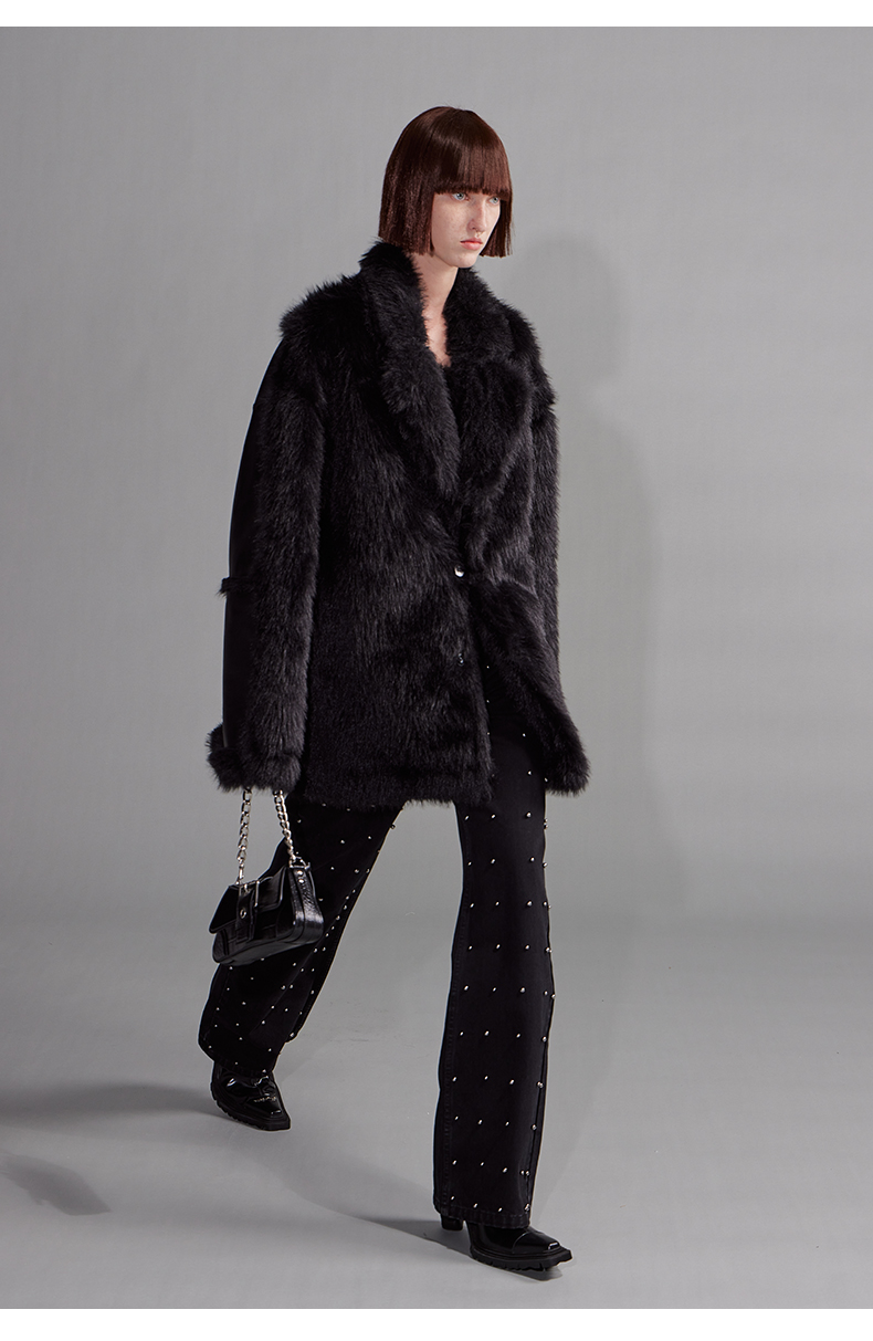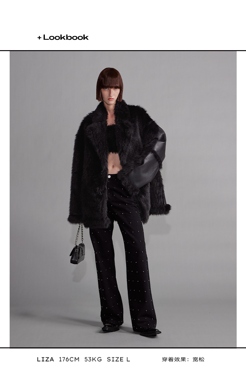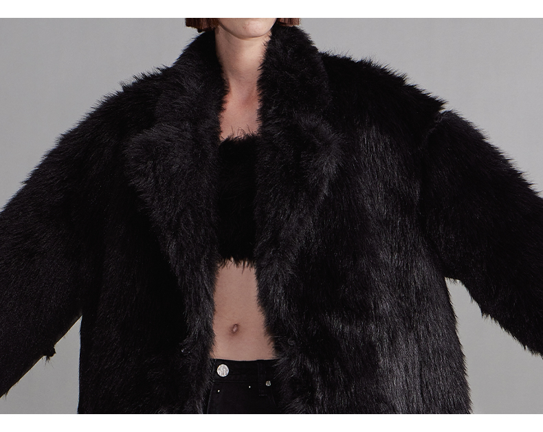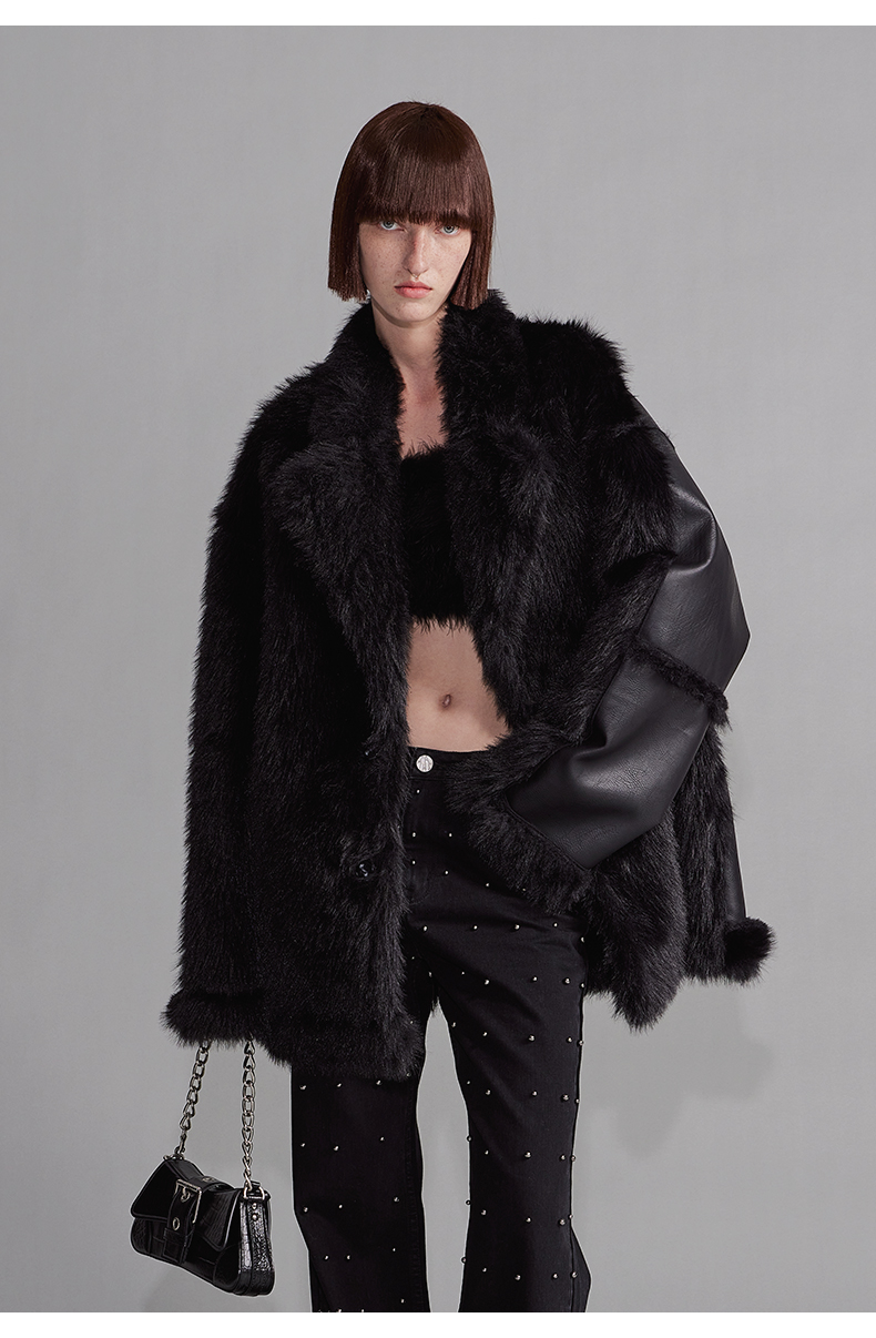 NUTH“移调曲”|黑色皮草大衣中长款宽松皮毛一体外套