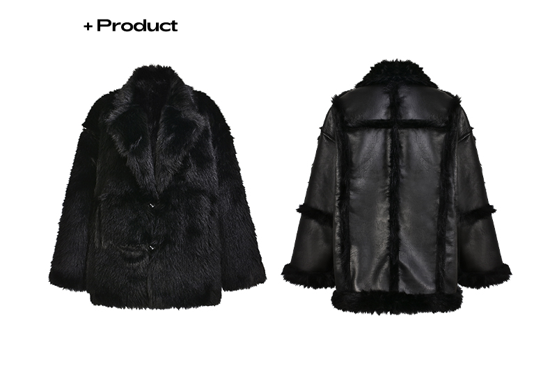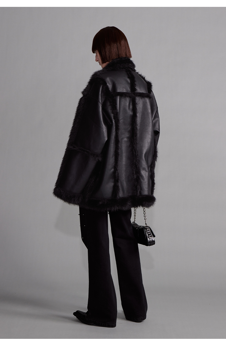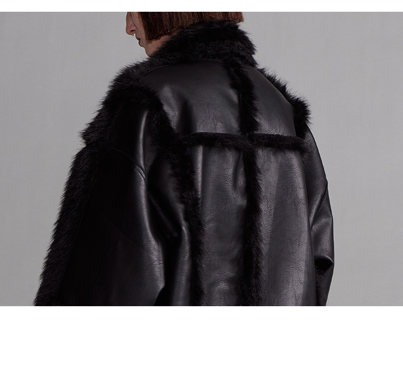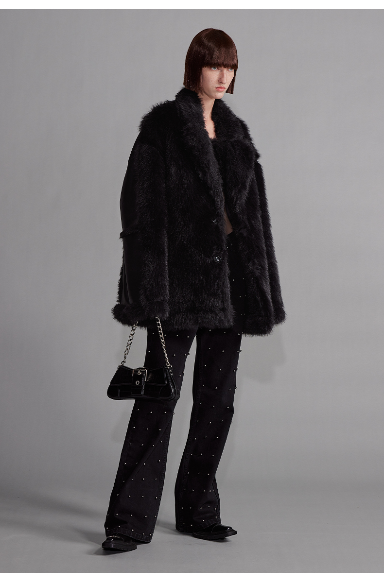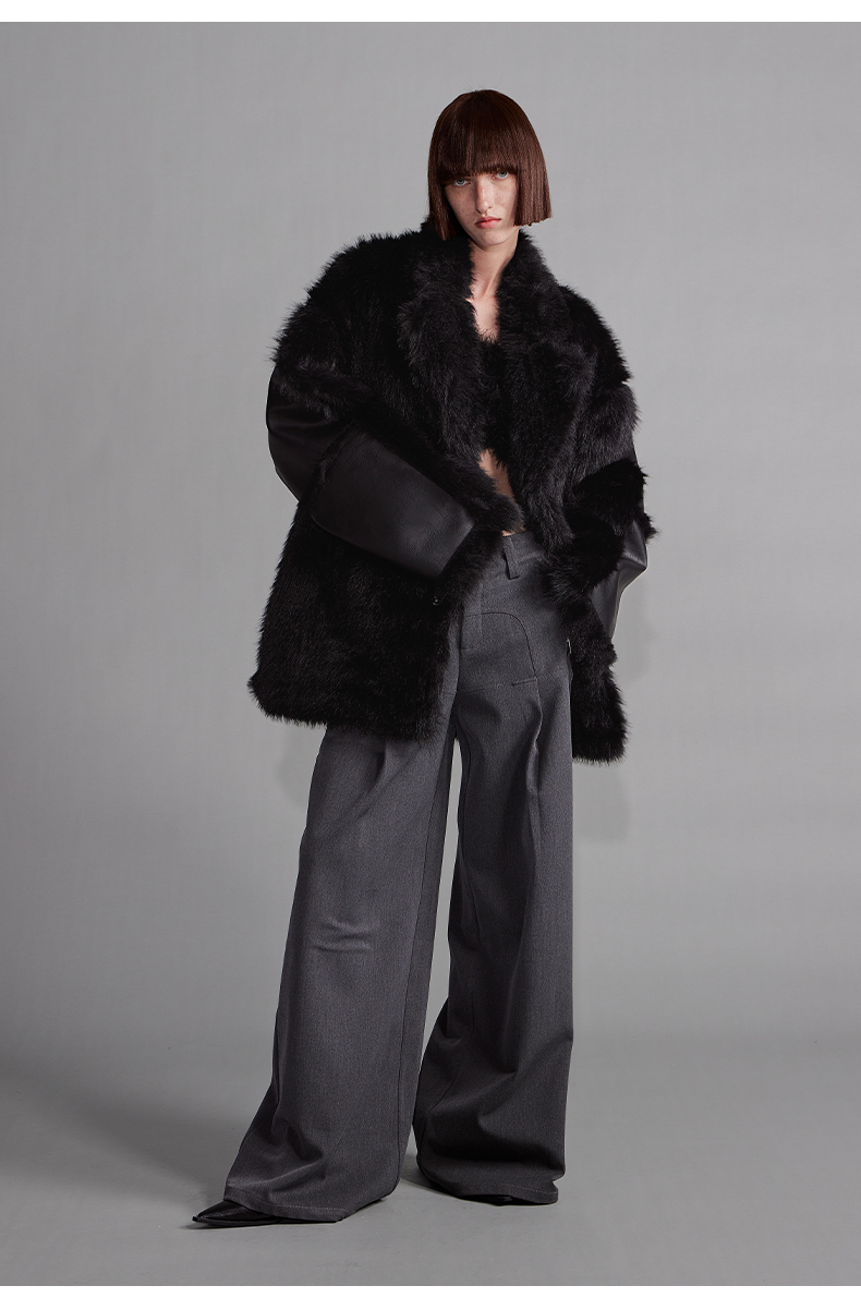 NUTH“移调曲”|黑色皮草大衣中长款宽松皮毛一体外套
