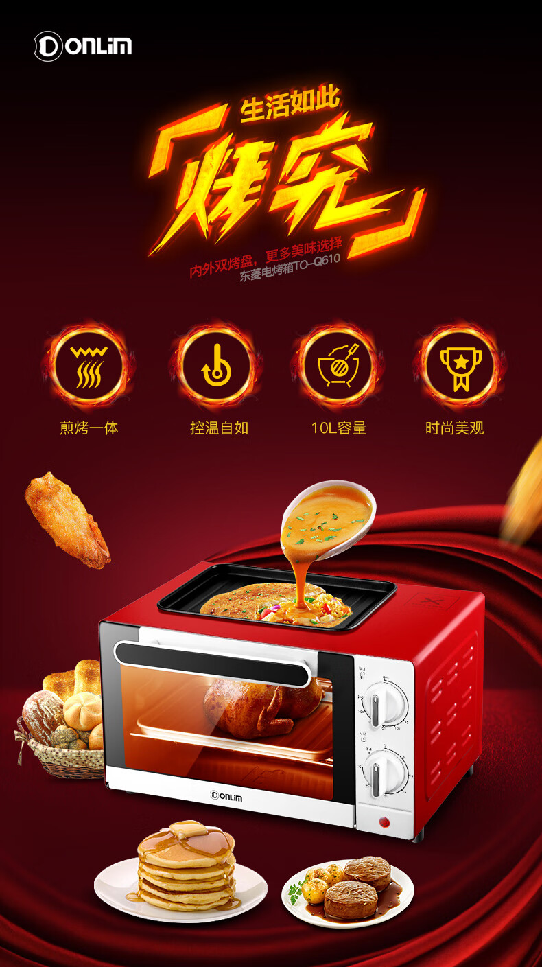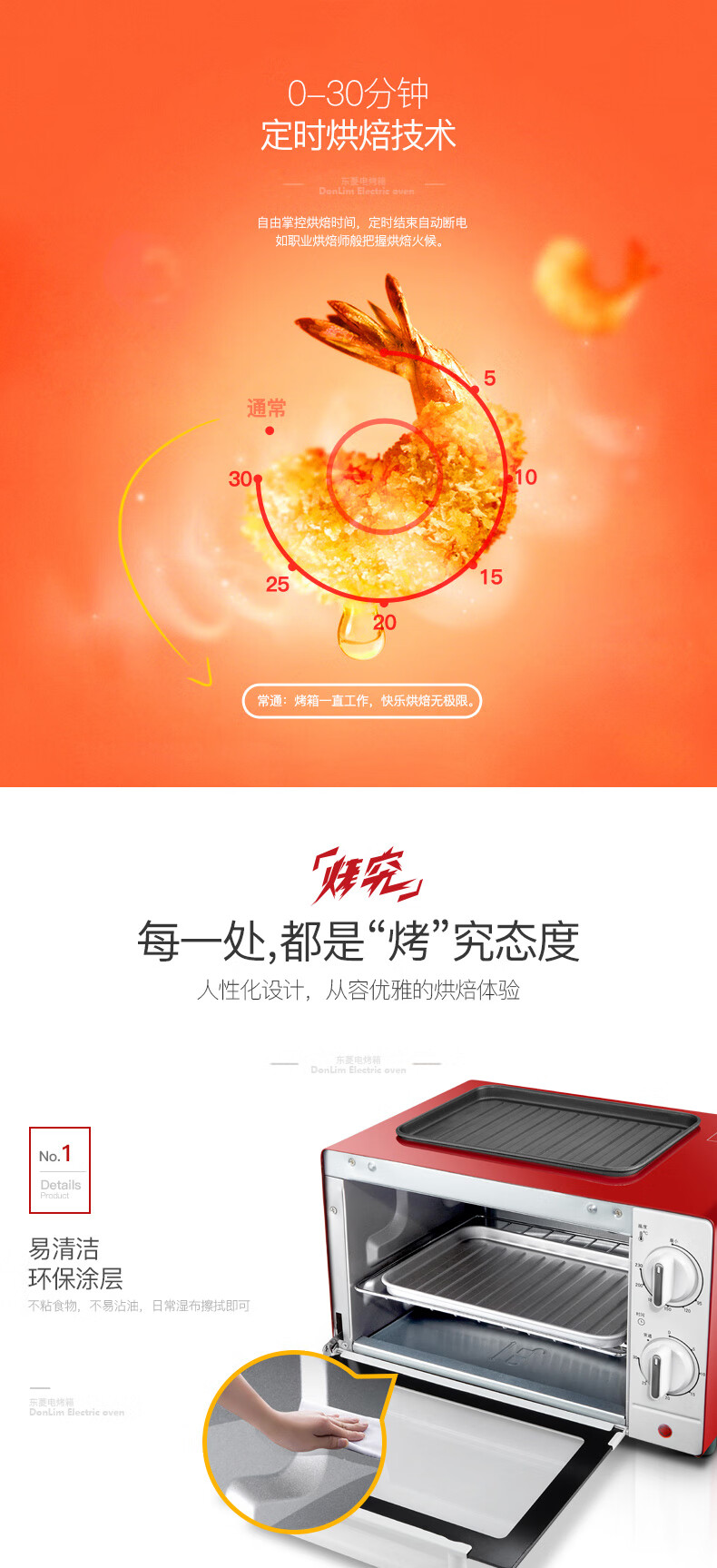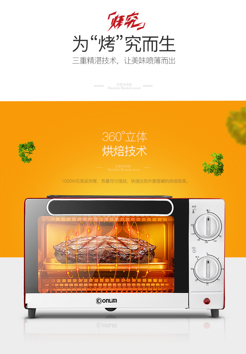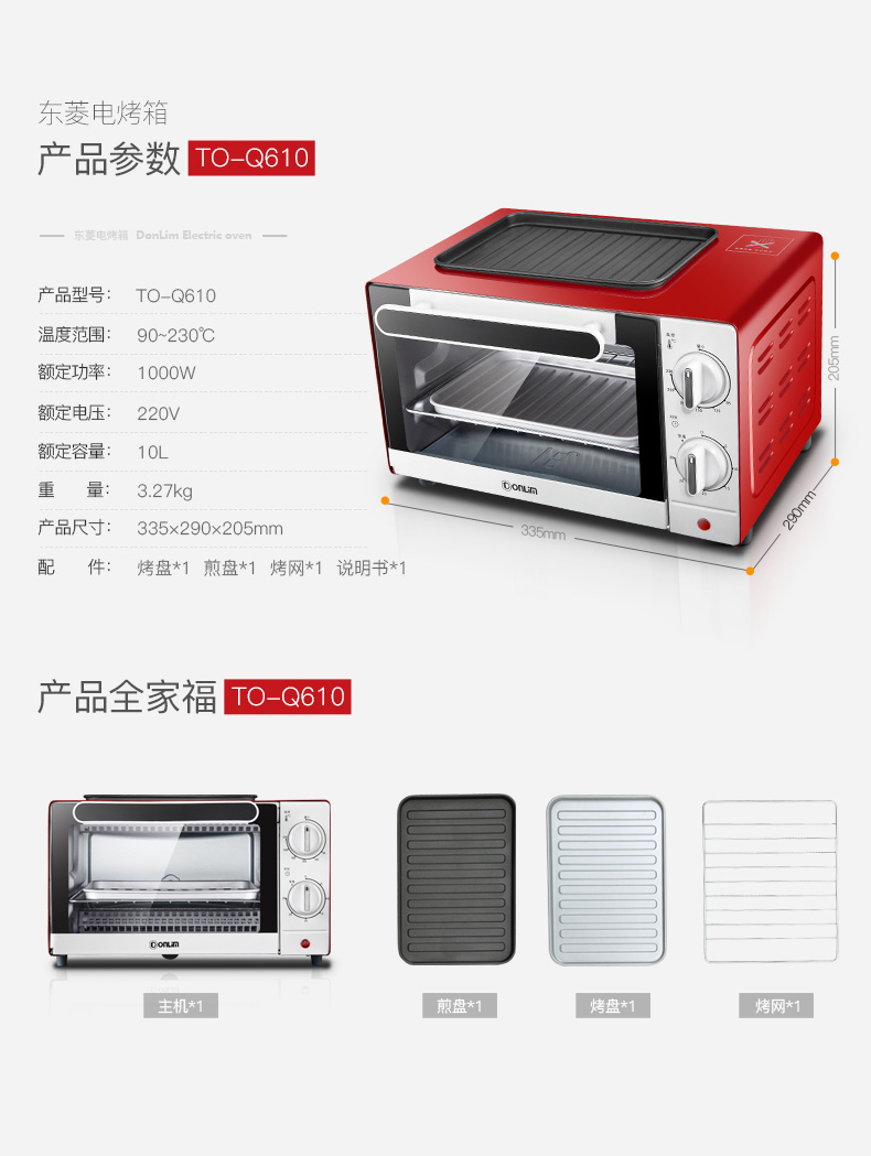 东菱(Donlim)电烤箱 家用小型烘培多功能 小烤箱 全自动烤箱 TO-610H 心选到家