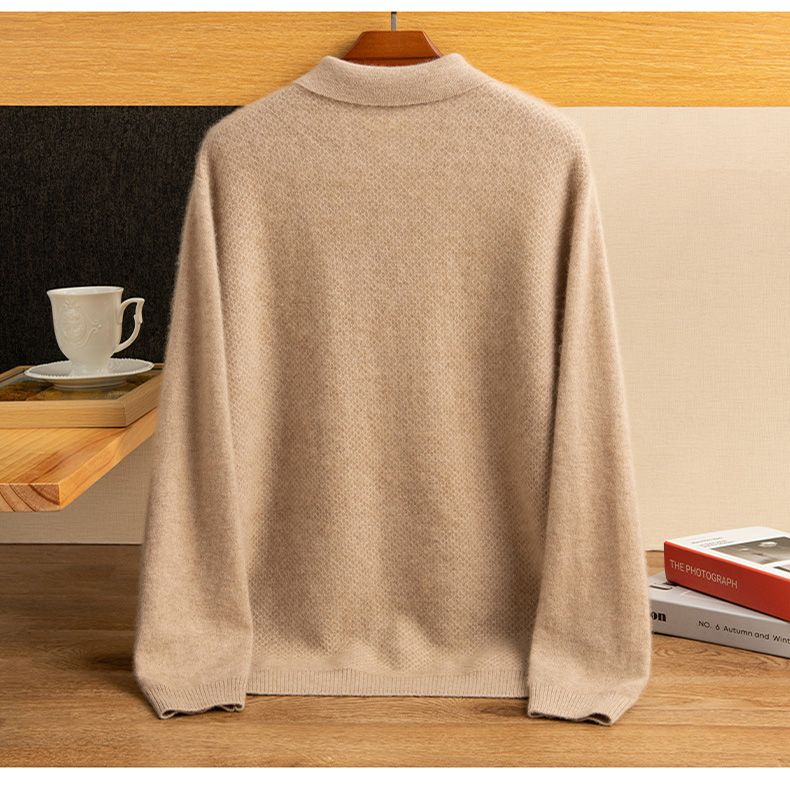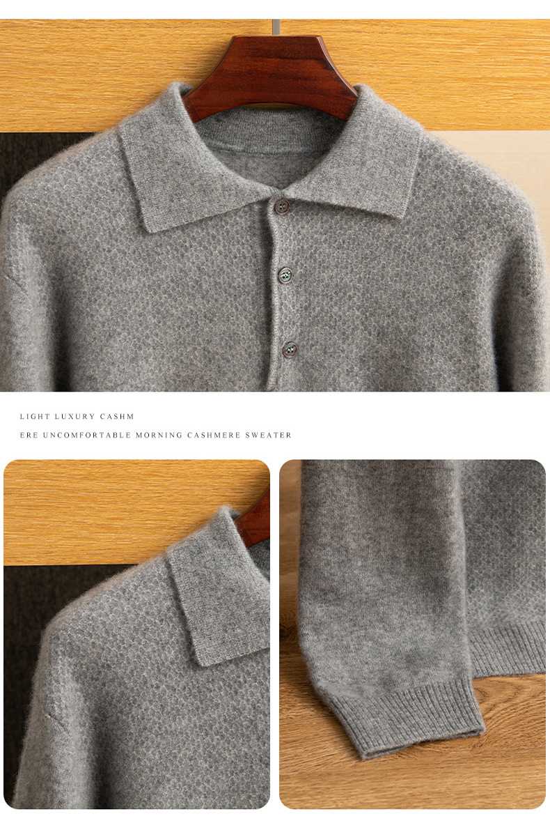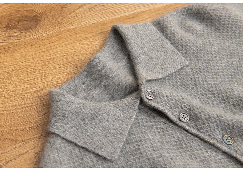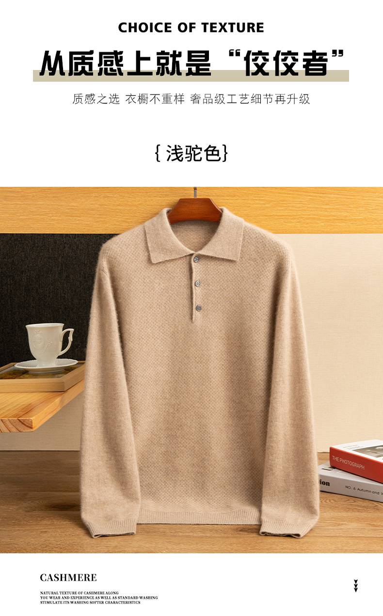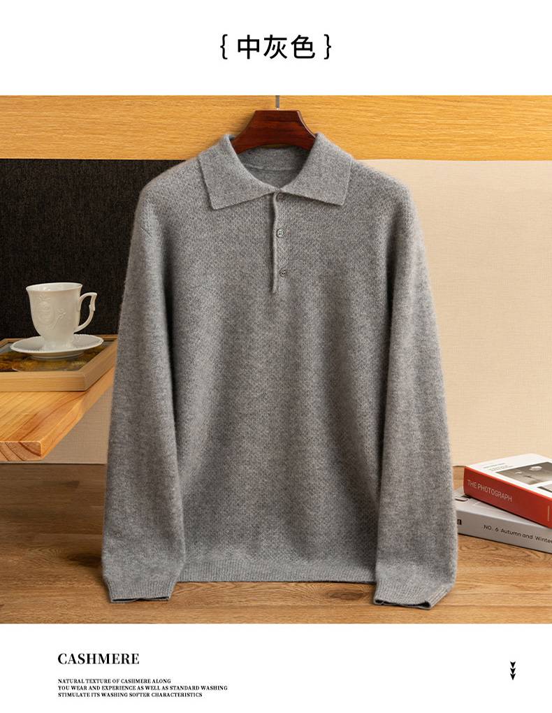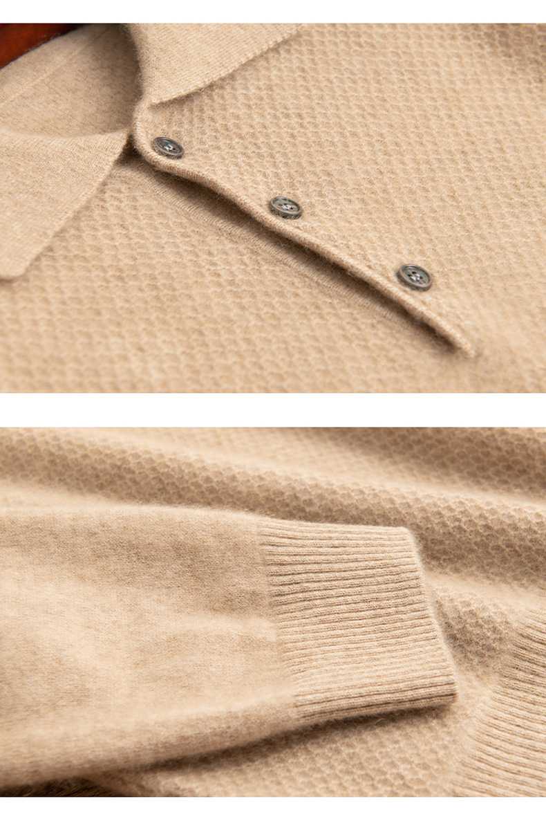 一件过冬~100%纯山羊绒衫男款POLO领蜂窝针毛衣针织衫