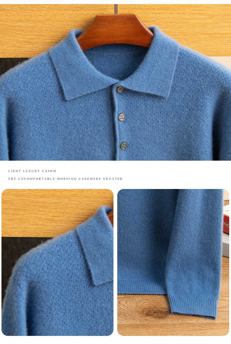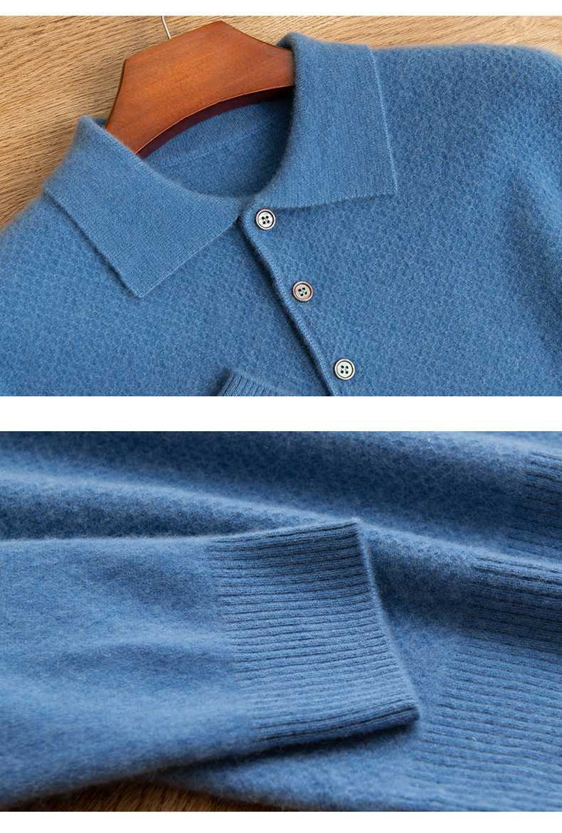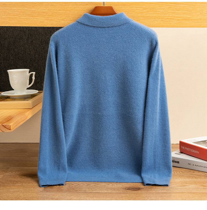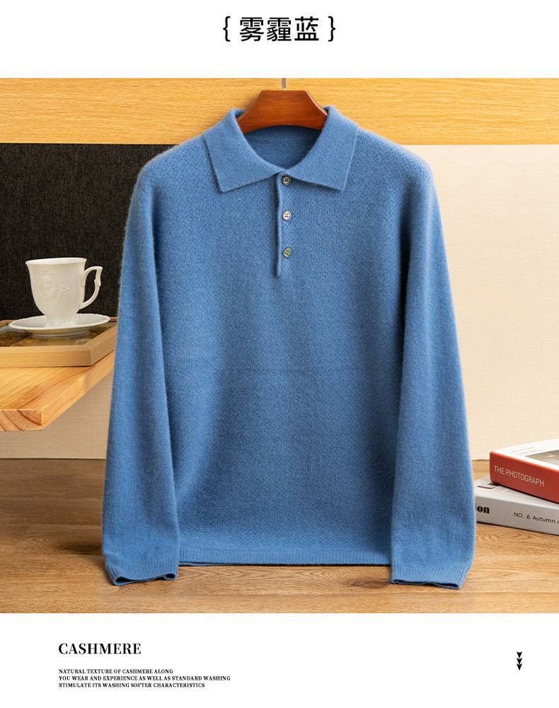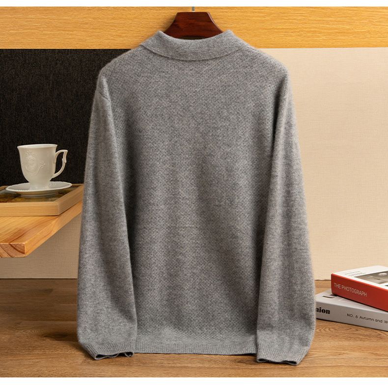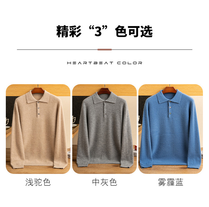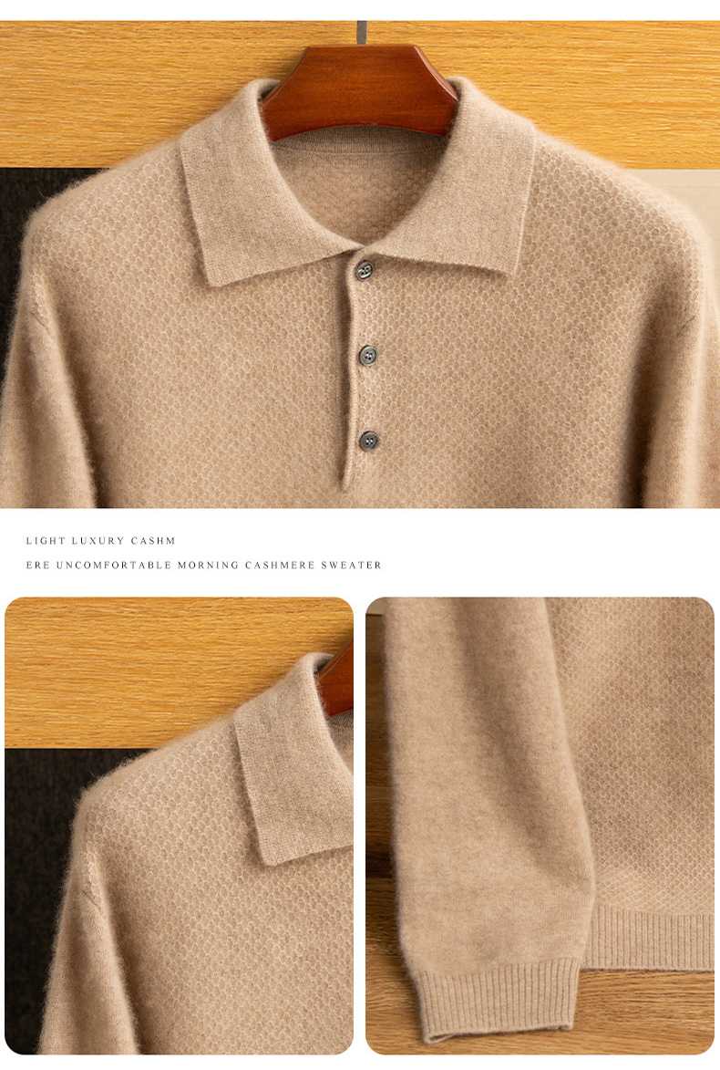 一件过冬~100%纯山羊绒衫男款POLO领蜂窝针毛衣针织衫