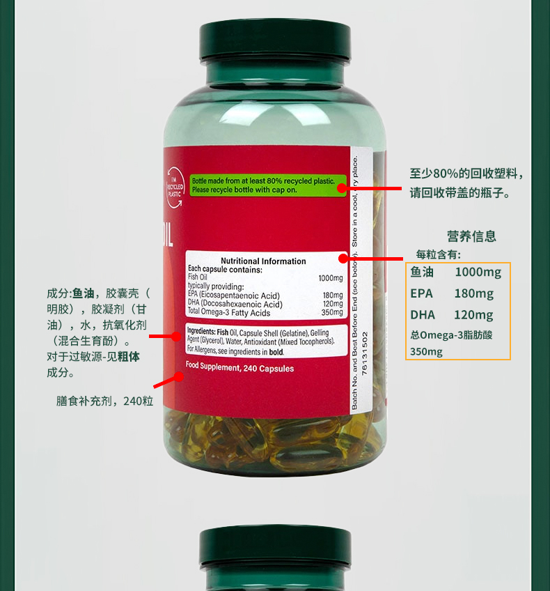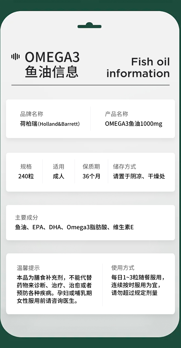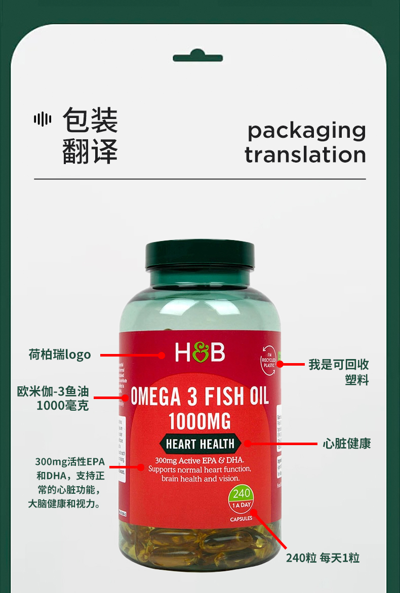 HB 荷柏瑞 深海鱼油1000mg 240片/瓶