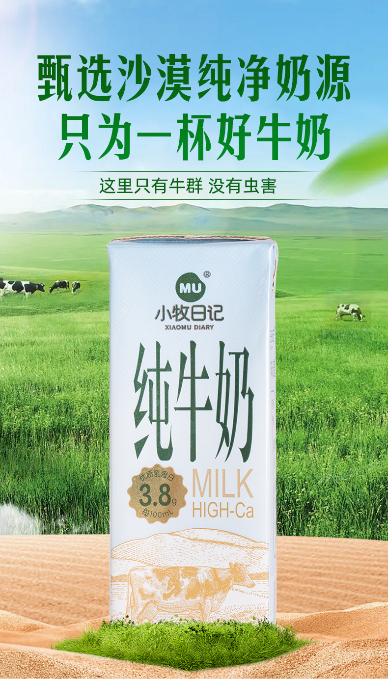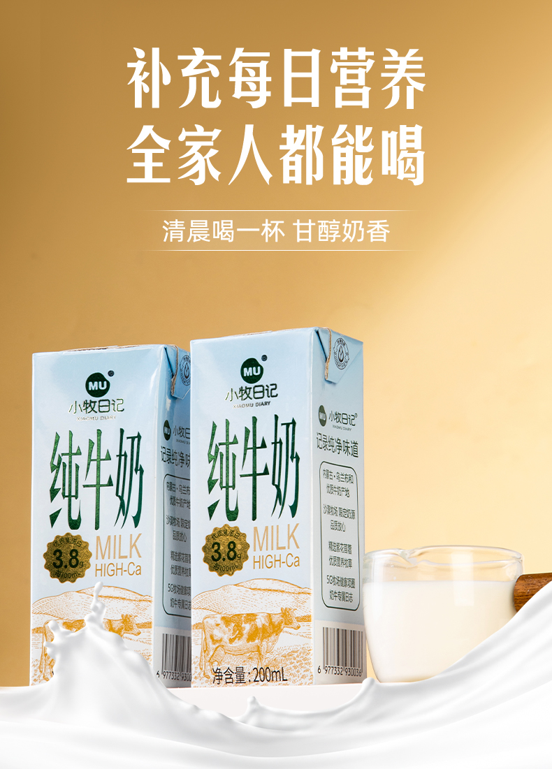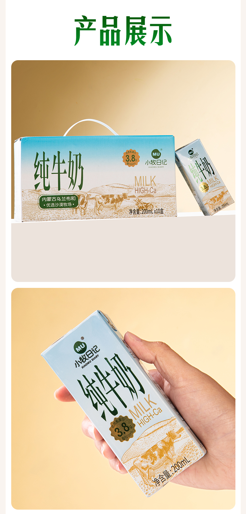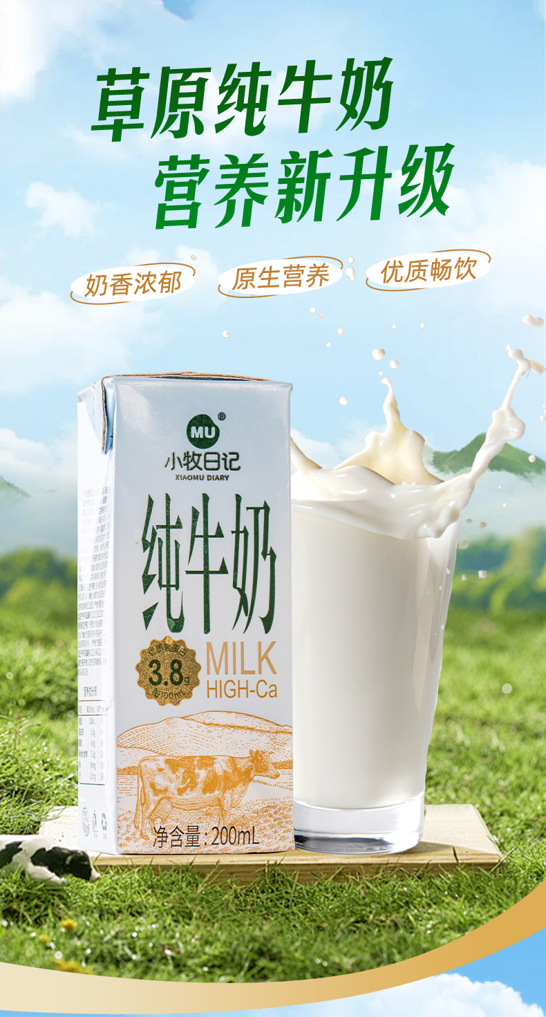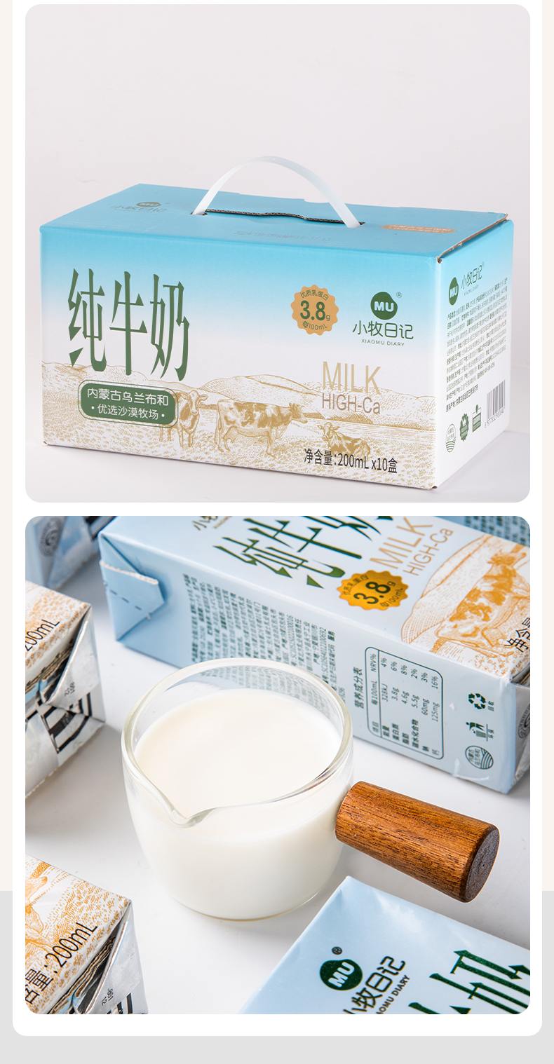 严选 | 小牧日记内蒙古纯牛奶 200ml*10盒/箱 蛋白质含量3.8克 配料表只有生牛乳