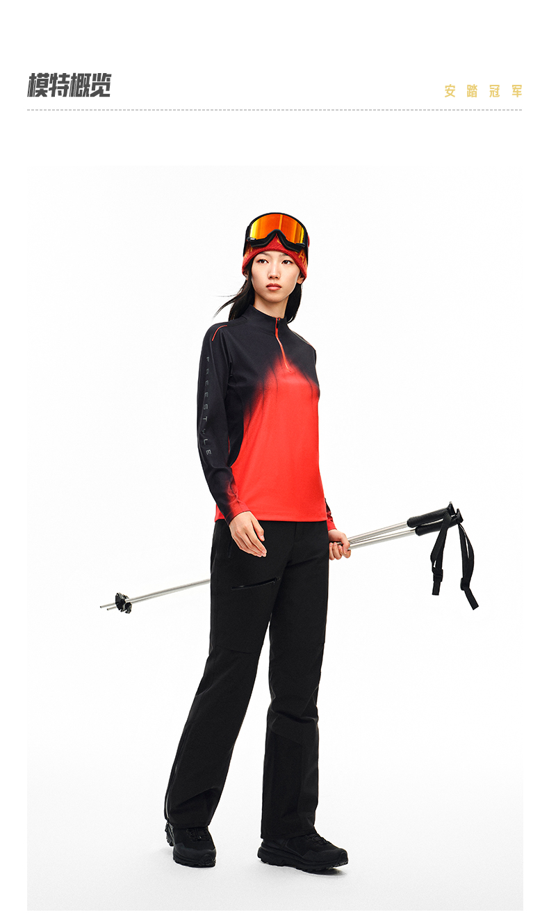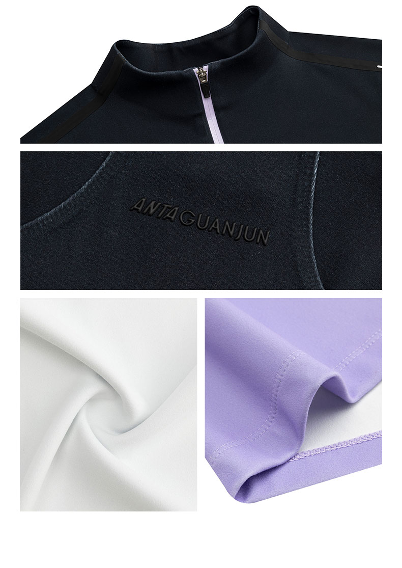 安踏冠军户外滑雪系列磨毛长袖针织衫女半拉链运动长T恤162540412