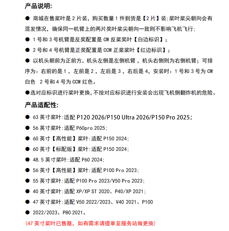 极飞 20-26款桨叶【不含垫片,多款型号,请按适配机型选购】