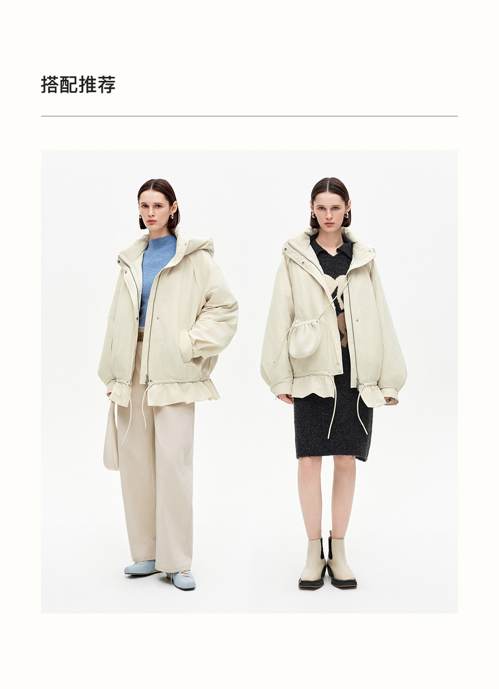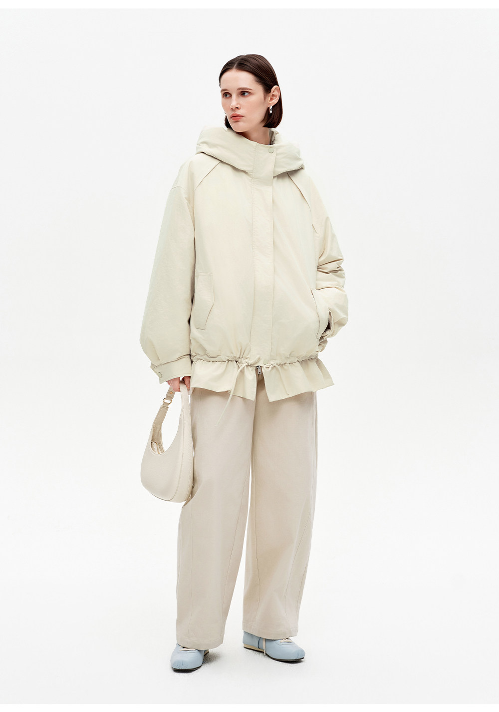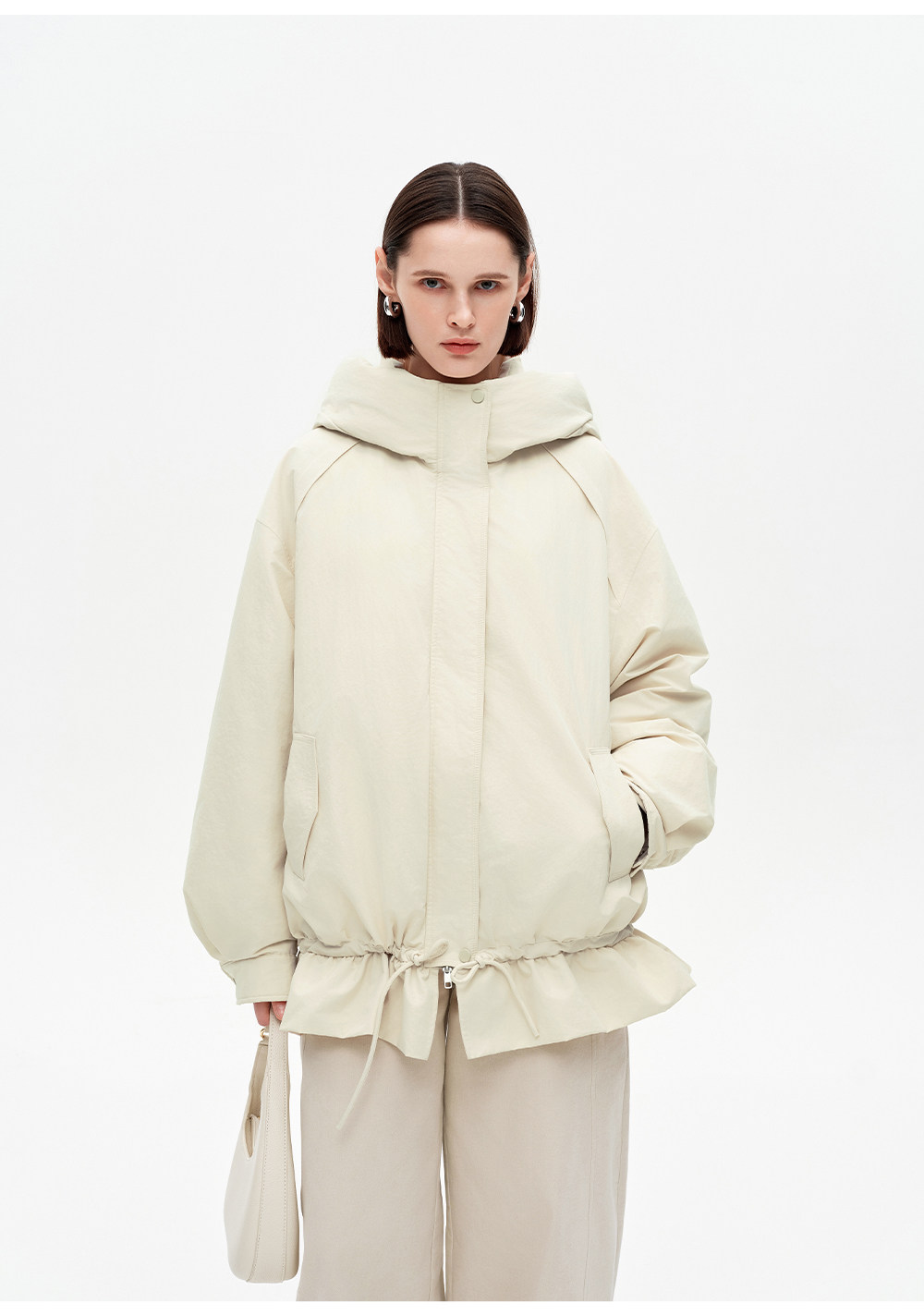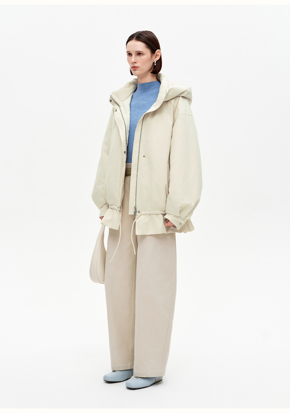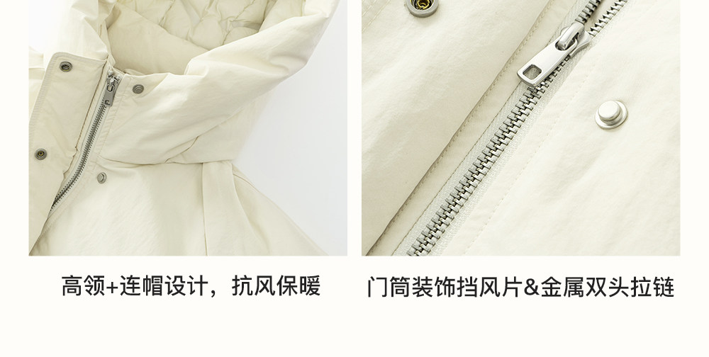 SELFWHO90白鸭连帽高领双头拉链羽绒服女2025冬新款防风保暖外套