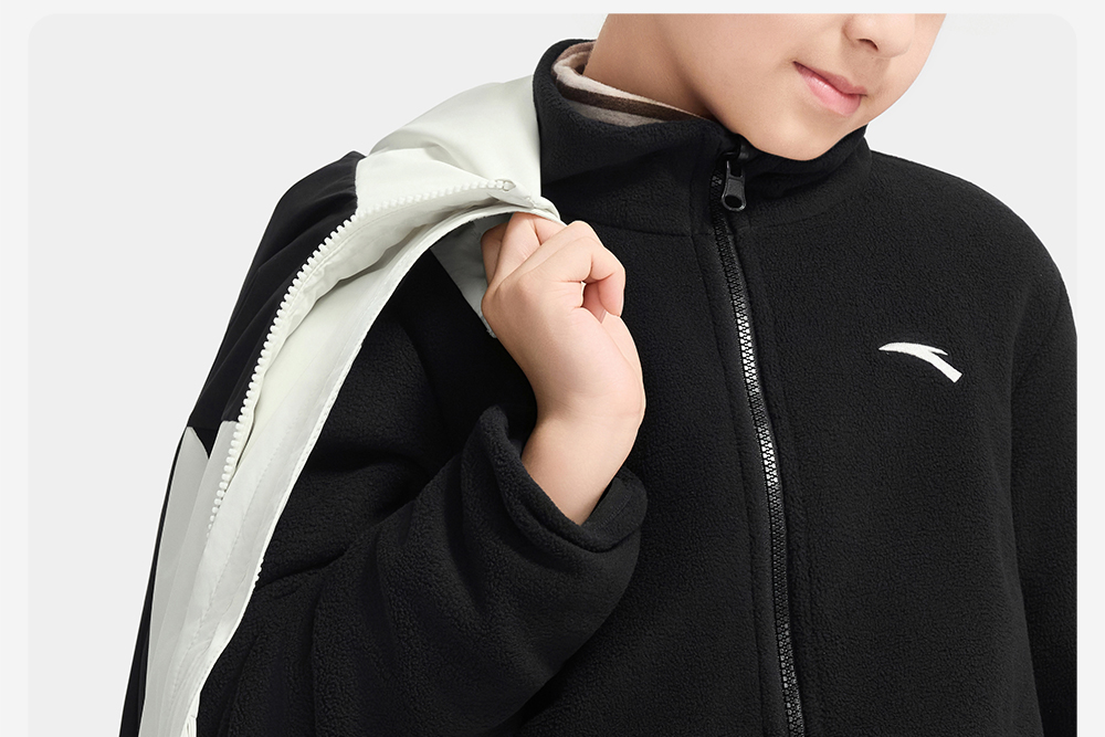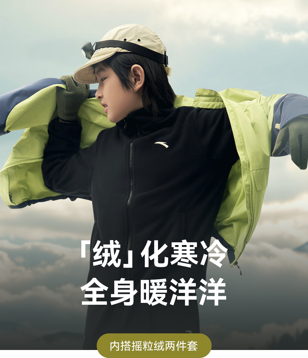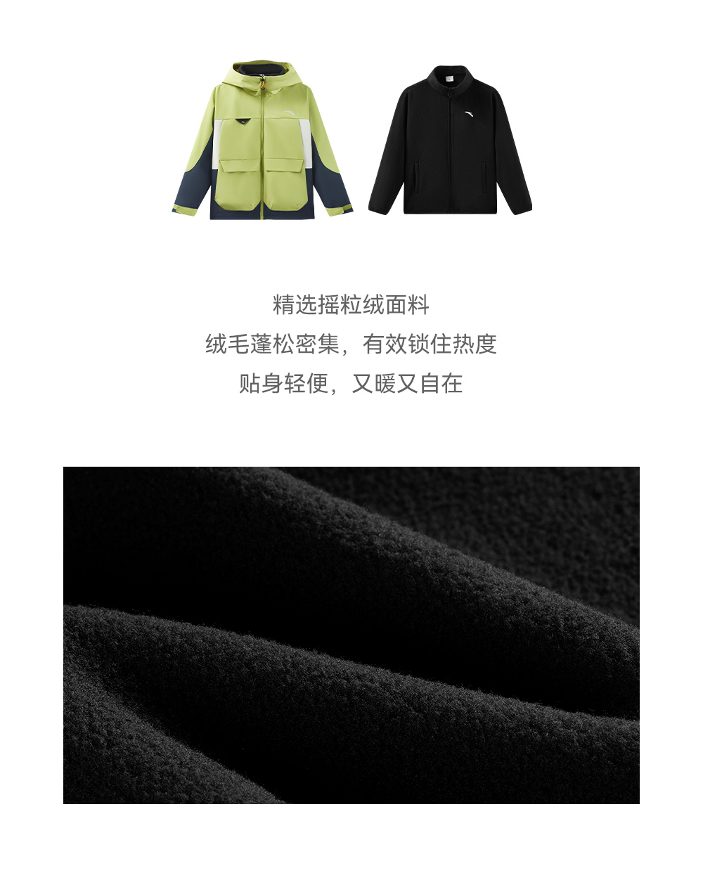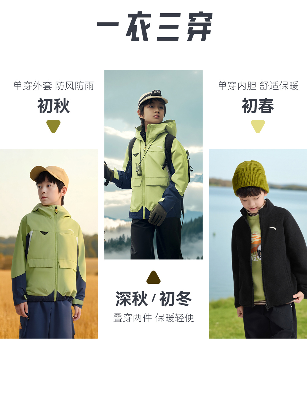 安踏儿童晴雨甲外套2025秋冬新款摇粒两件套三合一户外防风雨外套352546601