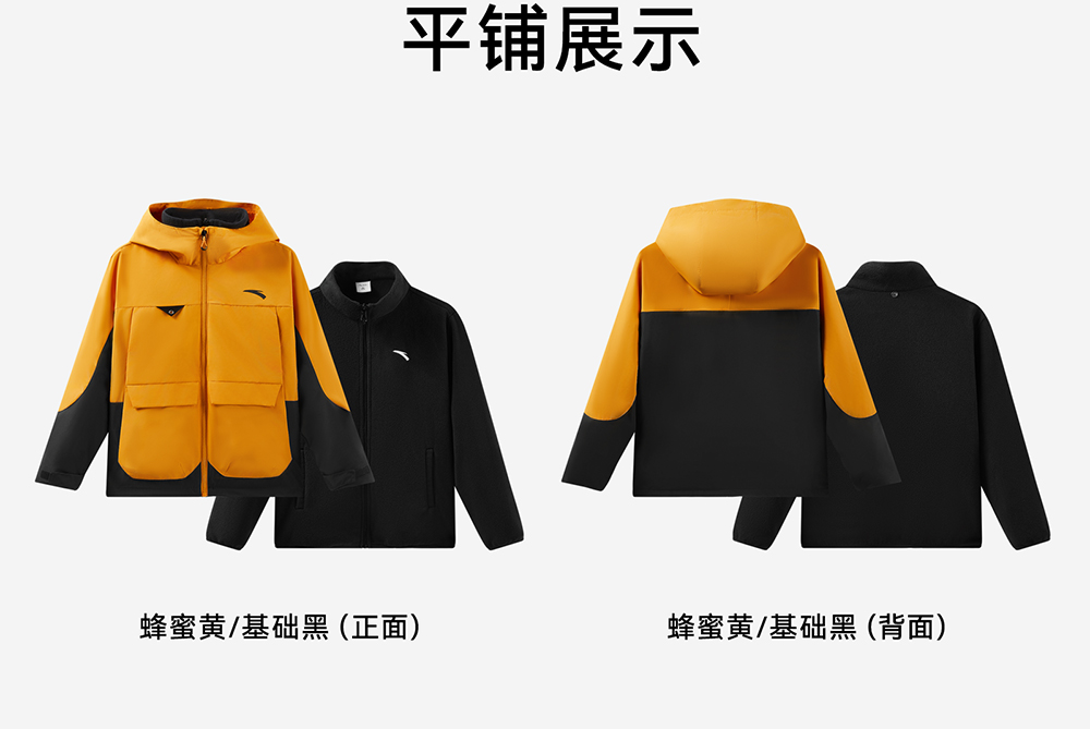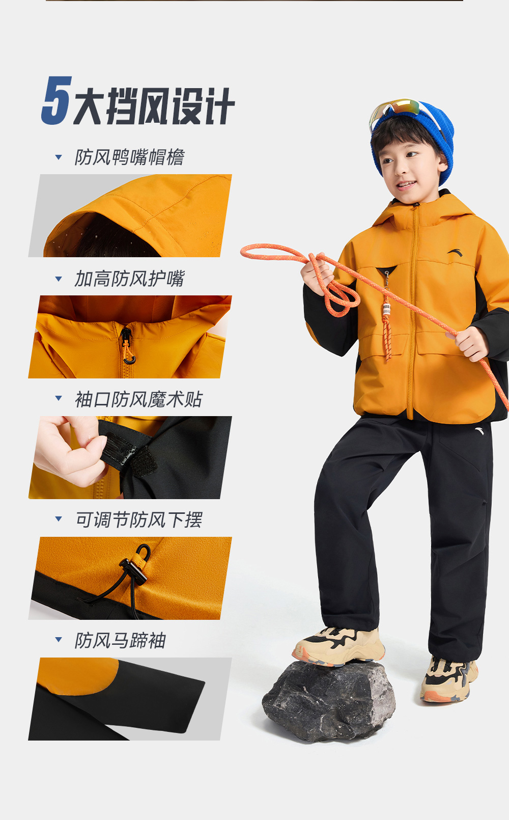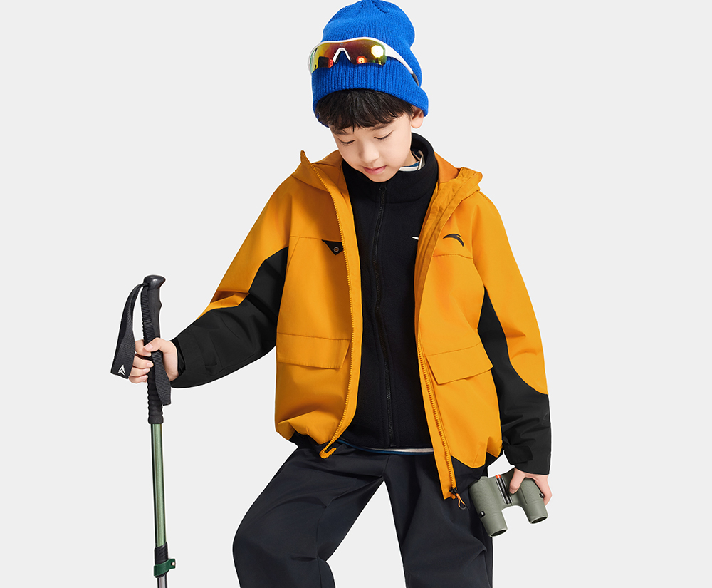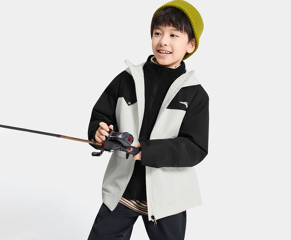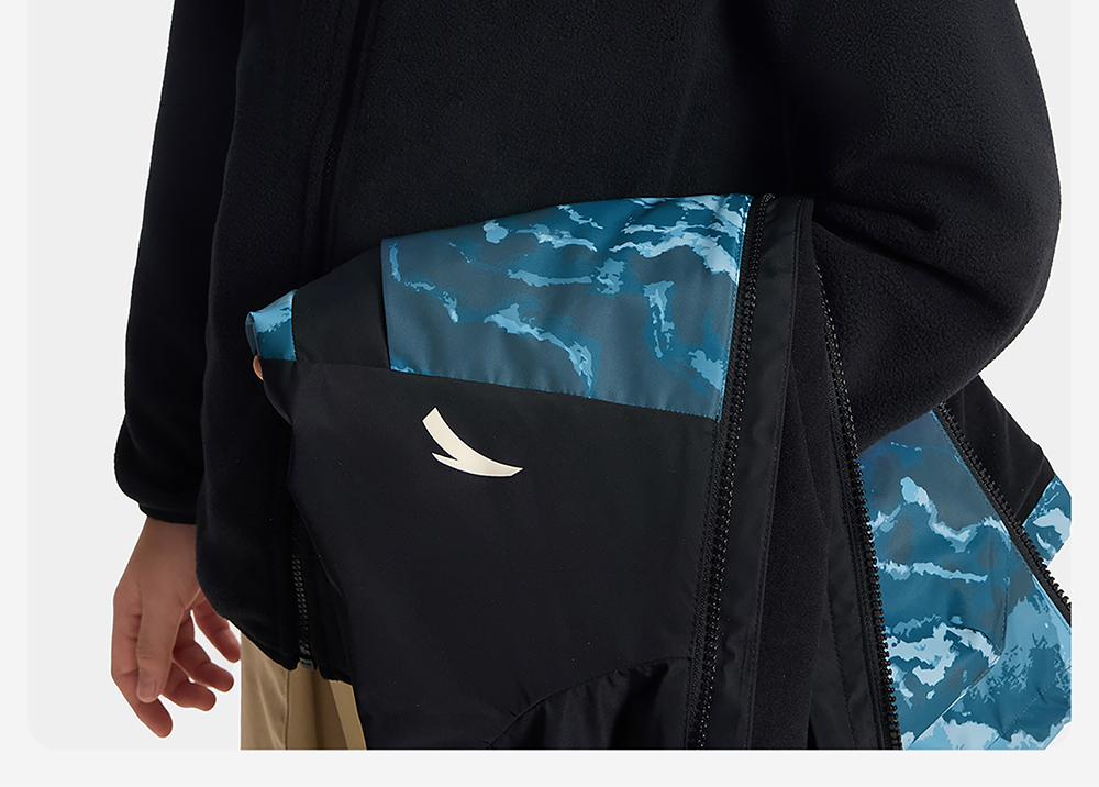安踏儿童晴雨甲外套2025秋冬新款摇粒两件套三合一户外防风雨外套352546601
