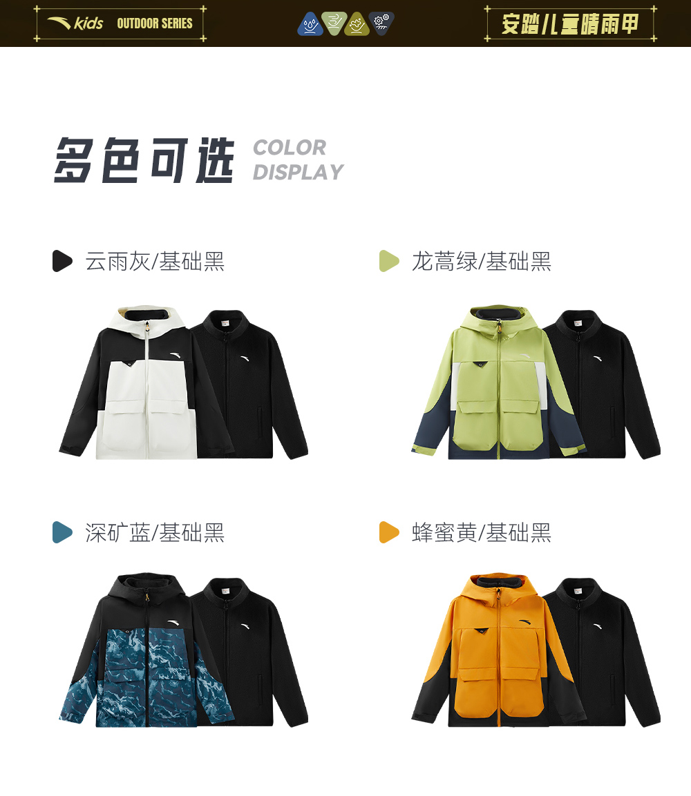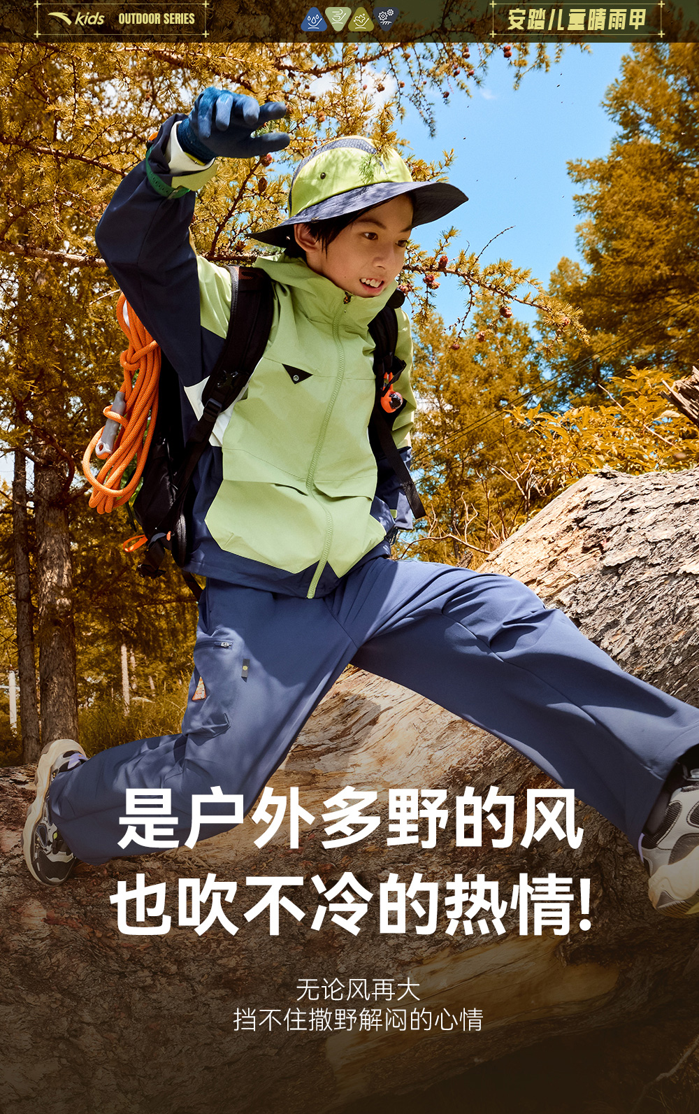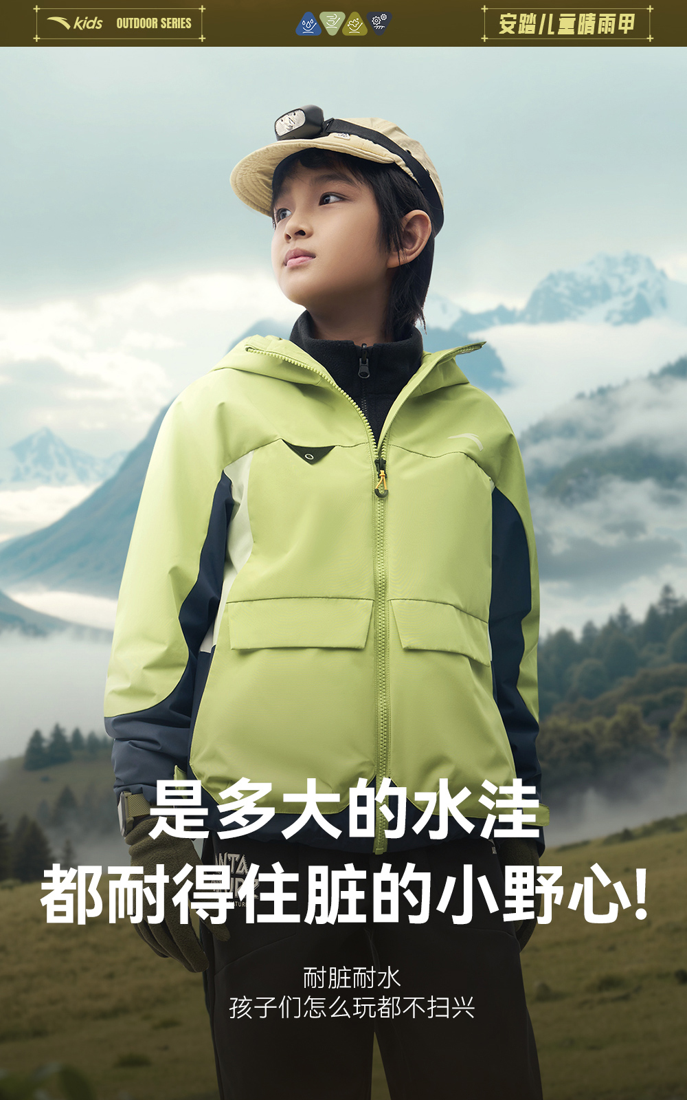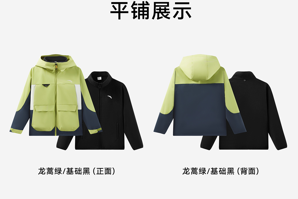 安踏儿童晴雨甲外套2025秋冬新款摇粒两件套三合一户外防风雨外套352546601