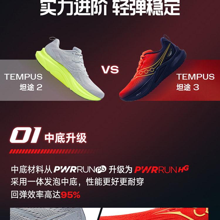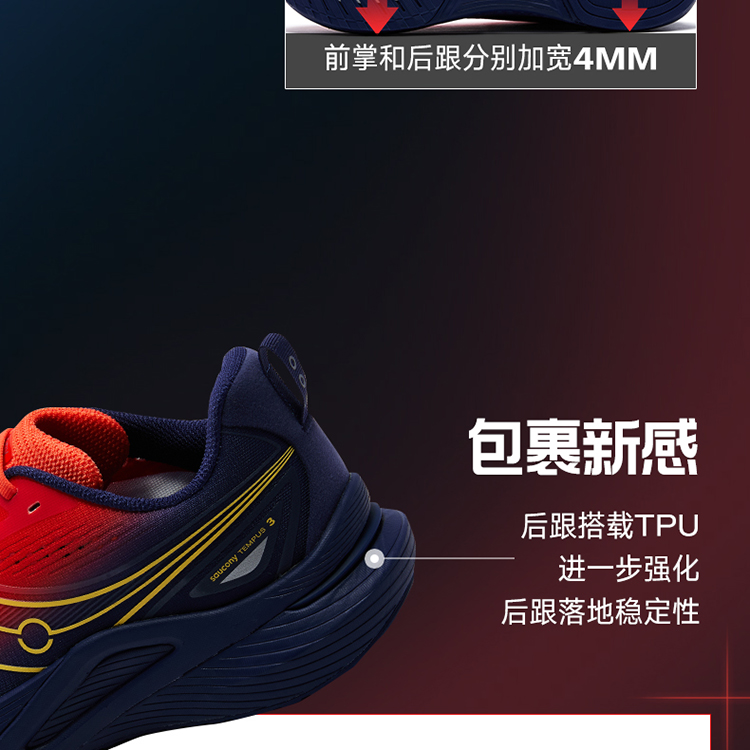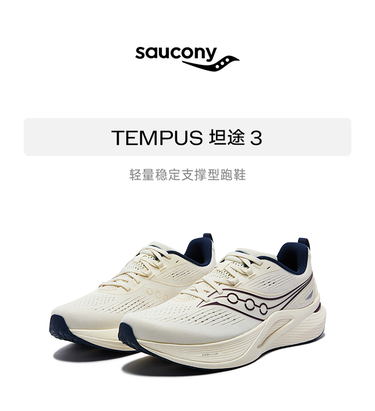 Saucony索康尼 TEMPUS坦途3稳定支撑型舒适慢跑鞋训练轻量运动鞋