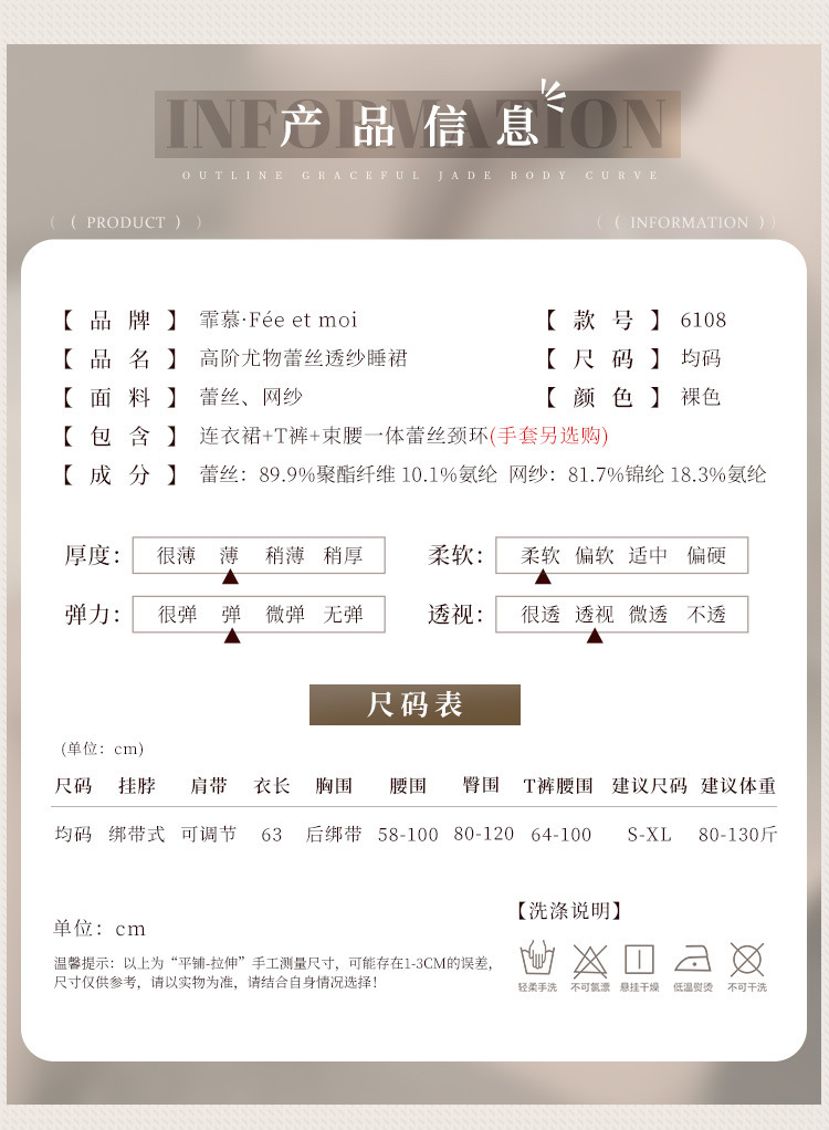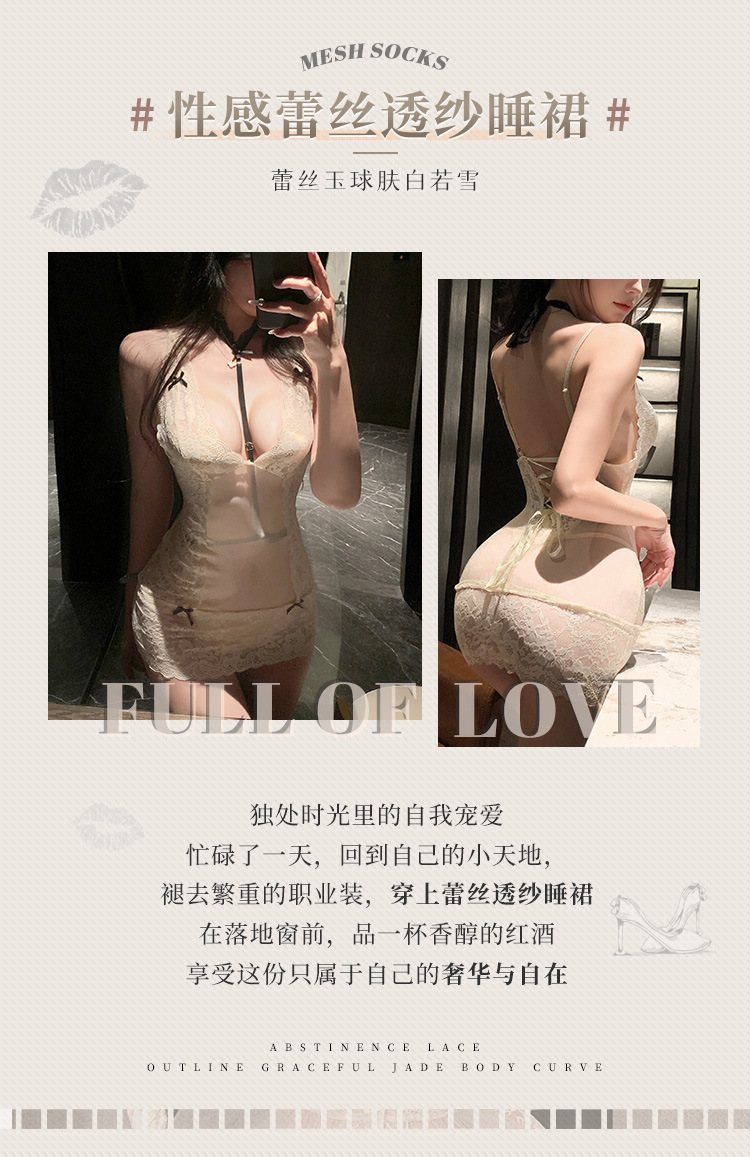 【霏慕】高阶尤物蕾丝透视诱惑包臀睡裙6108银灰色