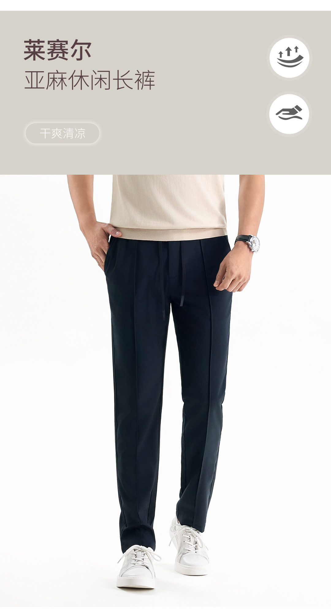 【轻旅系列】莱赛尔麻增高线系休闲裤透气凉爽九分夏季245T0C807N