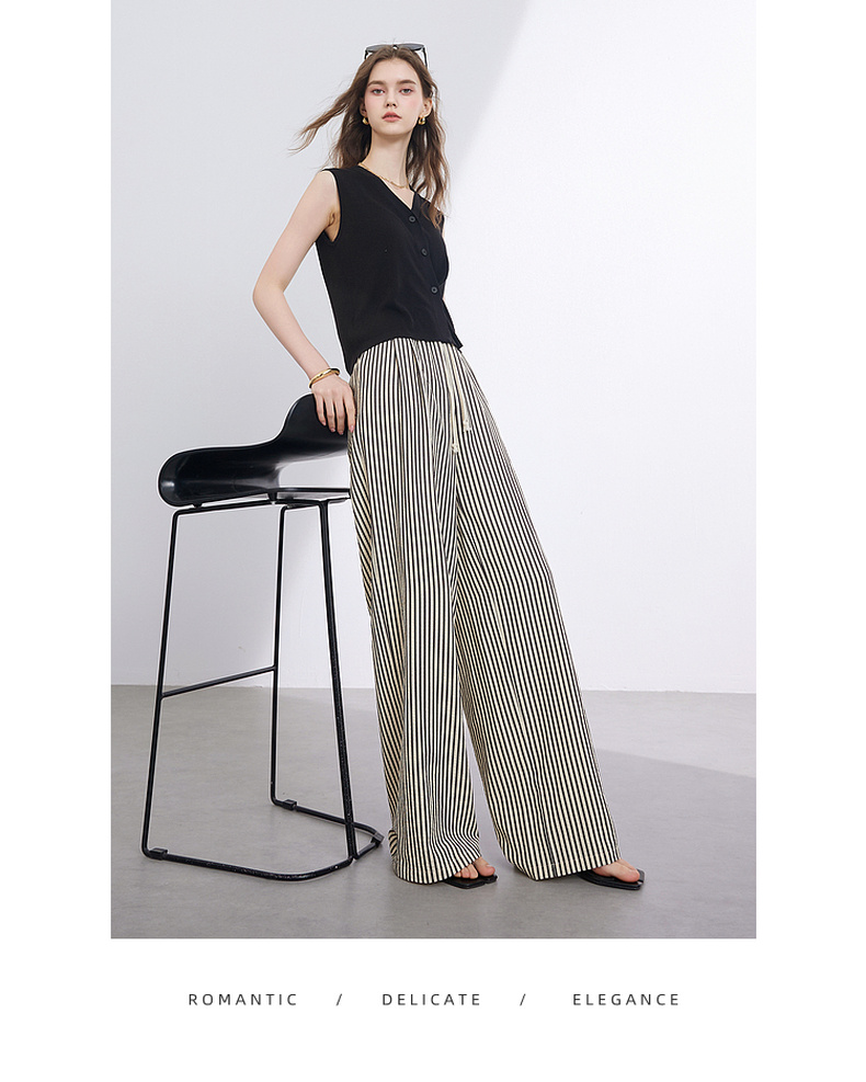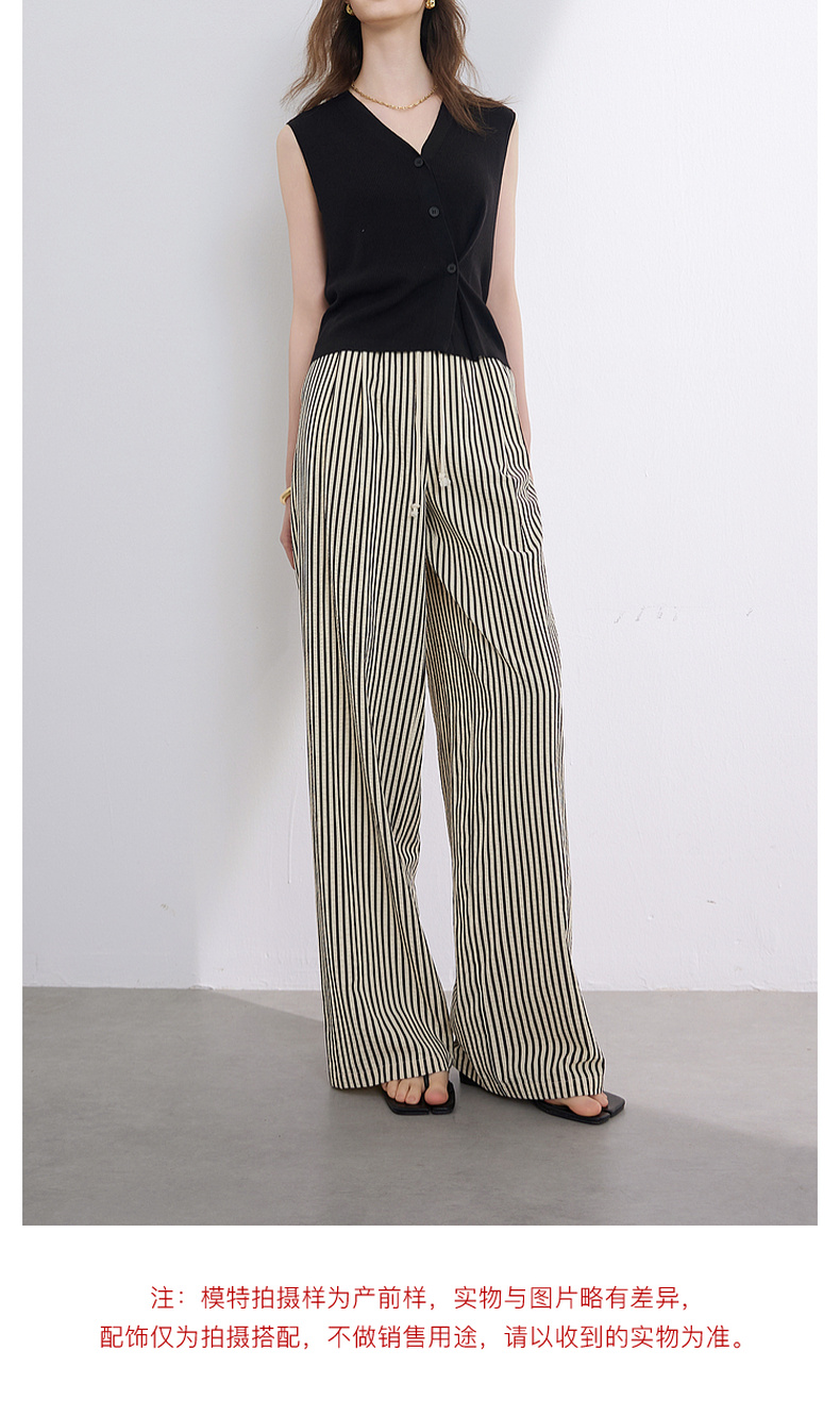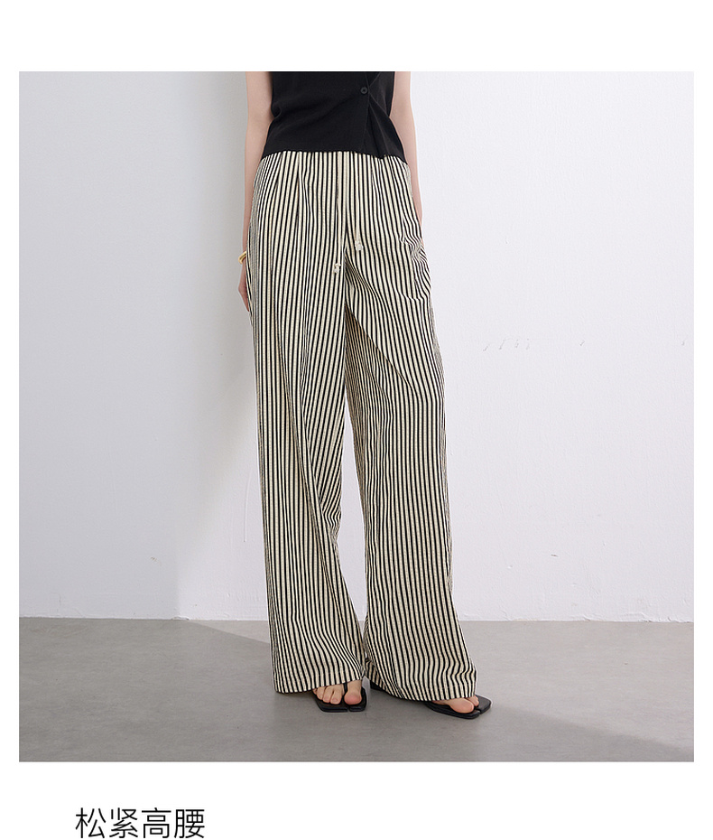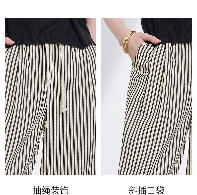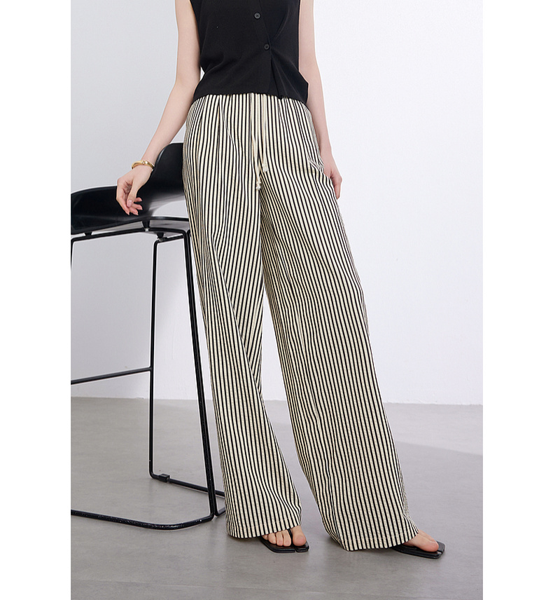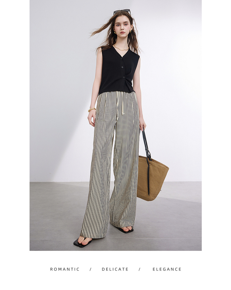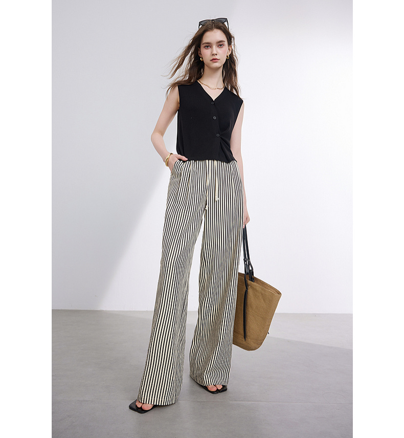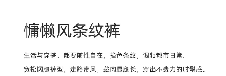 三彩2026夏季新款休闲裤条纹高腰宽松阔腿裤长裤慵懒轻薄M