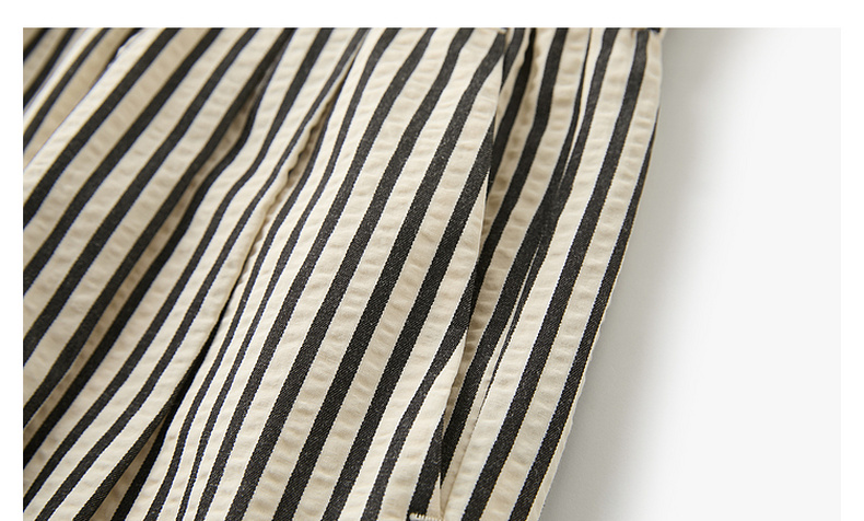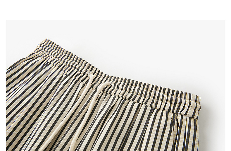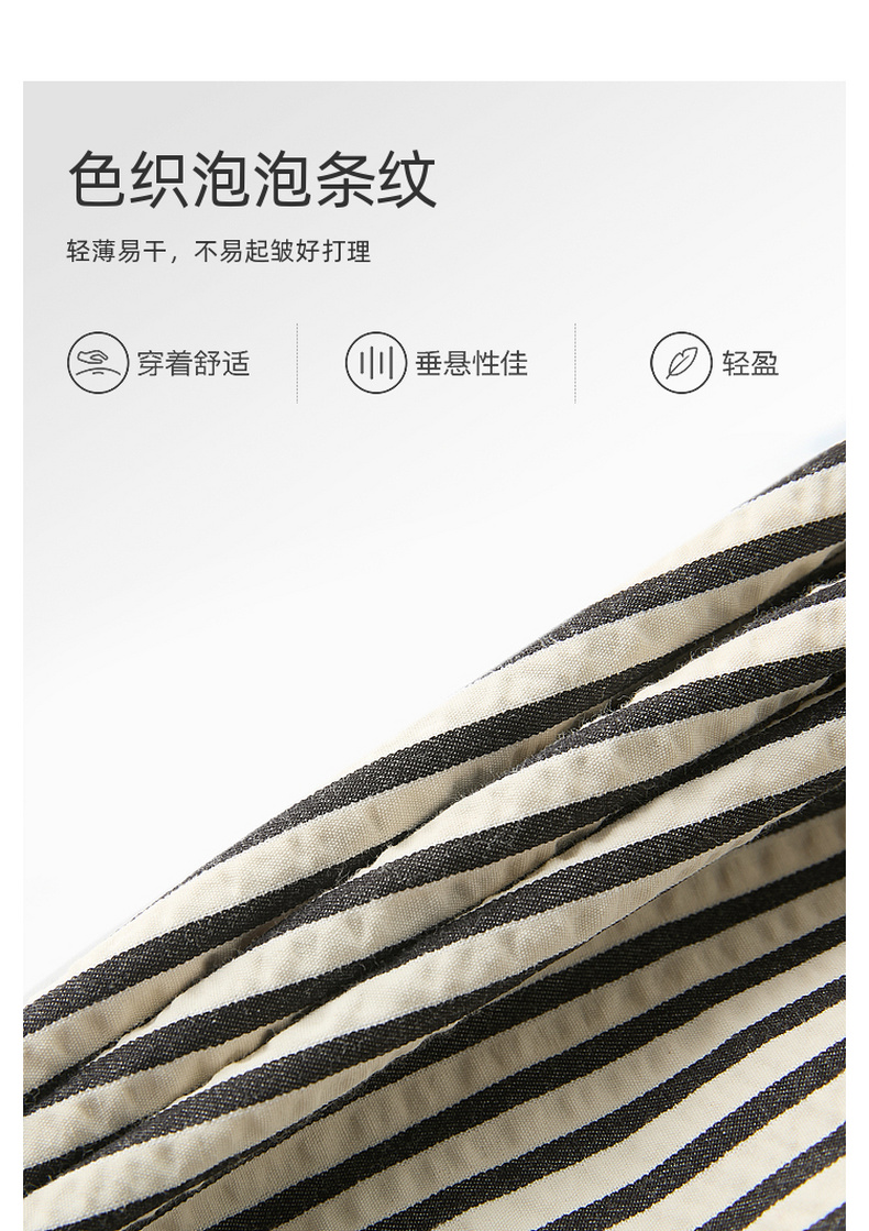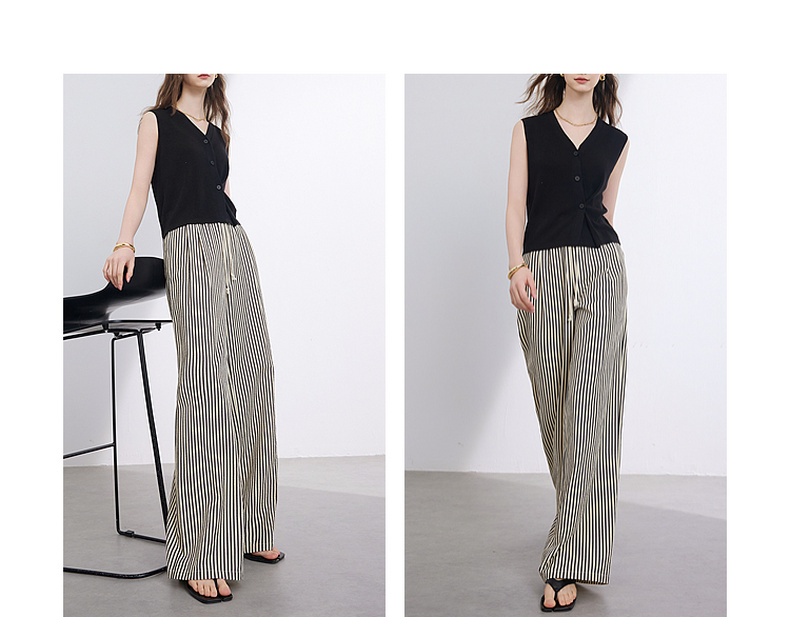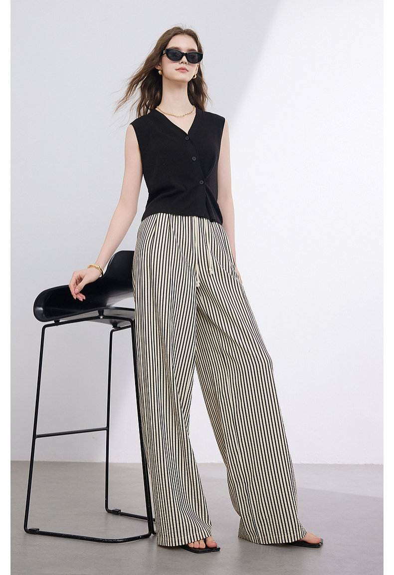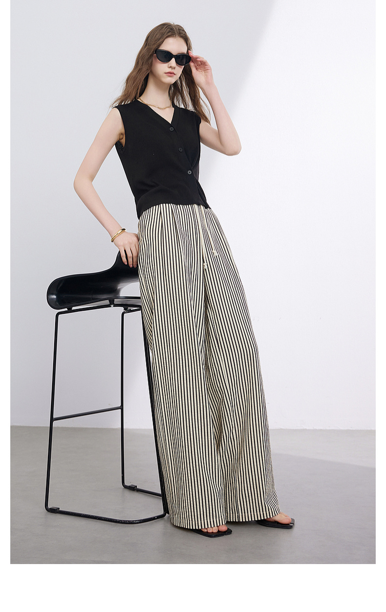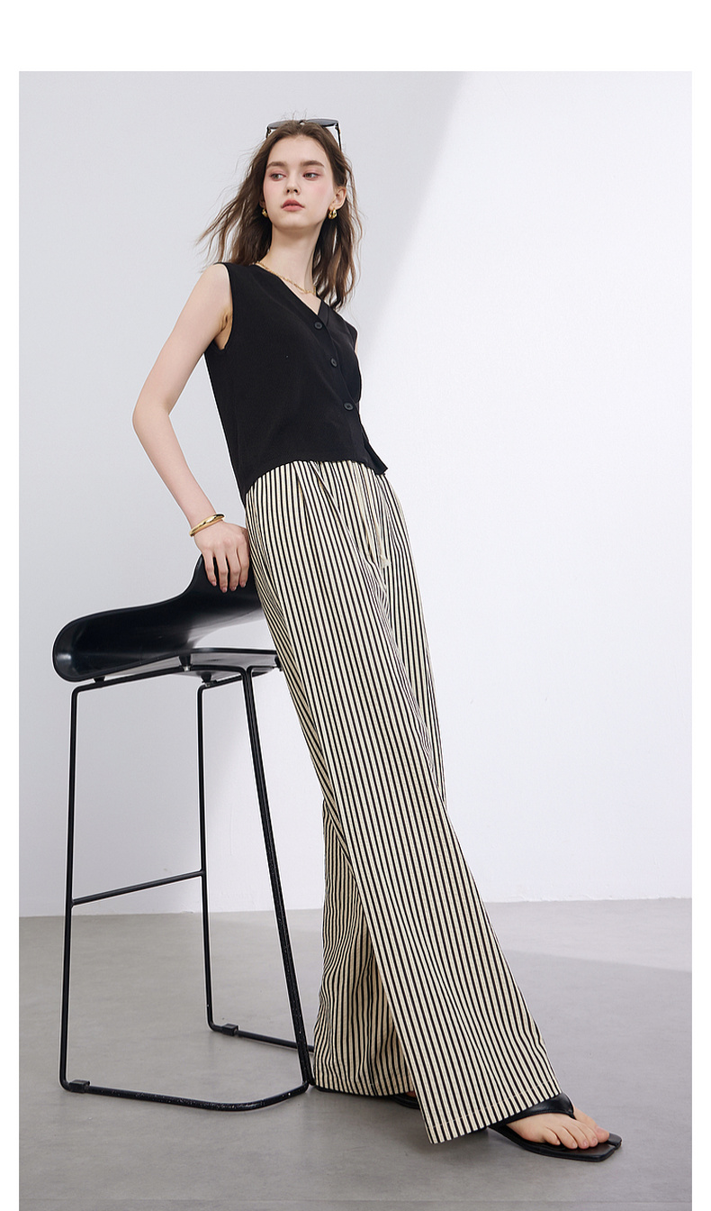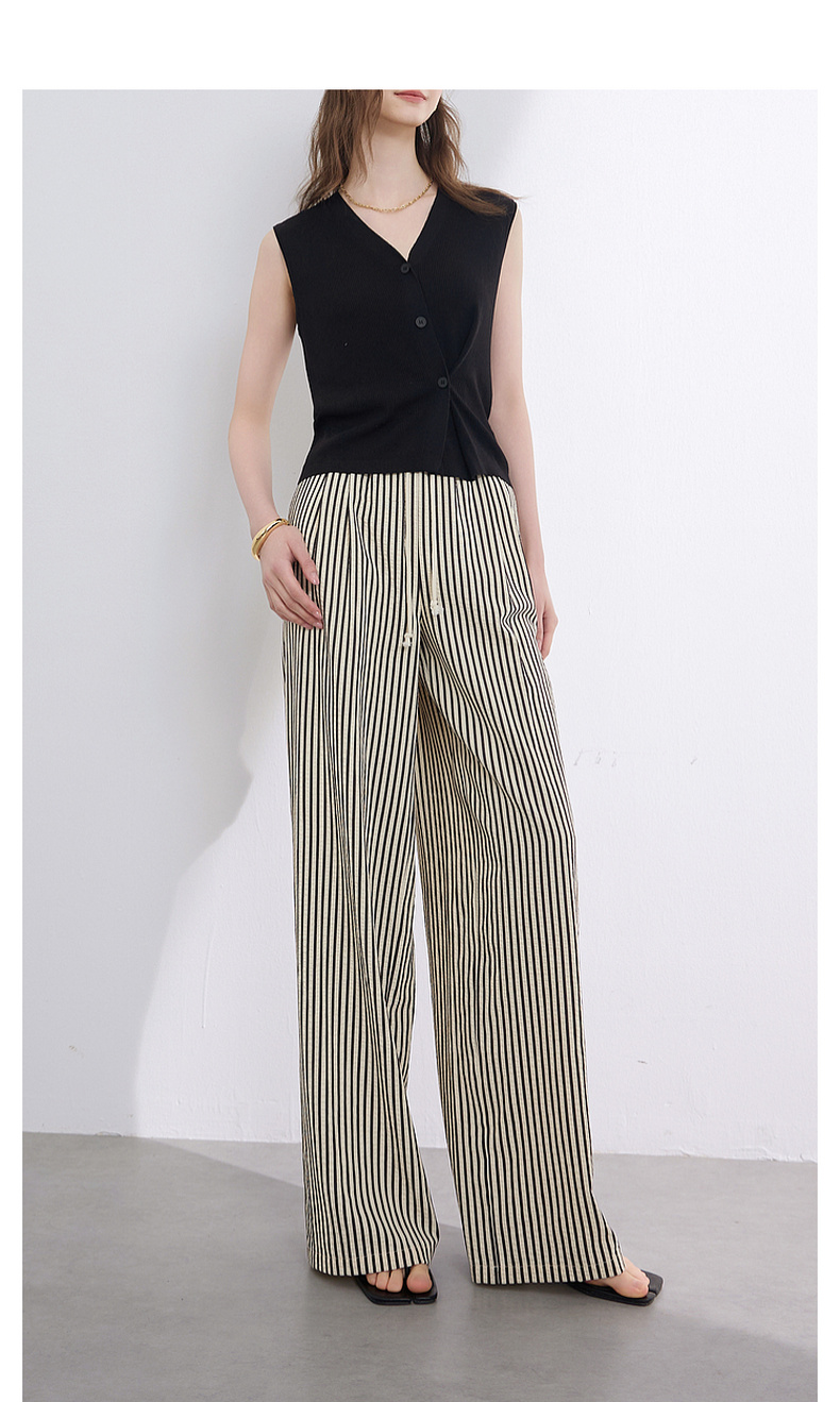 三彩2026夏季新款休闲裤条纹高腰宽松阔腿裤长裤慵懒轻薄M