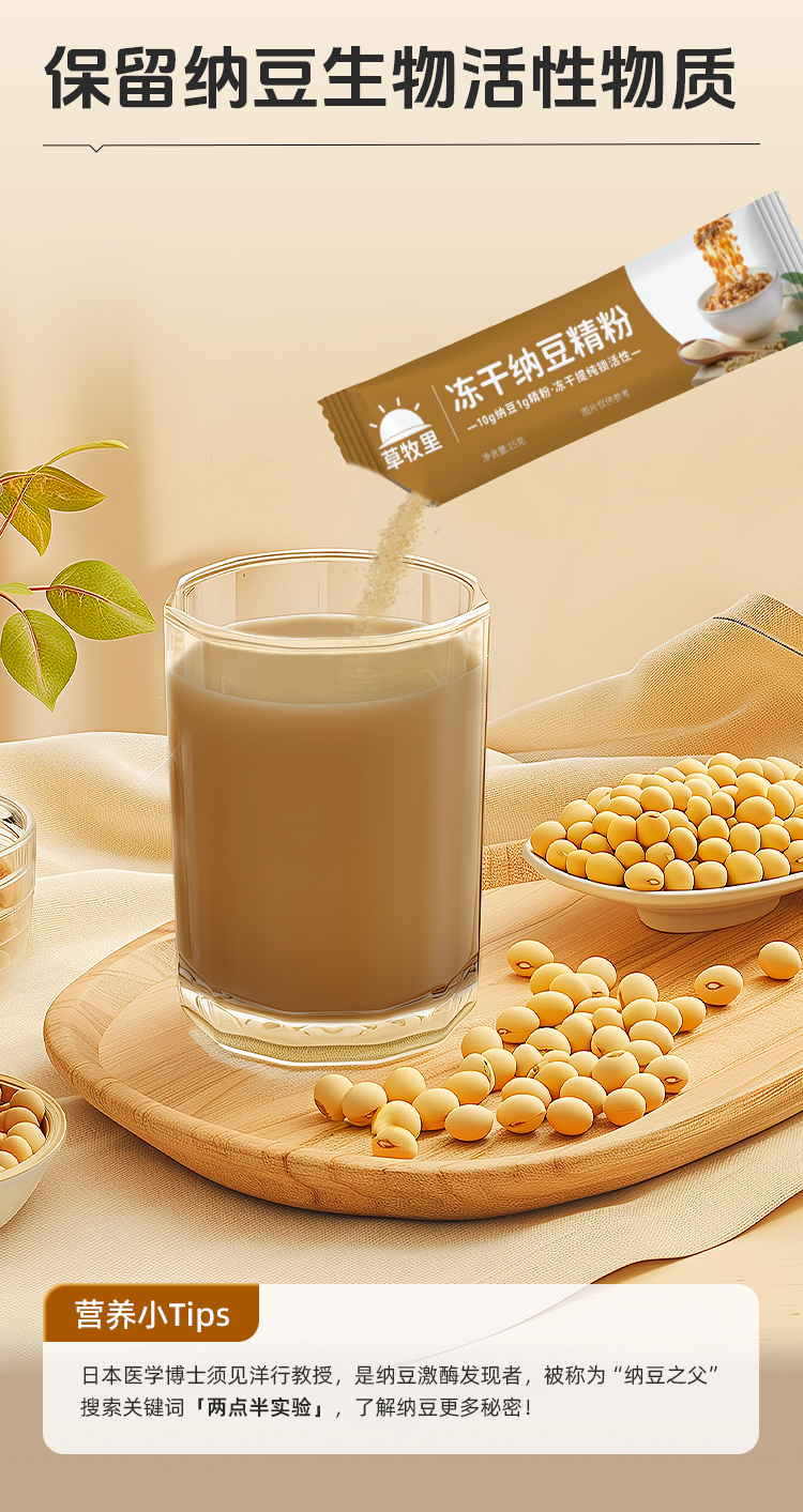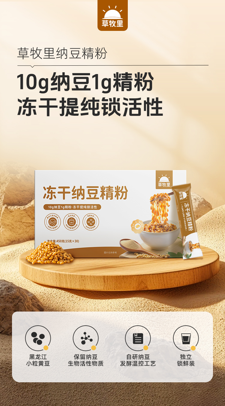 【1216早市直播】【健康无负担】草牧里 冻干纳豆精粉 15g*30条/盒 纳豆冻干吃营养美味更胜一筹
