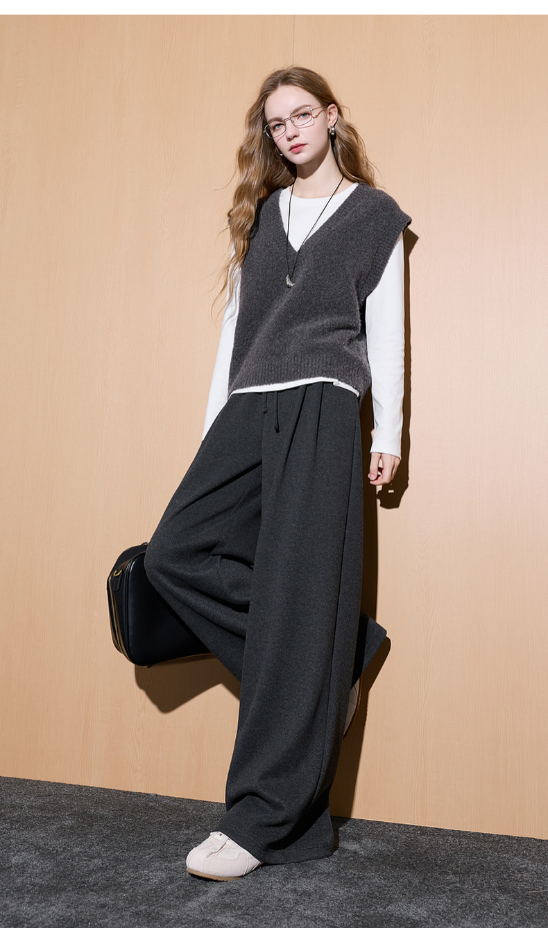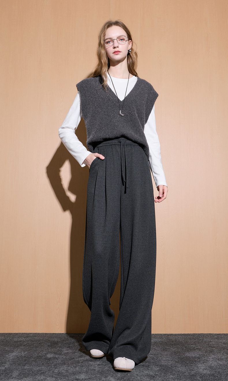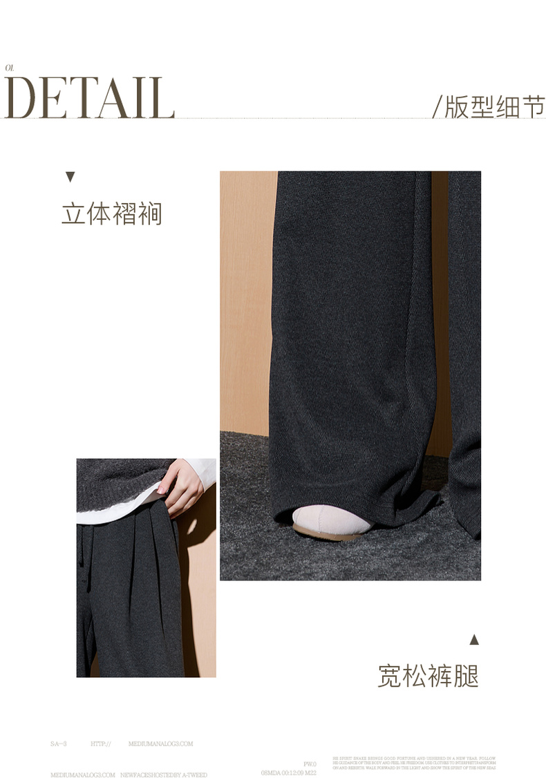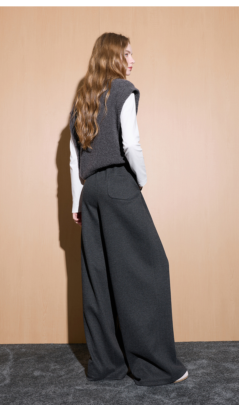 三彩2025冬季新款简约通勤休闲长裤松紧腰阔腿裤宽松垂感显瘦M