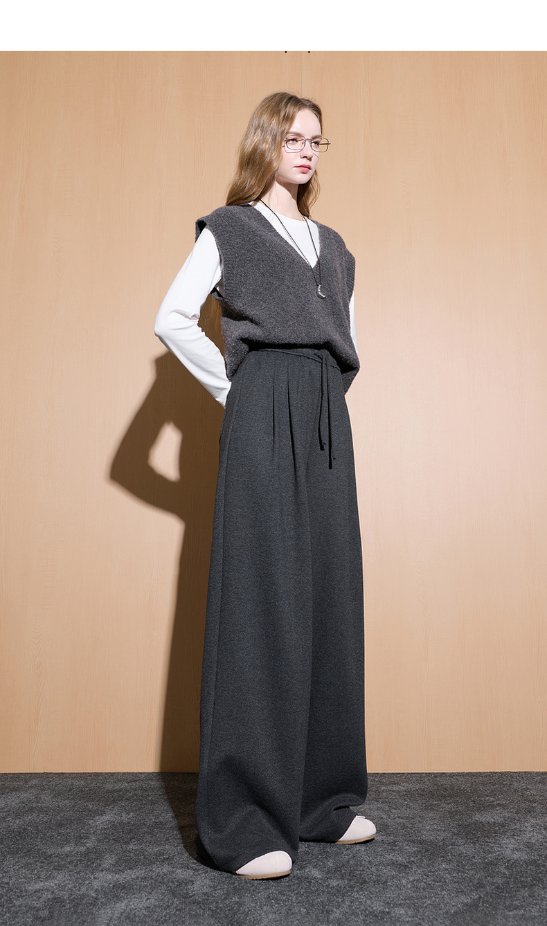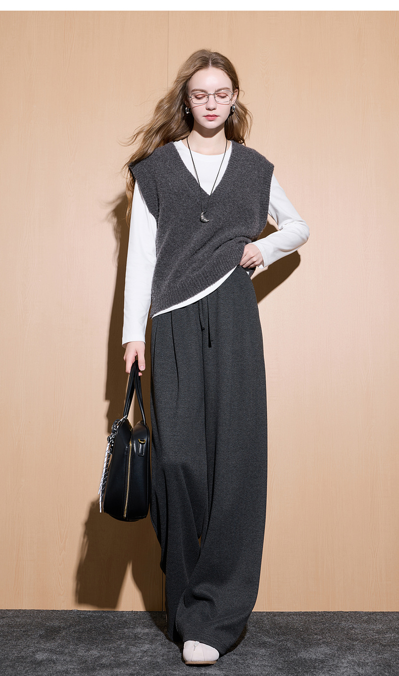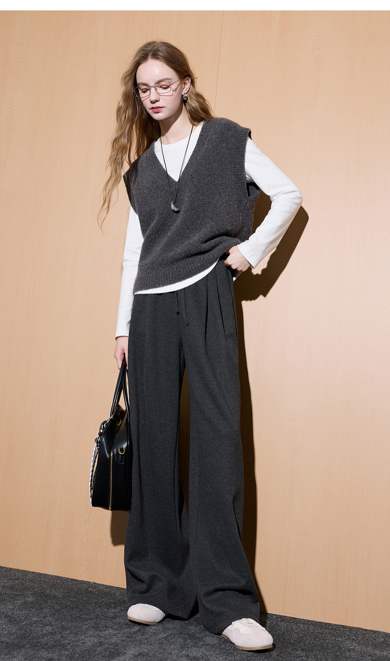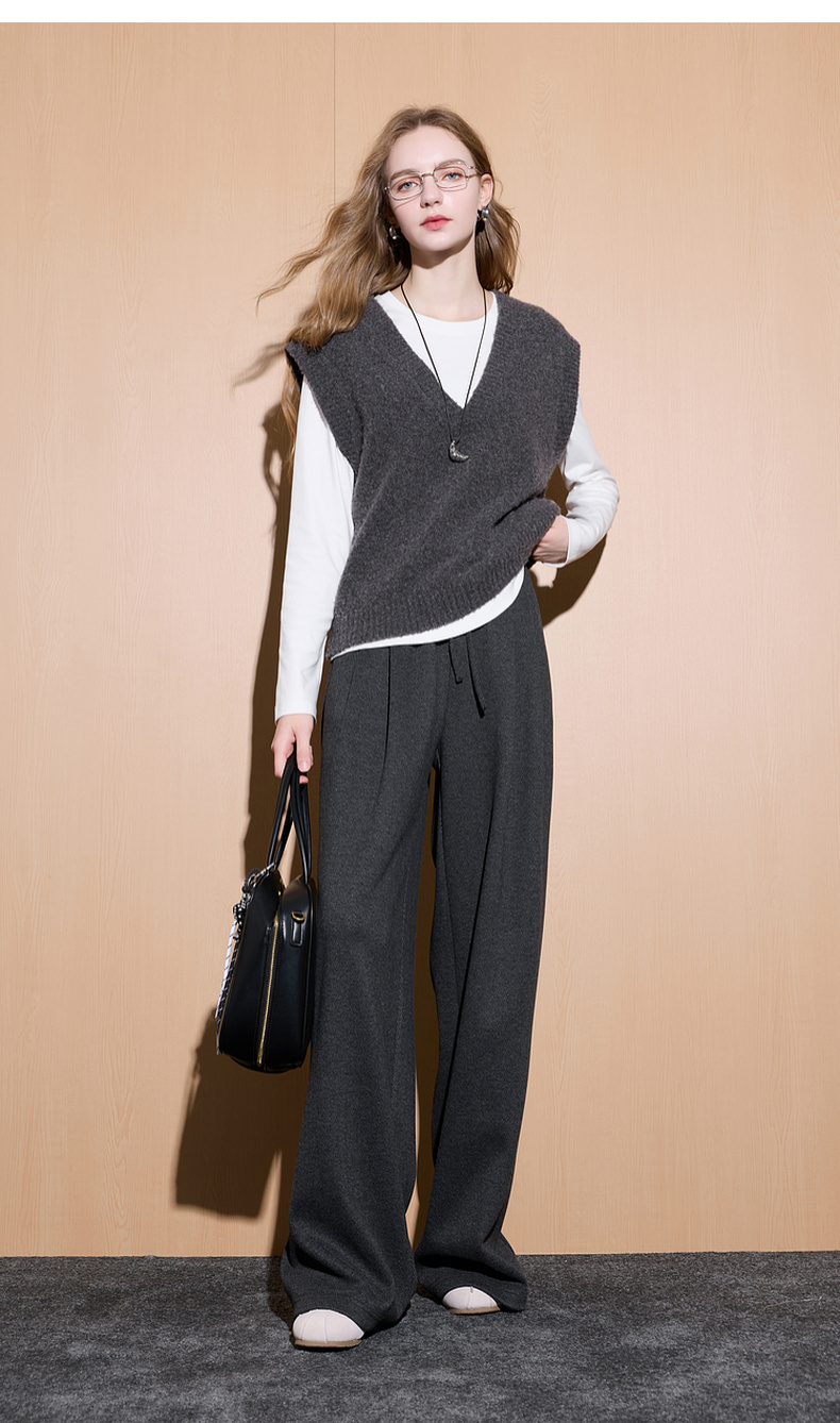 三彩2025冬季新款简约通勤休闲长裤松紧腰阔腿裤宽松垂感显瘦M