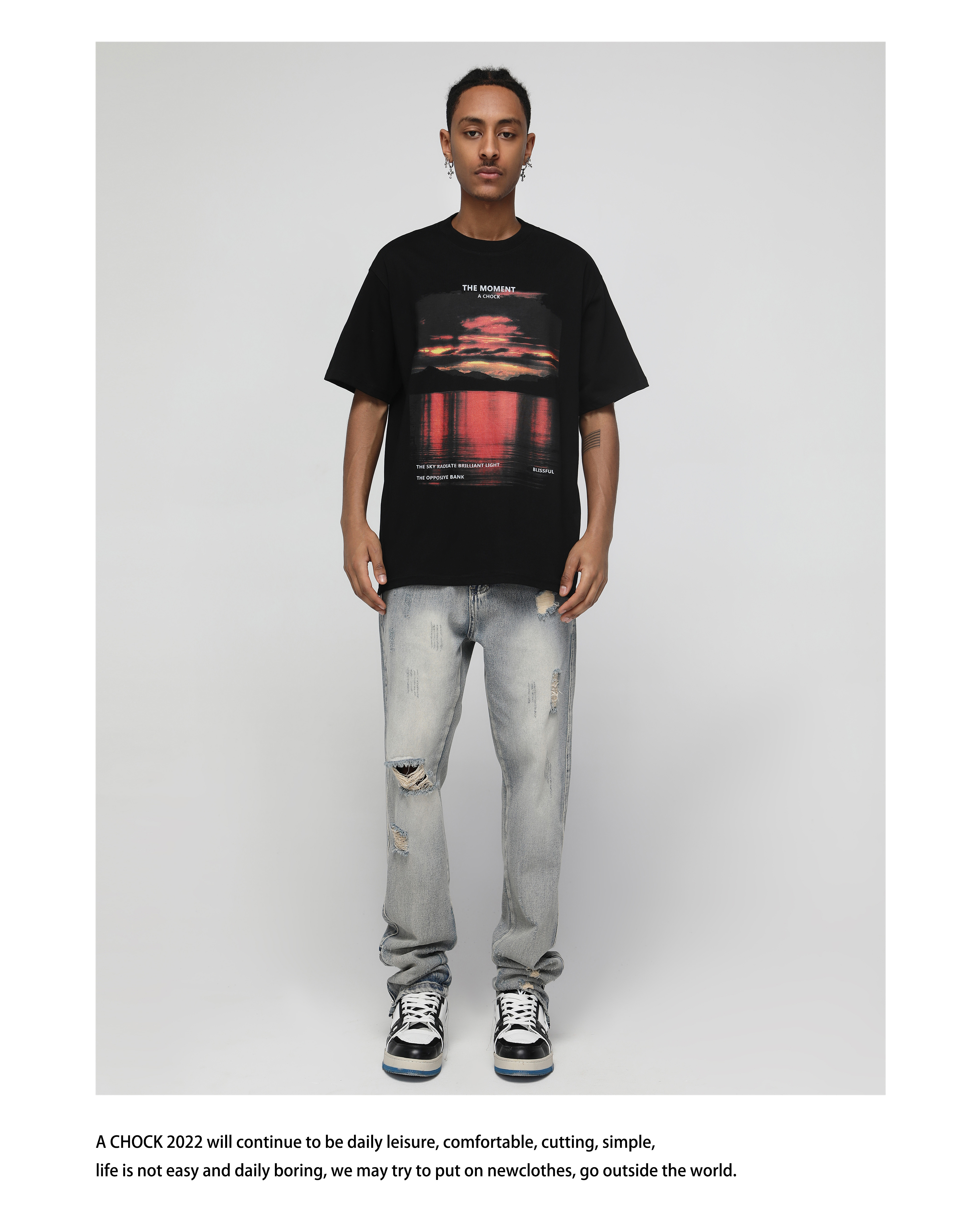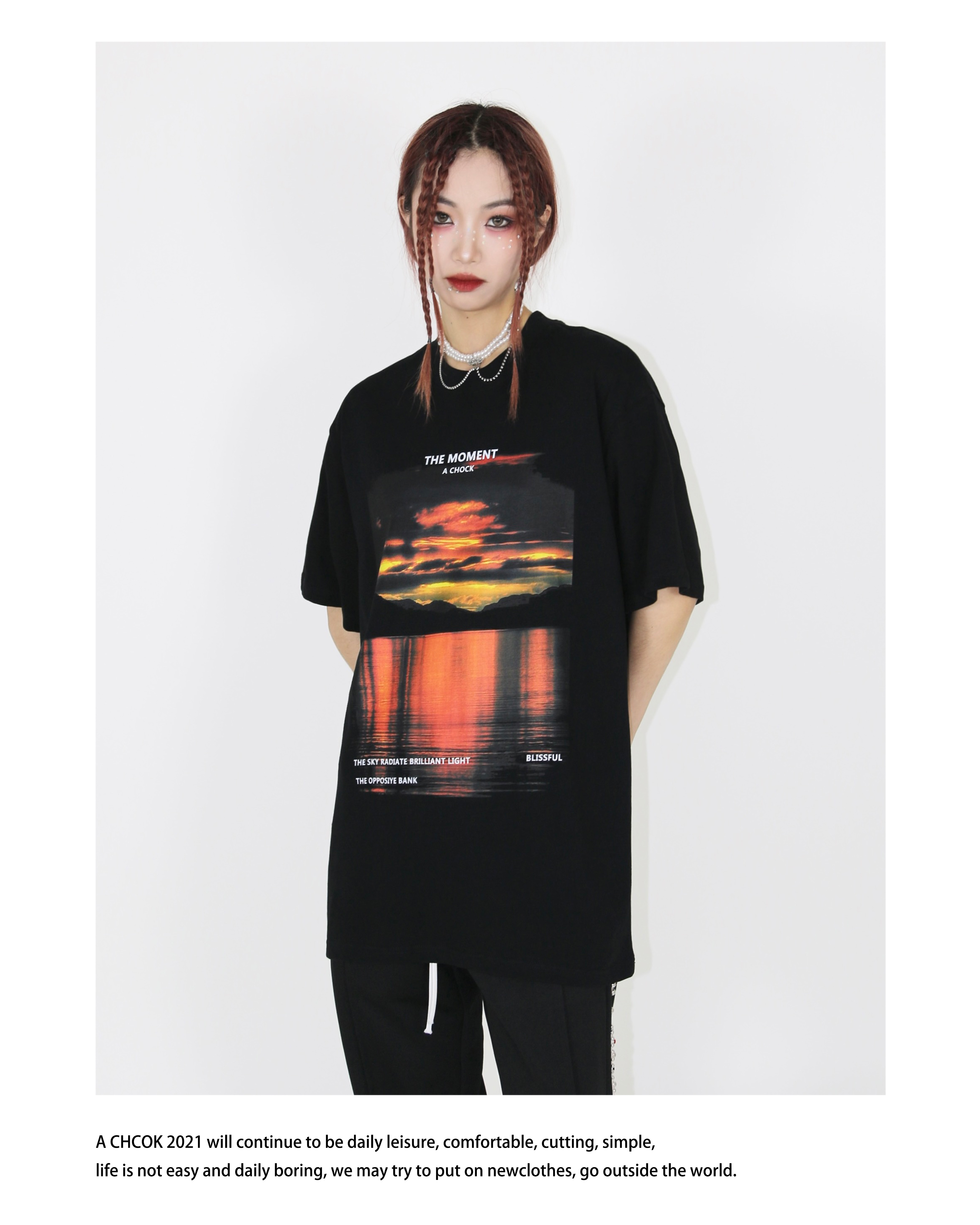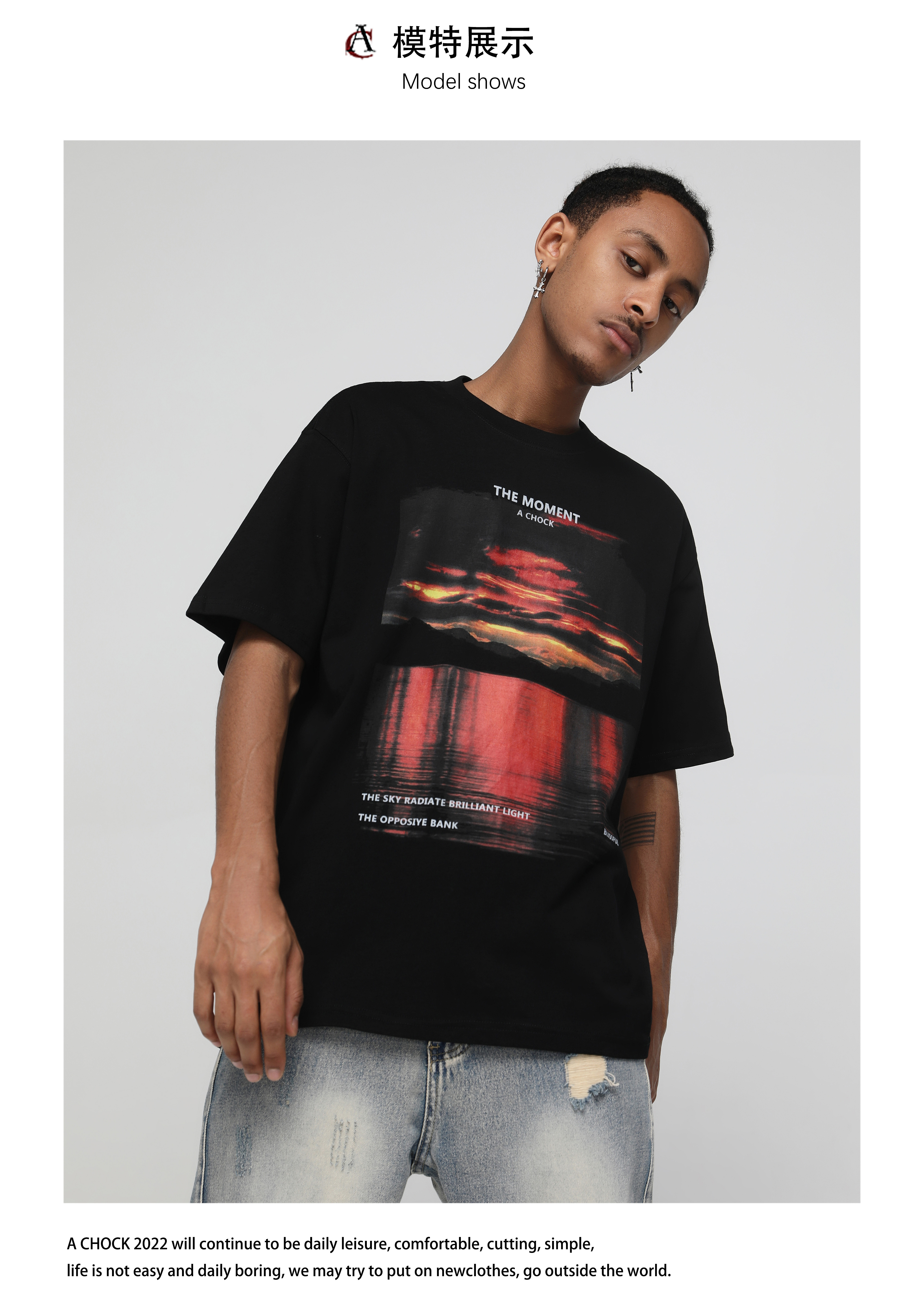【Achock官方店】原创国潮自制火烧云风景印花短袖个性潮半袖t恤