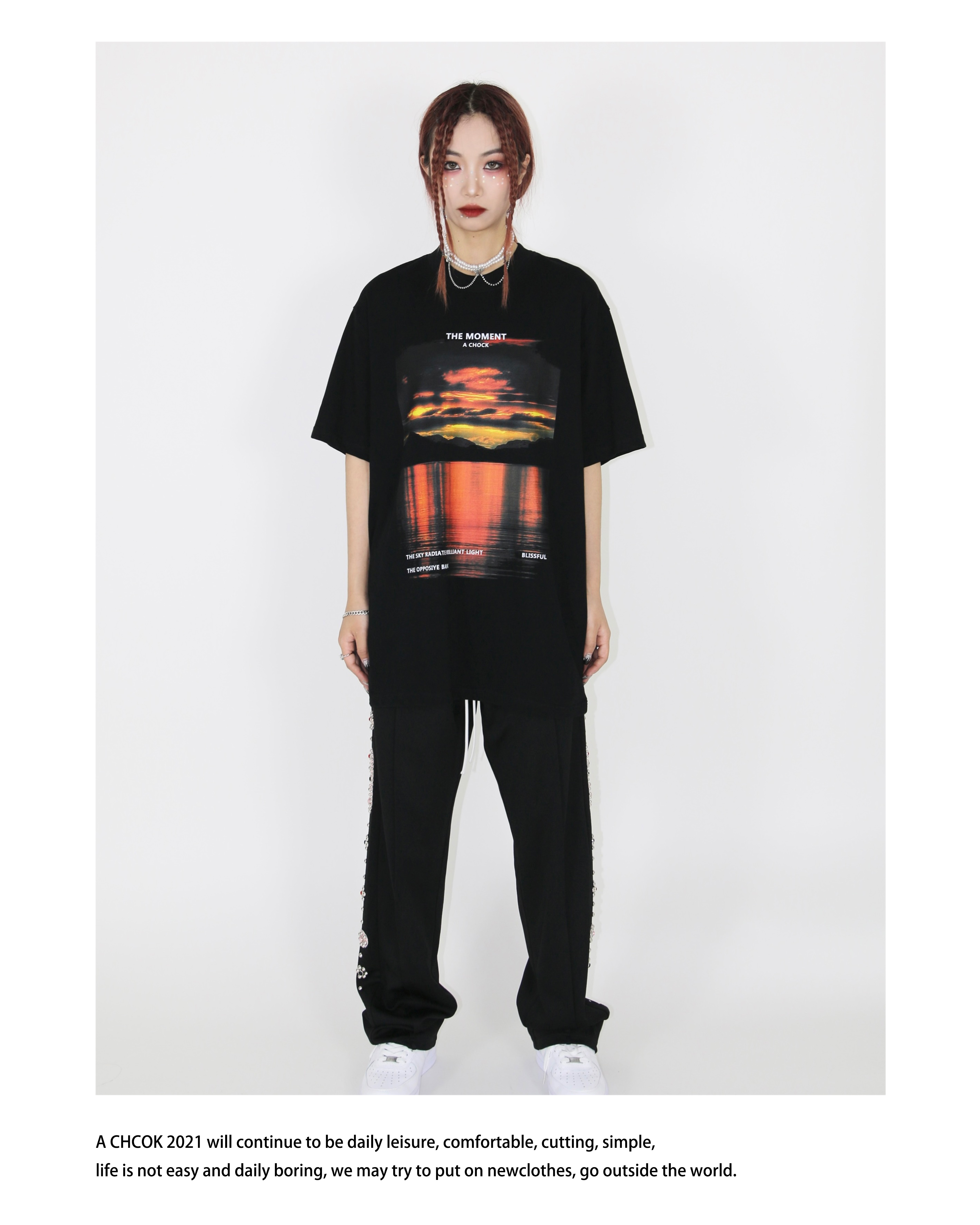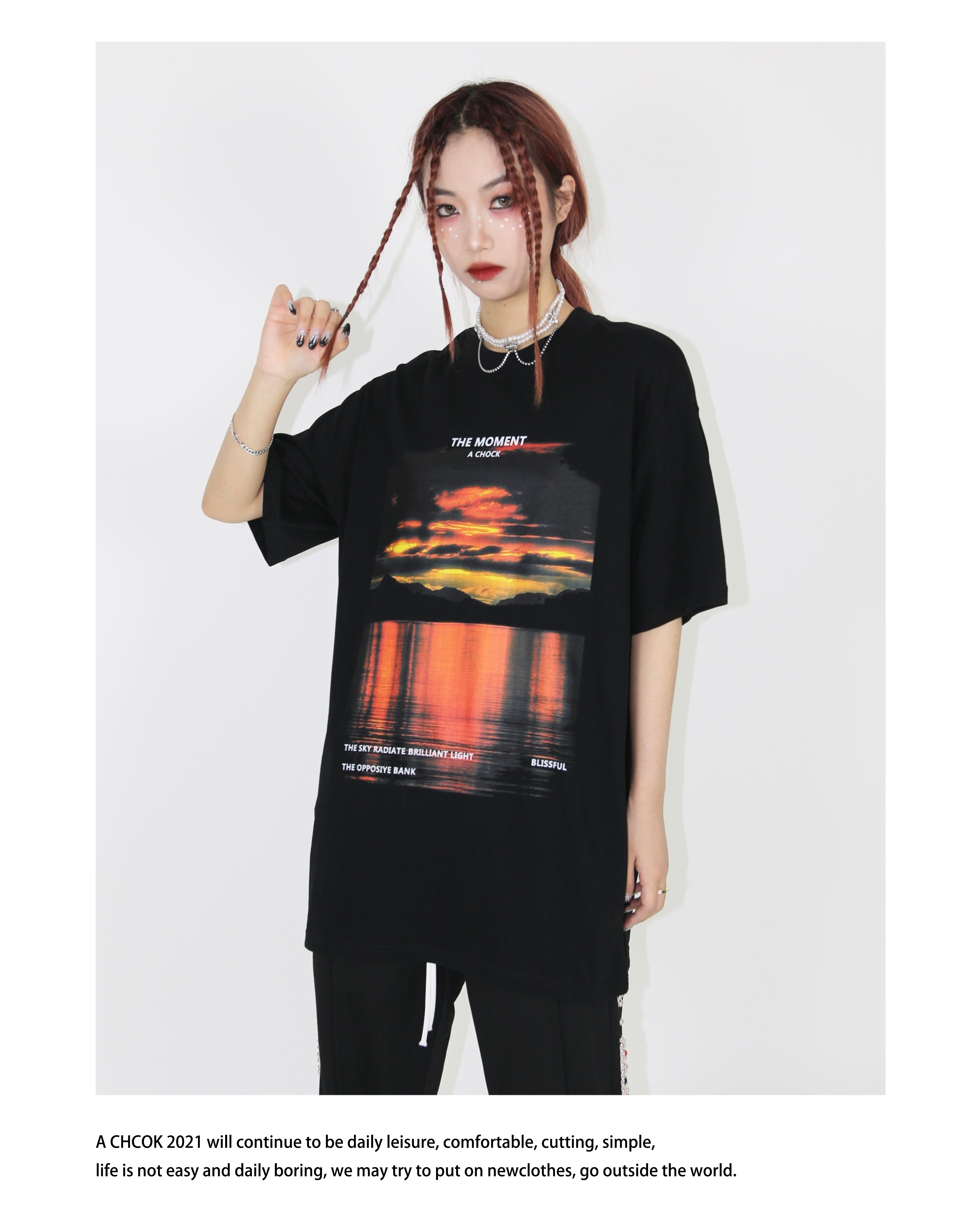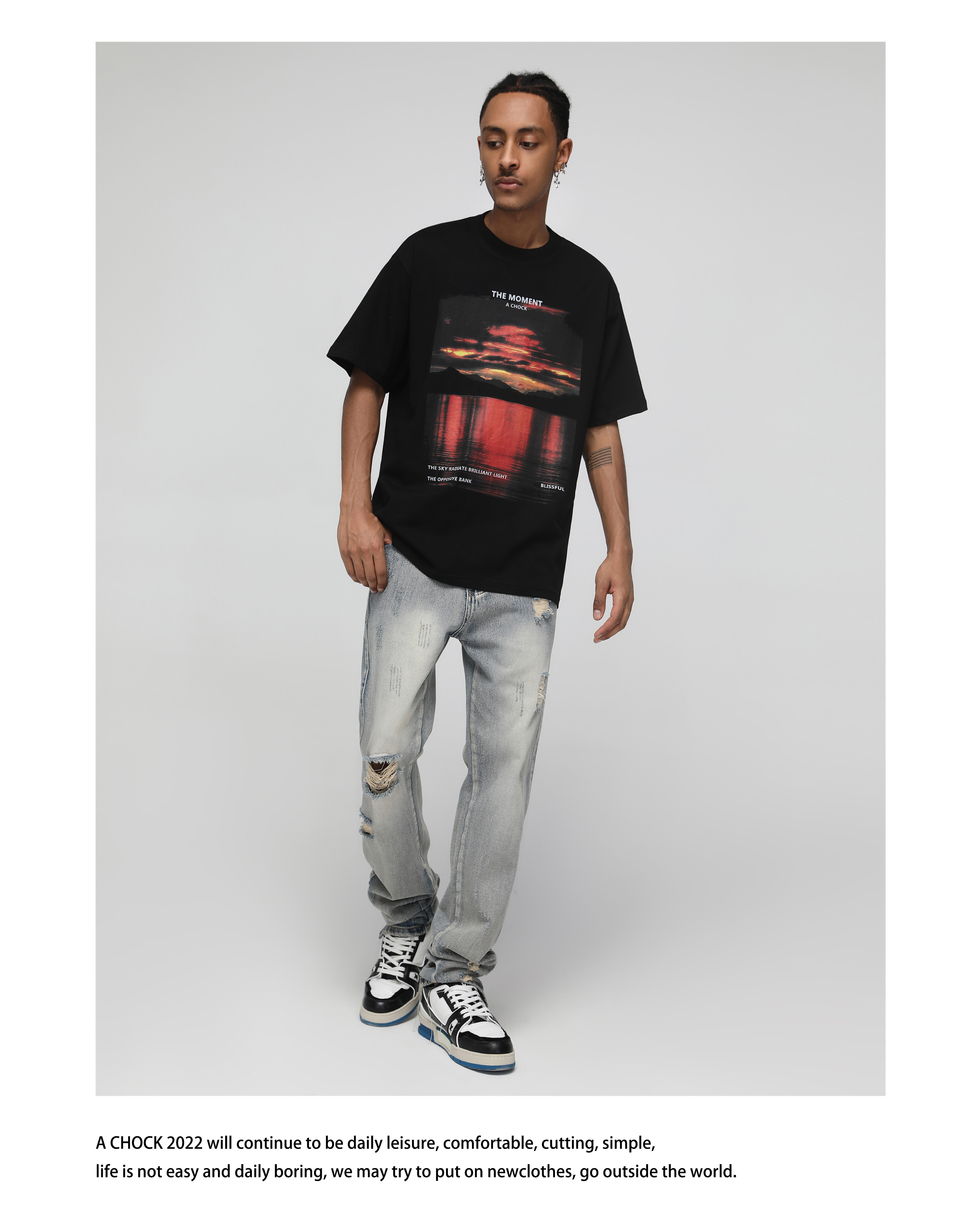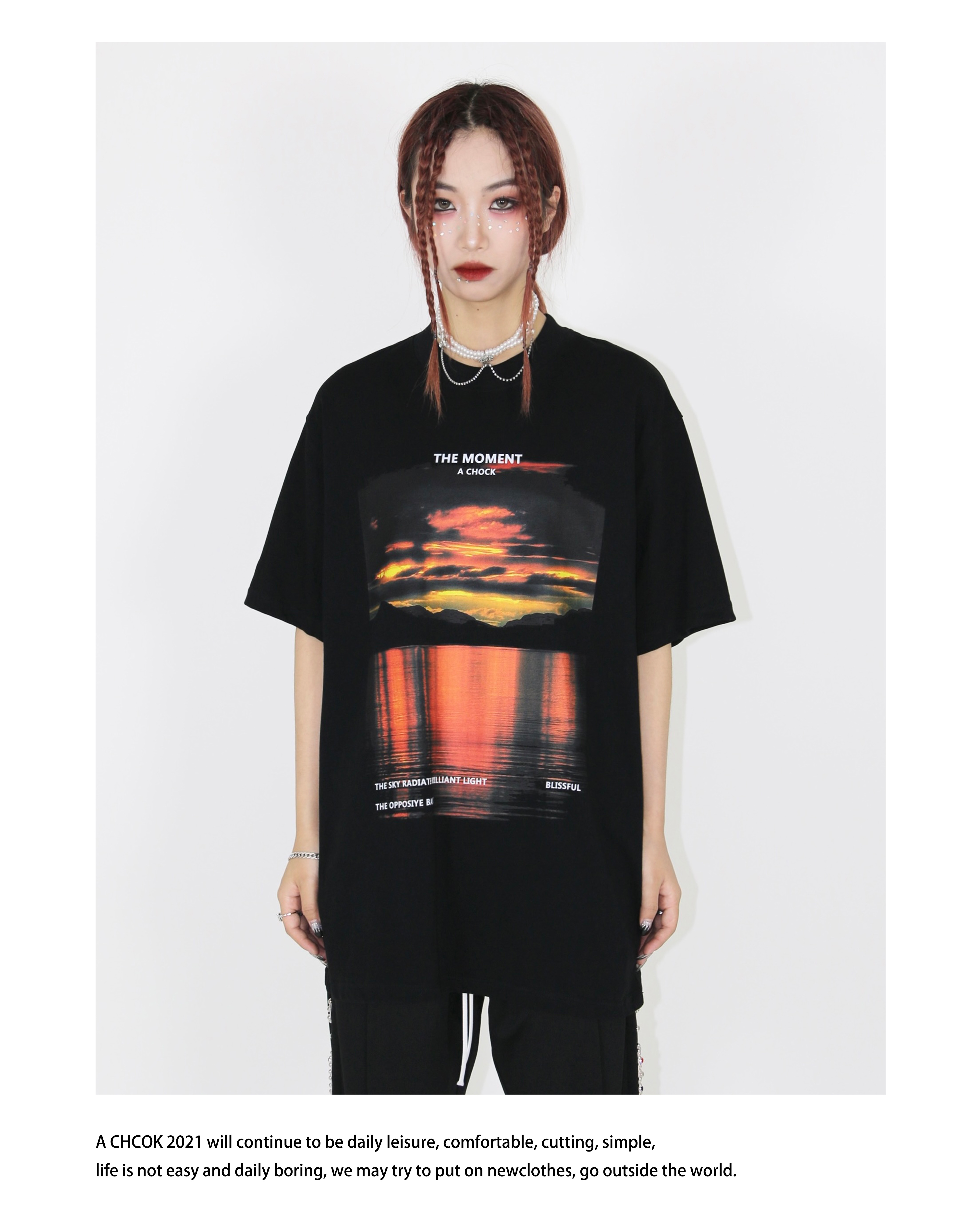 【Achock官方店】原创国潮自制火烧云风景印花短袖个性潮半袖t恤