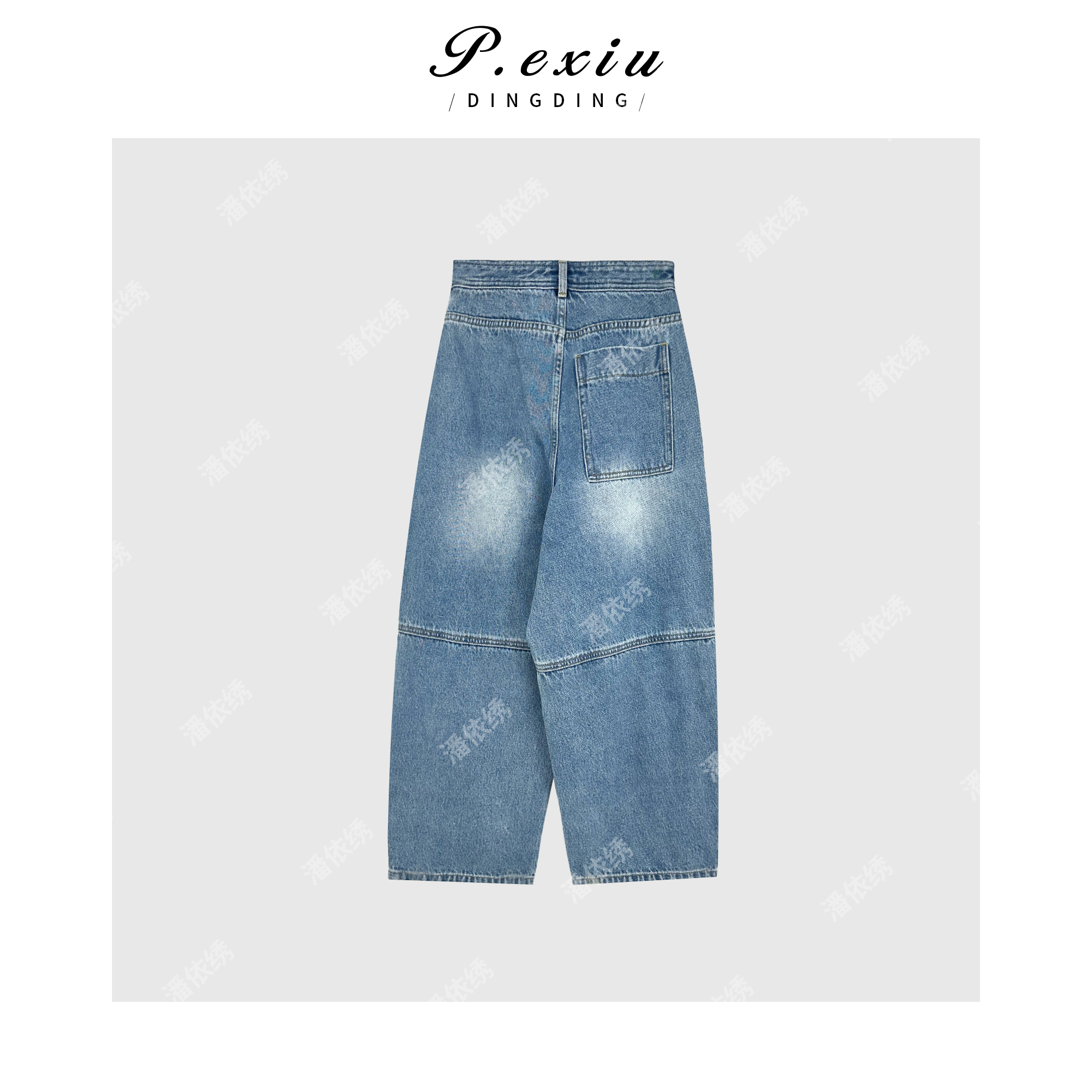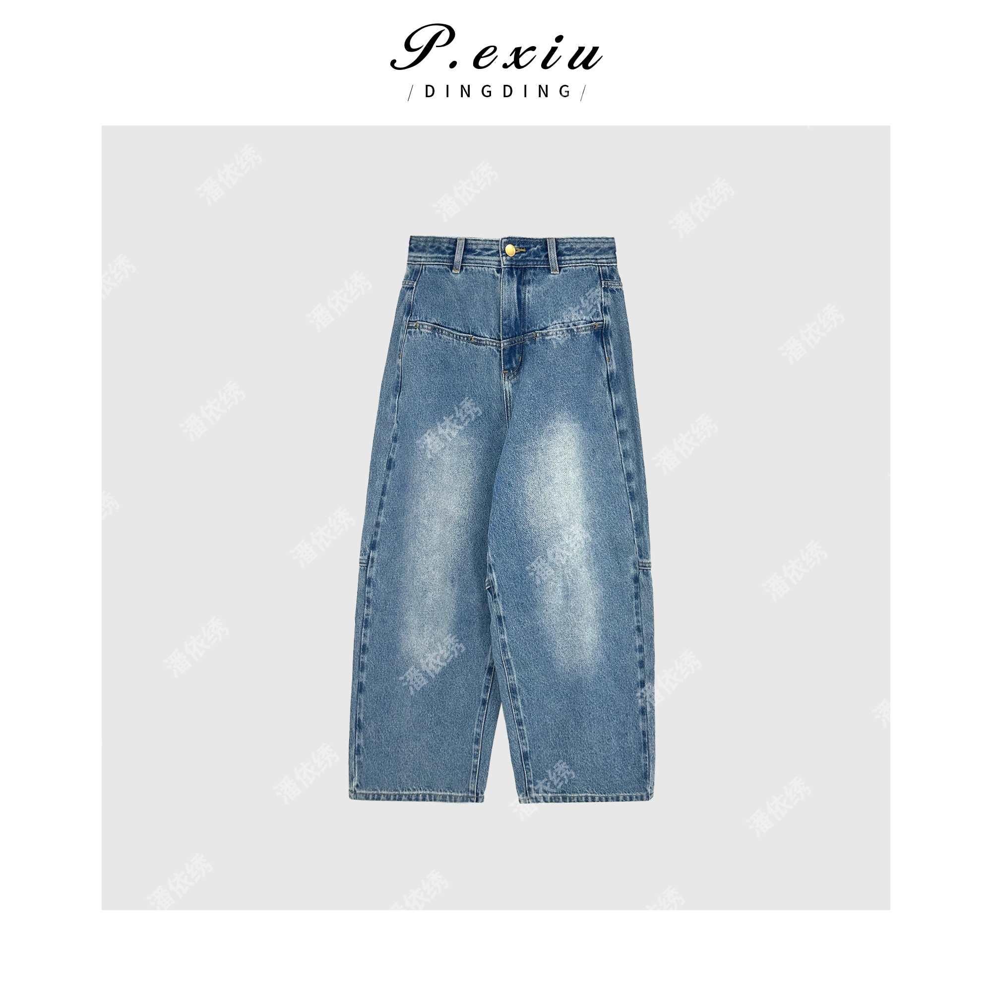 04-1潘依绣丁丁宠粉立体剪裁线条感香蕉裤复古腔调牛仔裤 D6365