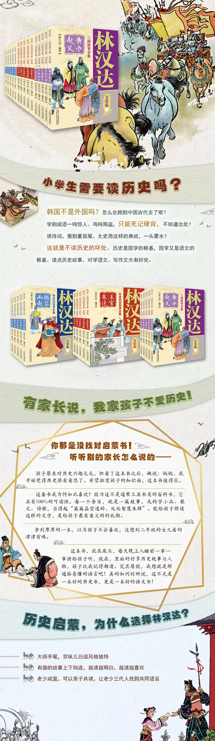 中国少年儿童出版社联手文字大师,美术界泰斗画家,珠联璧合、独家出版了一套畅销几十年的《林汉达中国历史故事集》,累积销量达到数百万册!