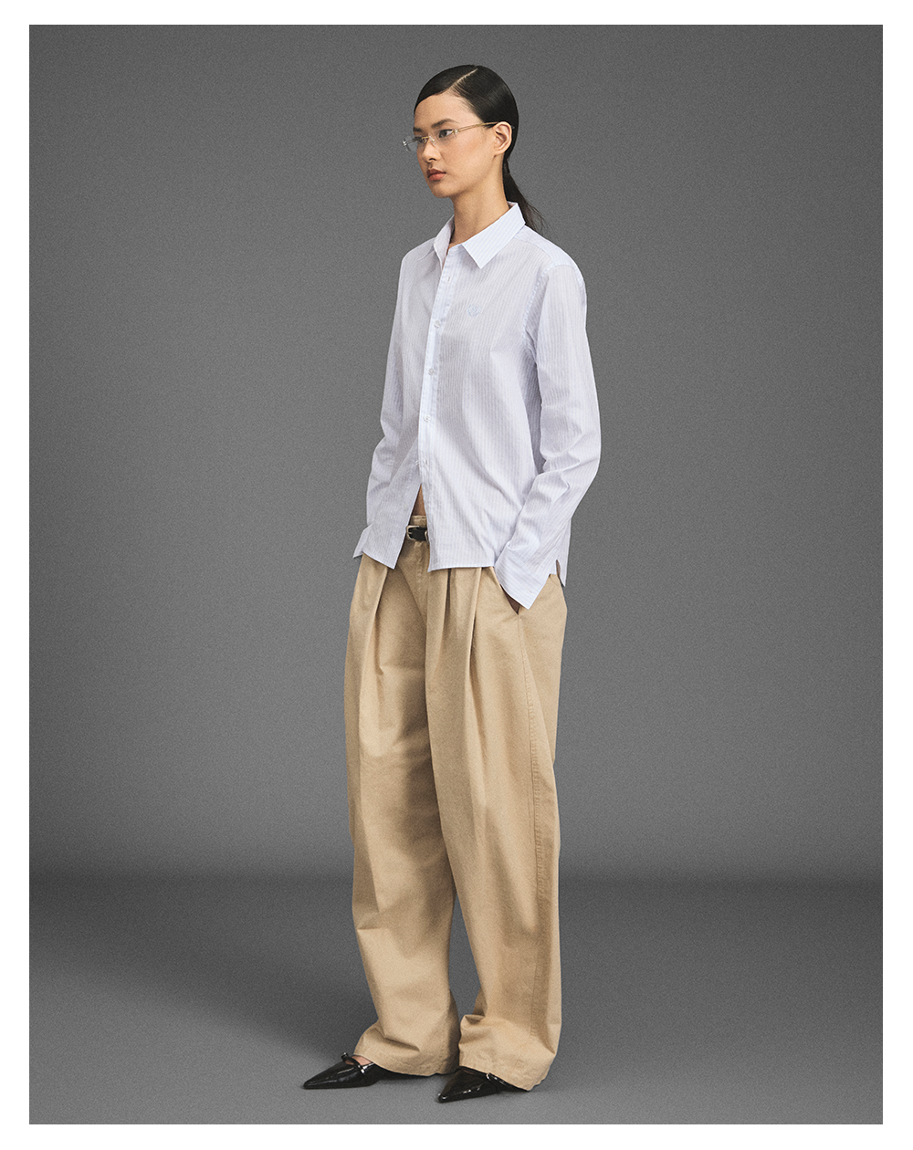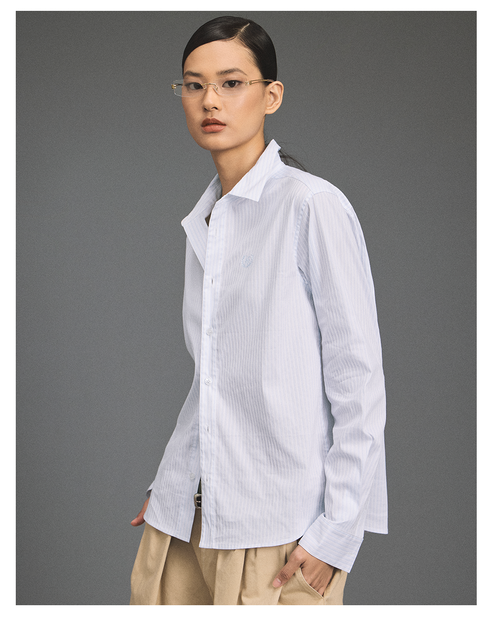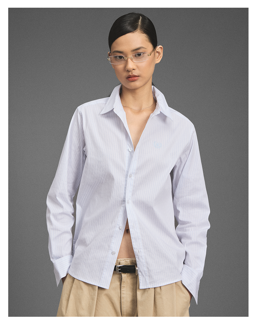 GOODBAI 新款刺绣logo宽松翻领长袖衬衫女