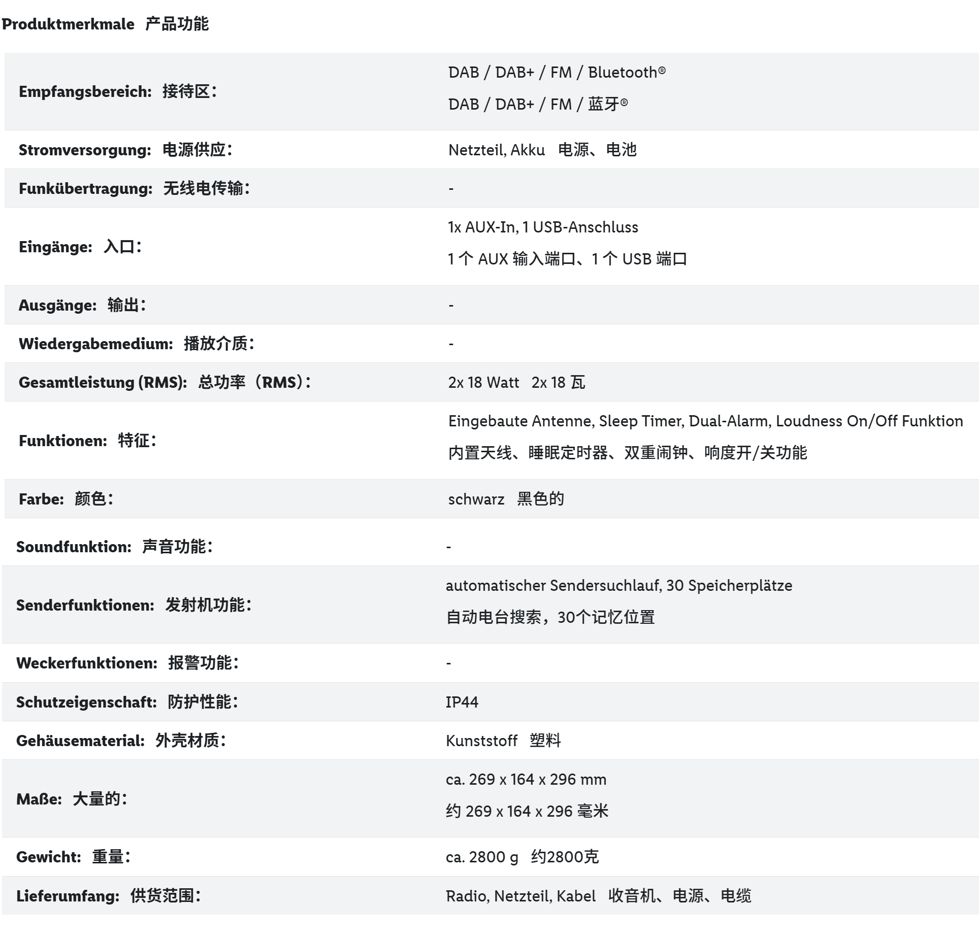 【原价908元】美国 PARKSIDE PBR 36 A1 便携蓝牙音箱 FM收音机 DAB+收音(不包含电池)