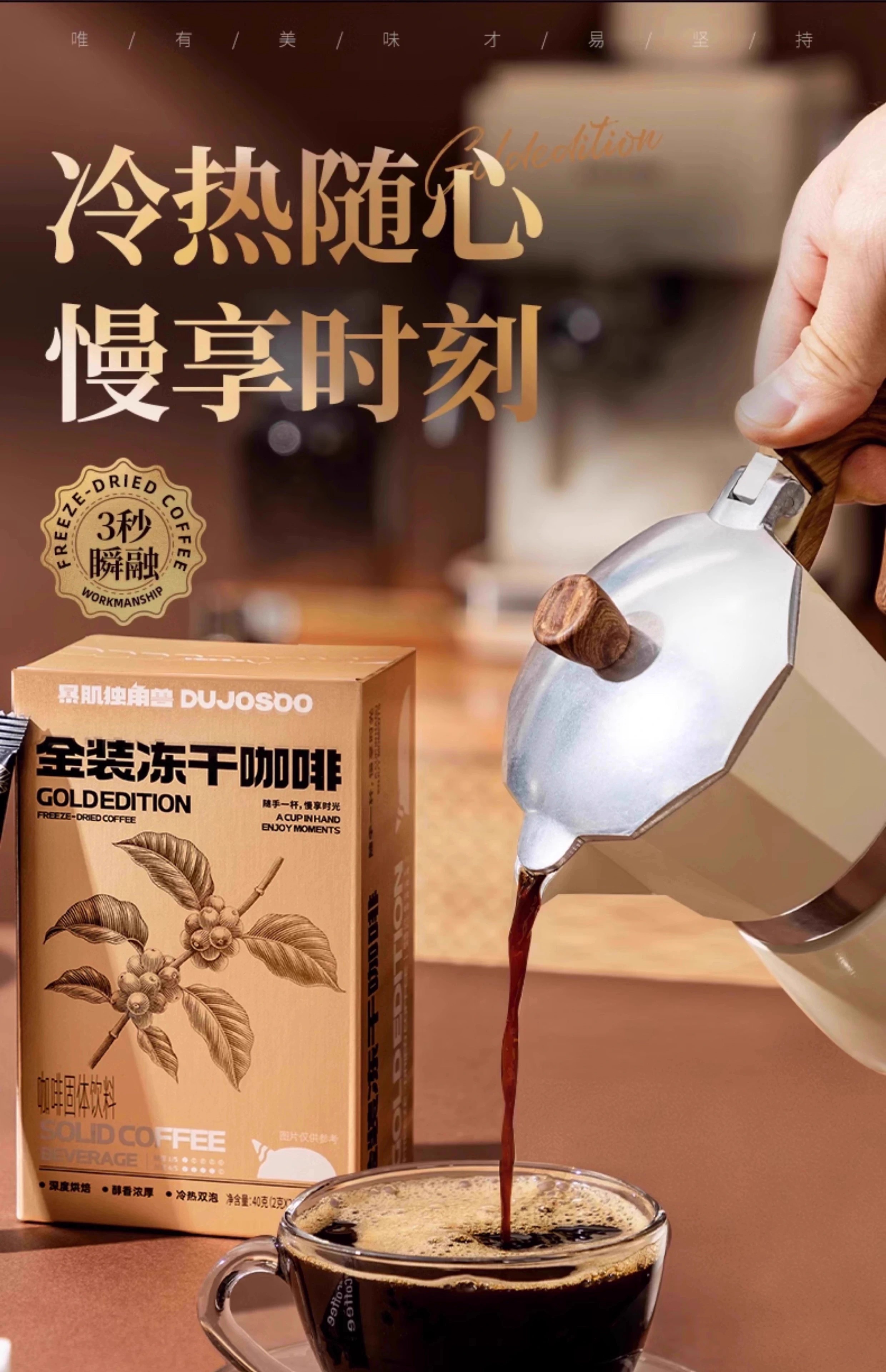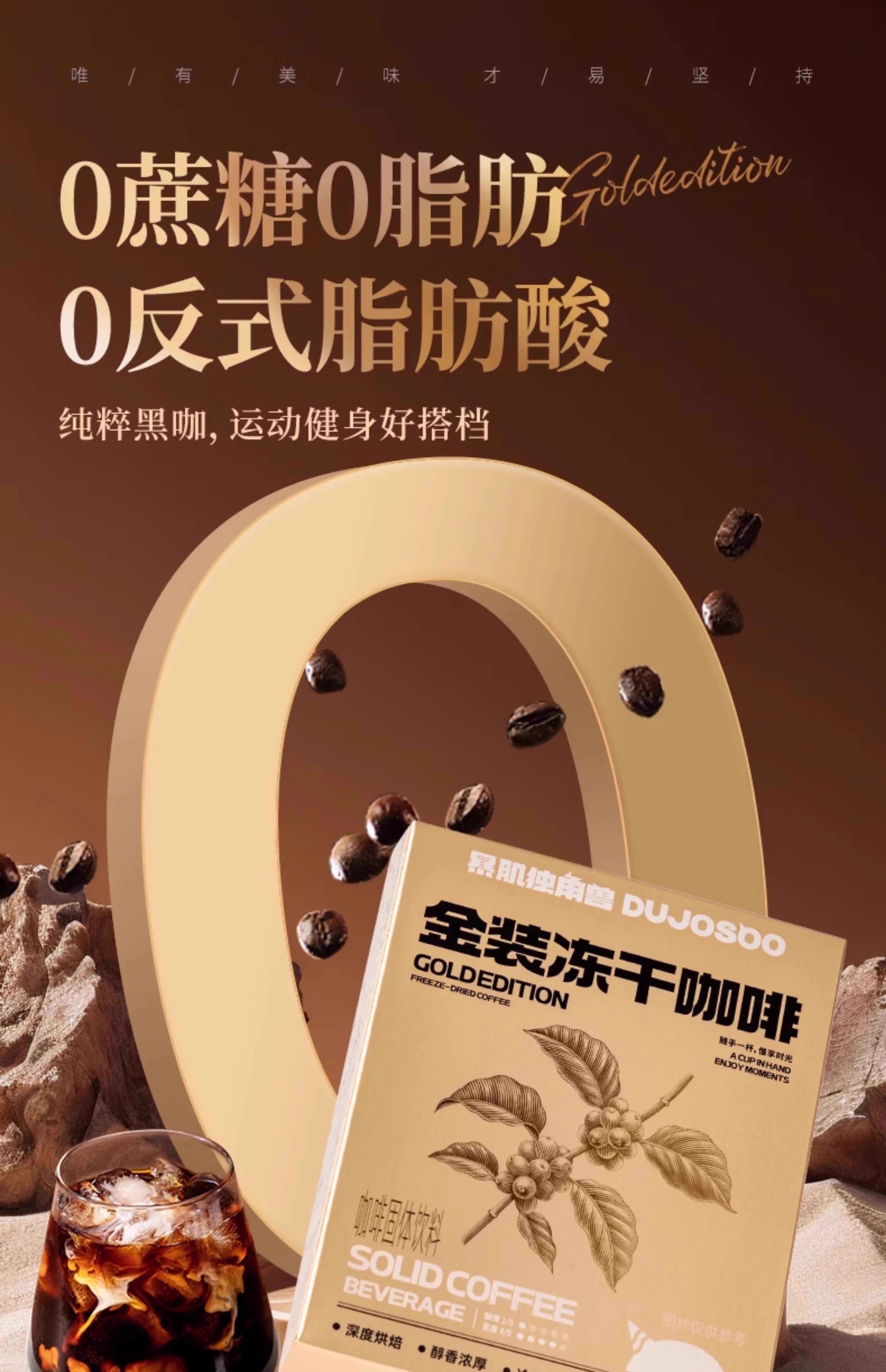 【暴肌独角兽】金装冻干黑咖啡冷热速溶0脂无蔗糖燃减提美式咖啡粉神