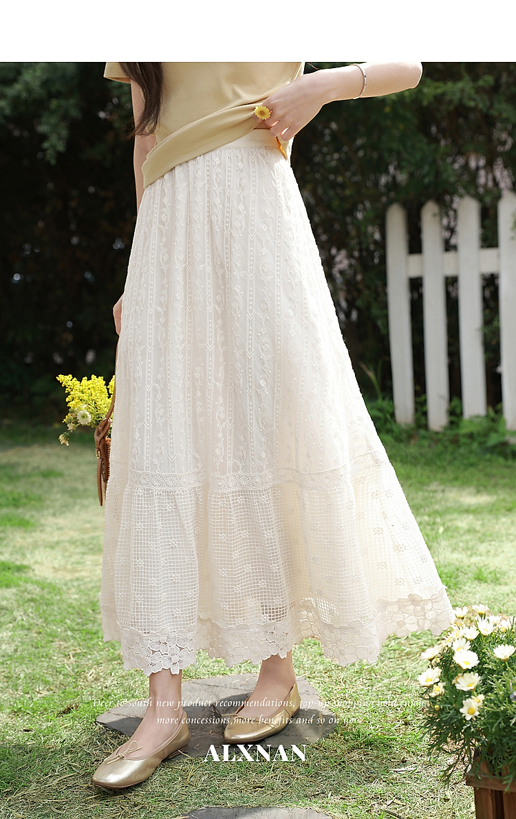 鹿向南「月光白昭」蕾丝a字半身裙女夏2026新款通勤百搭温柔长裙
