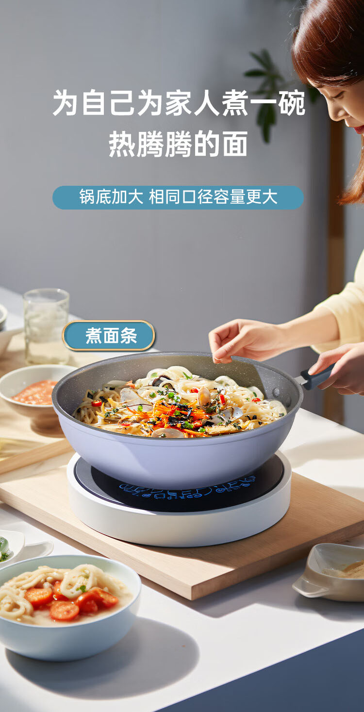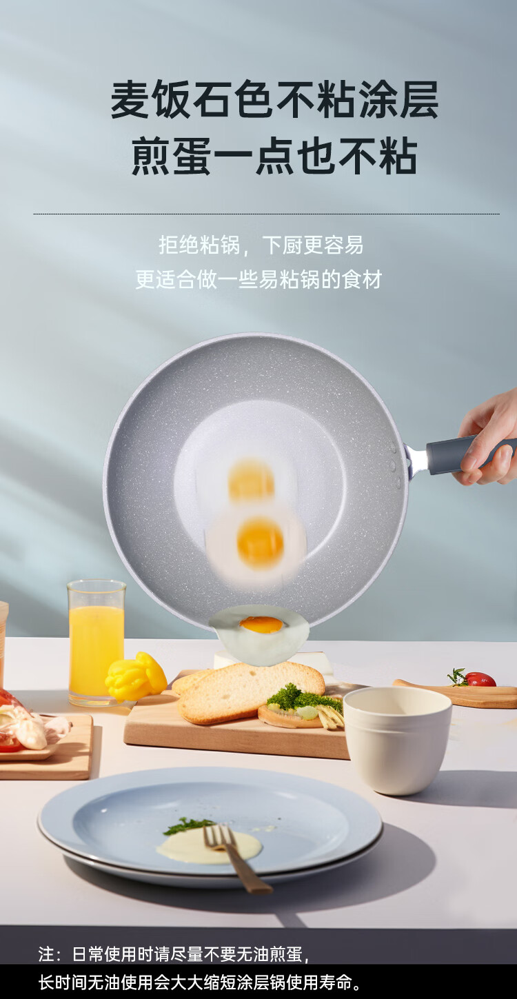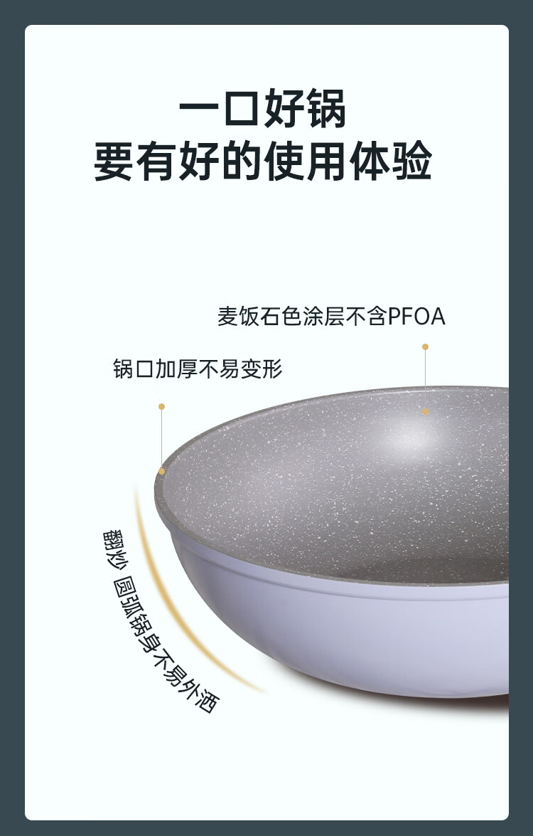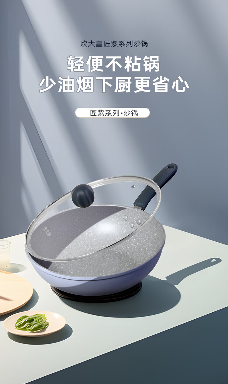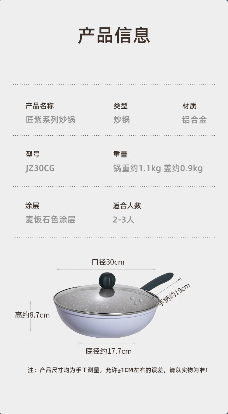 炊大皇 匠紫30cm炒锅 不粘锅 麦饭石色 电磁炉通用炒菜锅煎锅 JZ30CG