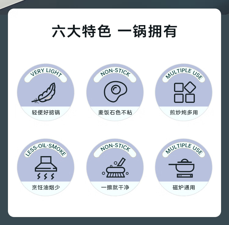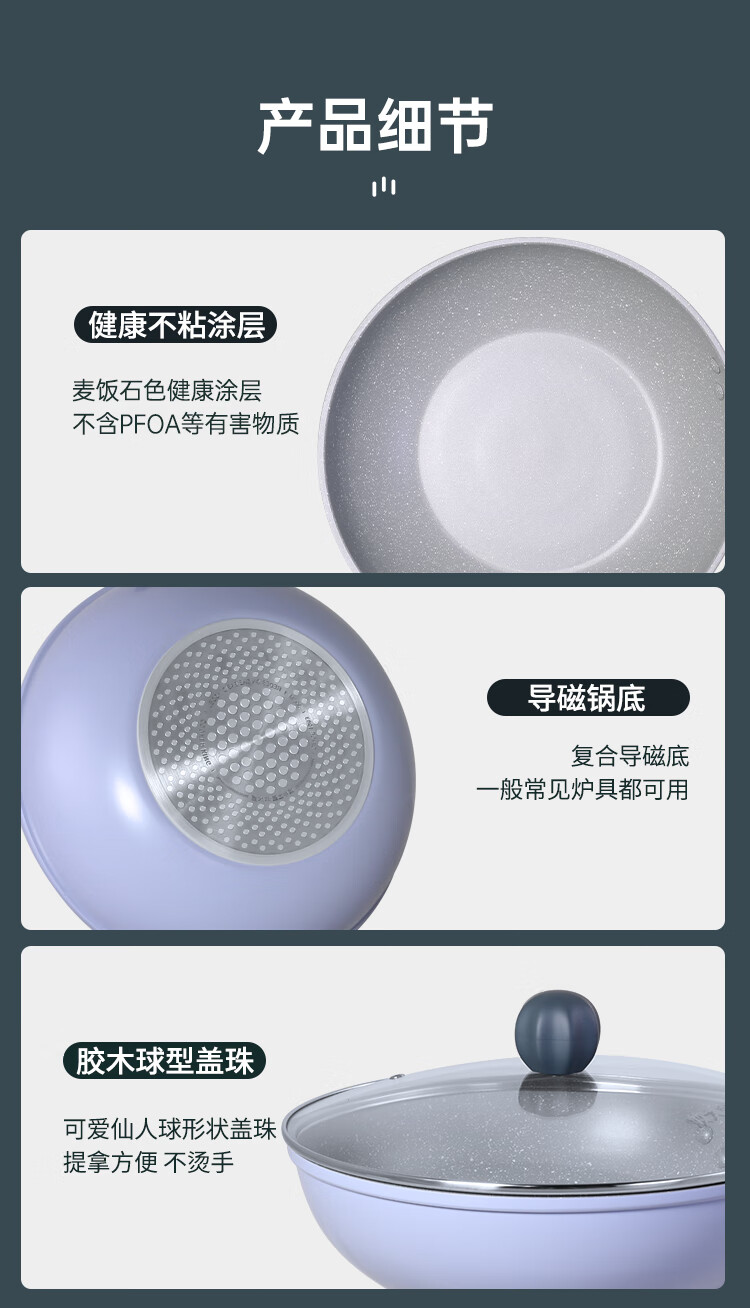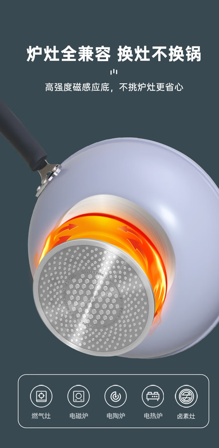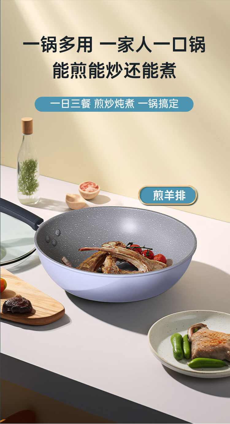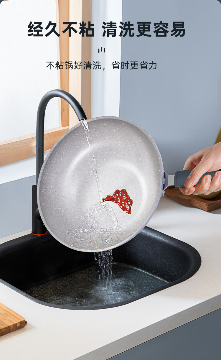 炊大皇 匠紫30cm炒锅 不粘锅 麦饭石色 电磁炉通用炒菜锅煎锅 JZ30CG