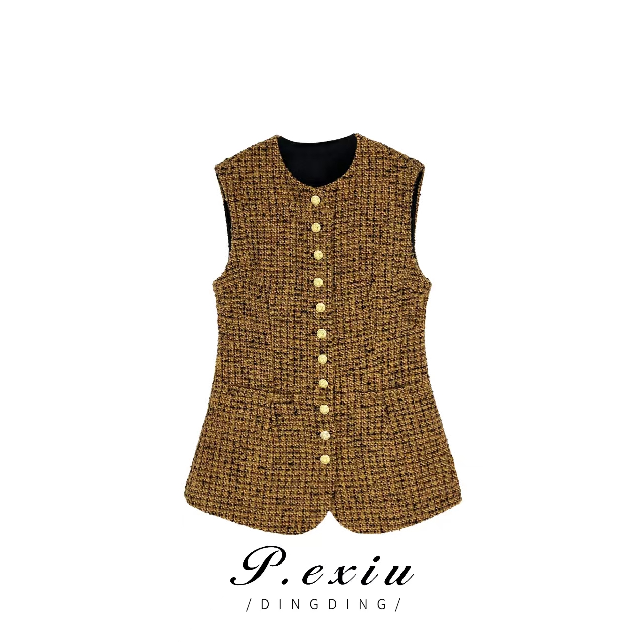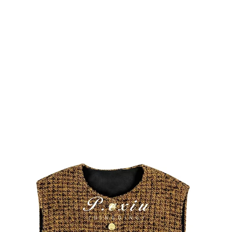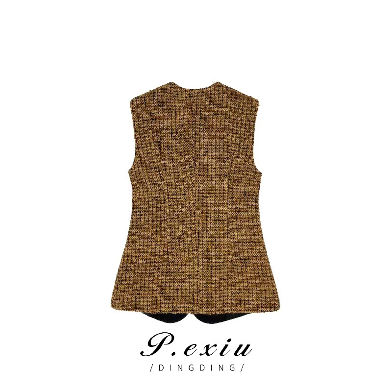 03-5潘依绣丁丁宠粉PanYiXiu/潘依绣羊毛小香风宽松显瘦气质百搭无袖马甲 W-61773
