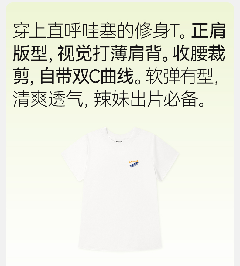 「棉的美学」短款正肩辣妹修身T恤小众设计滑板印花显瘦百搭上衣