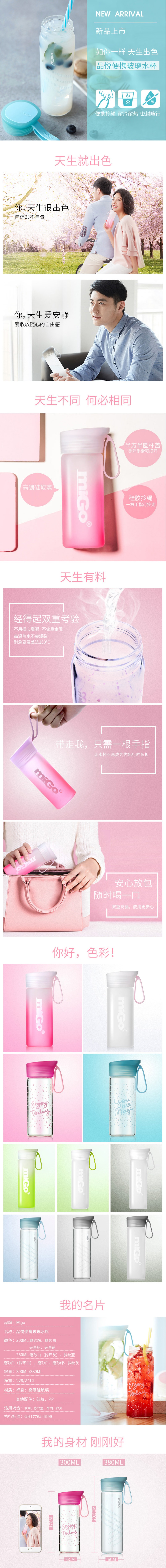 镁歌 便携玻璃水瓶 品悦NY-011 水具