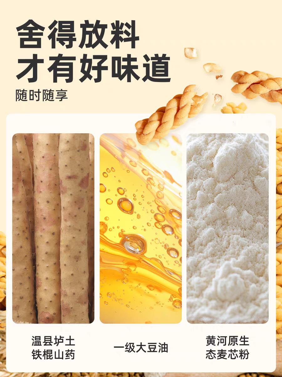 源桃 铁棍山药小麻花 嘎嘣脆爽 回味无穷 1500g/箱