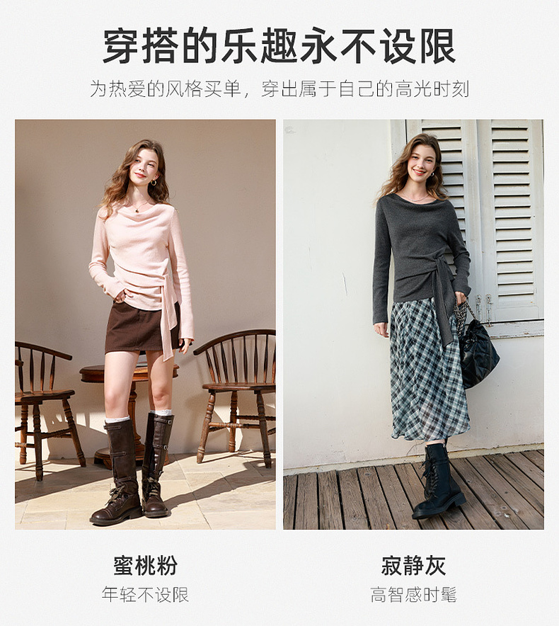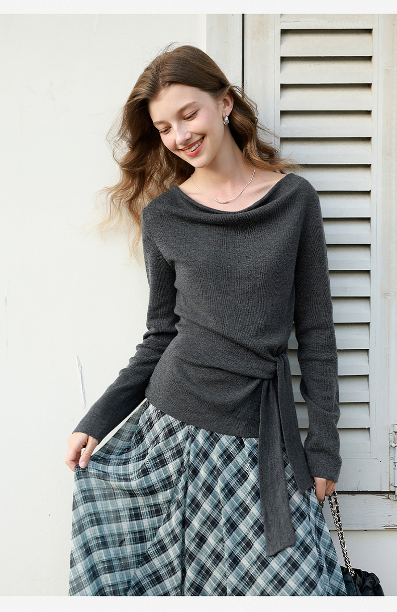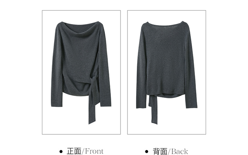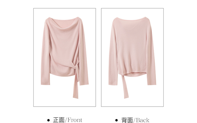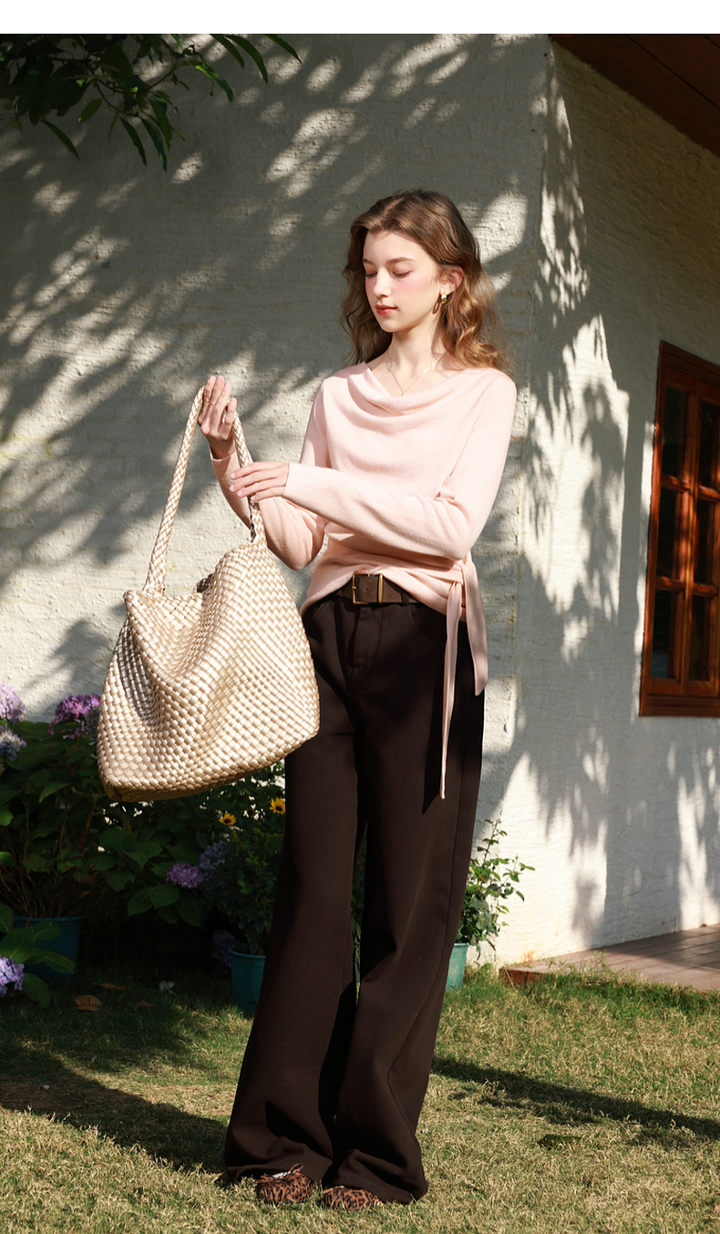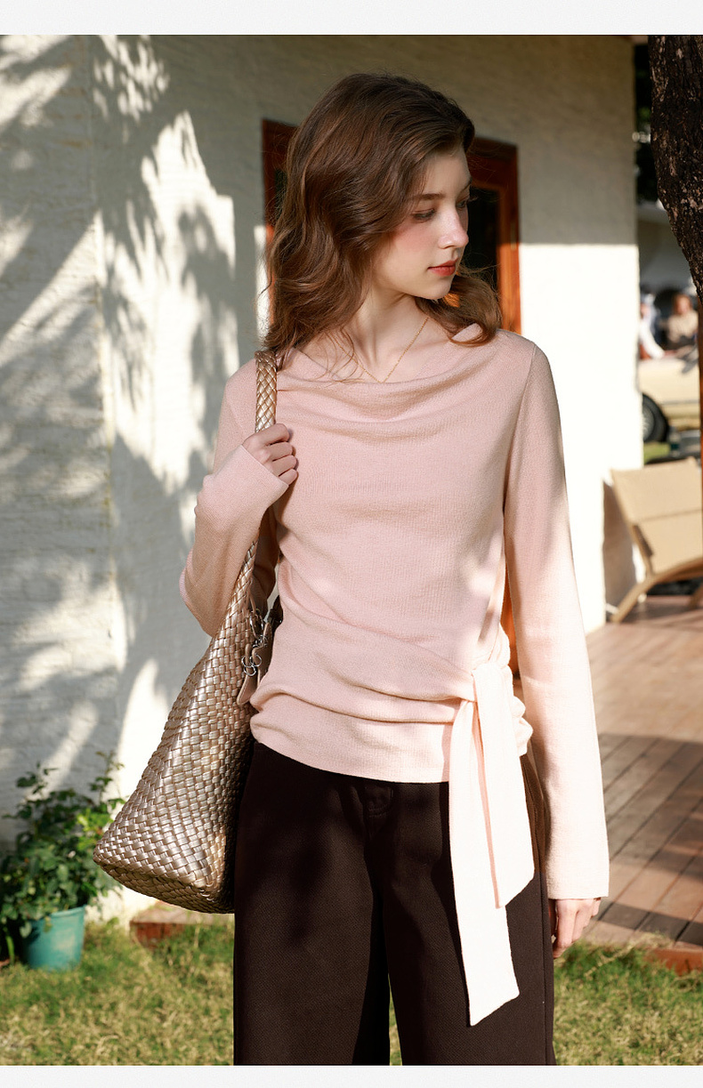 三彩2026春季新款荡领针织衫绑带毛衫修身长袖套头衫优雅M