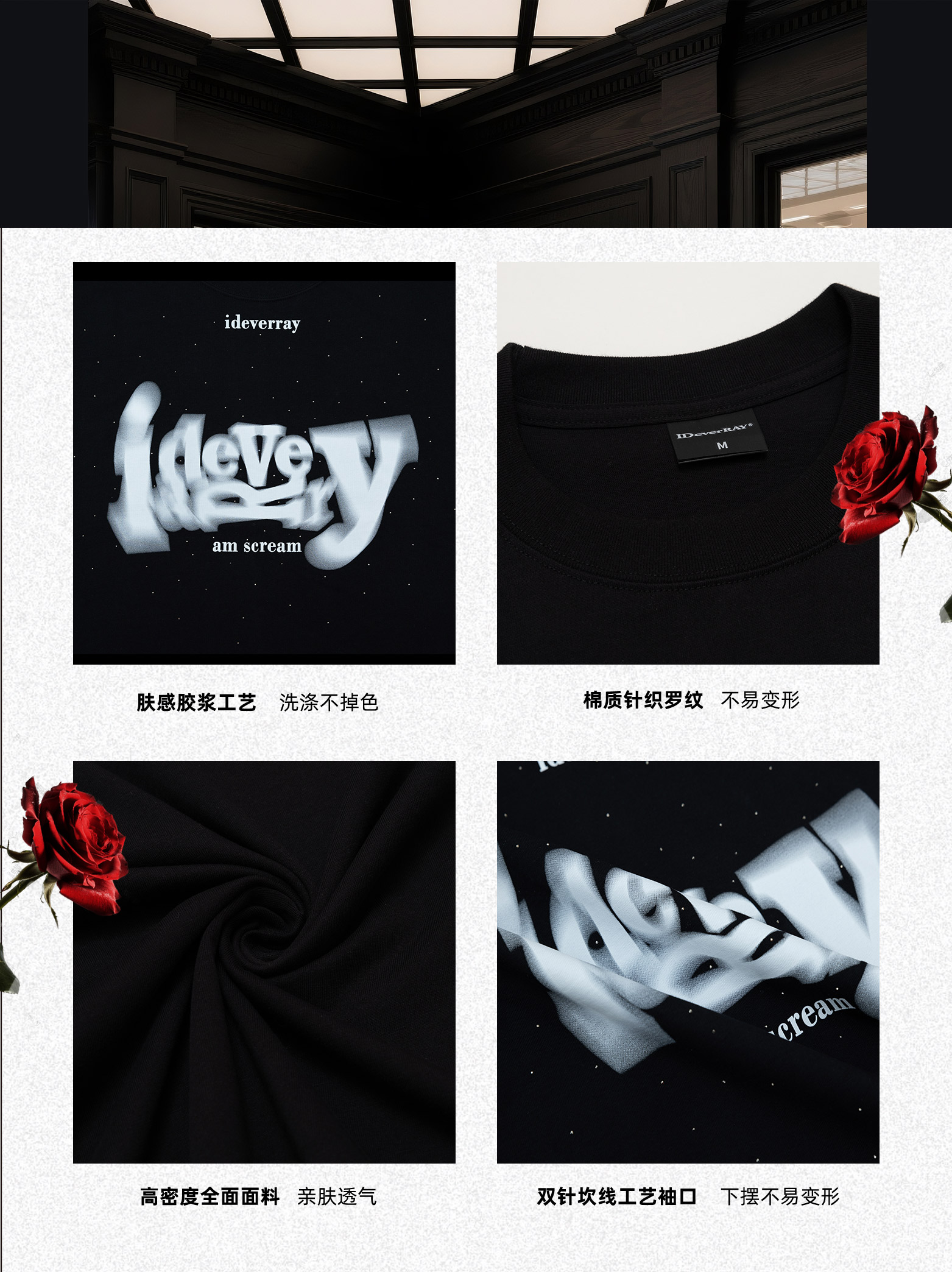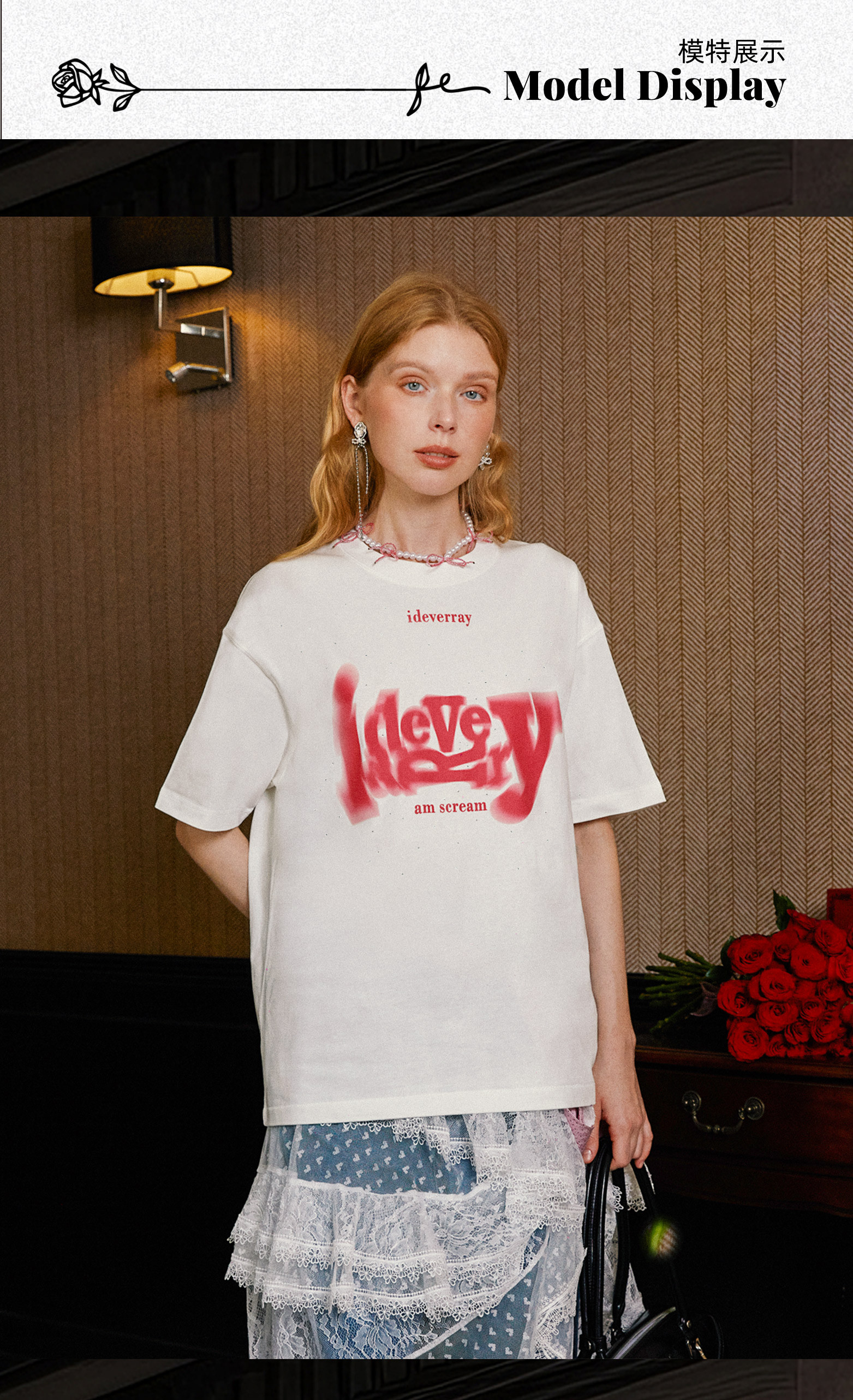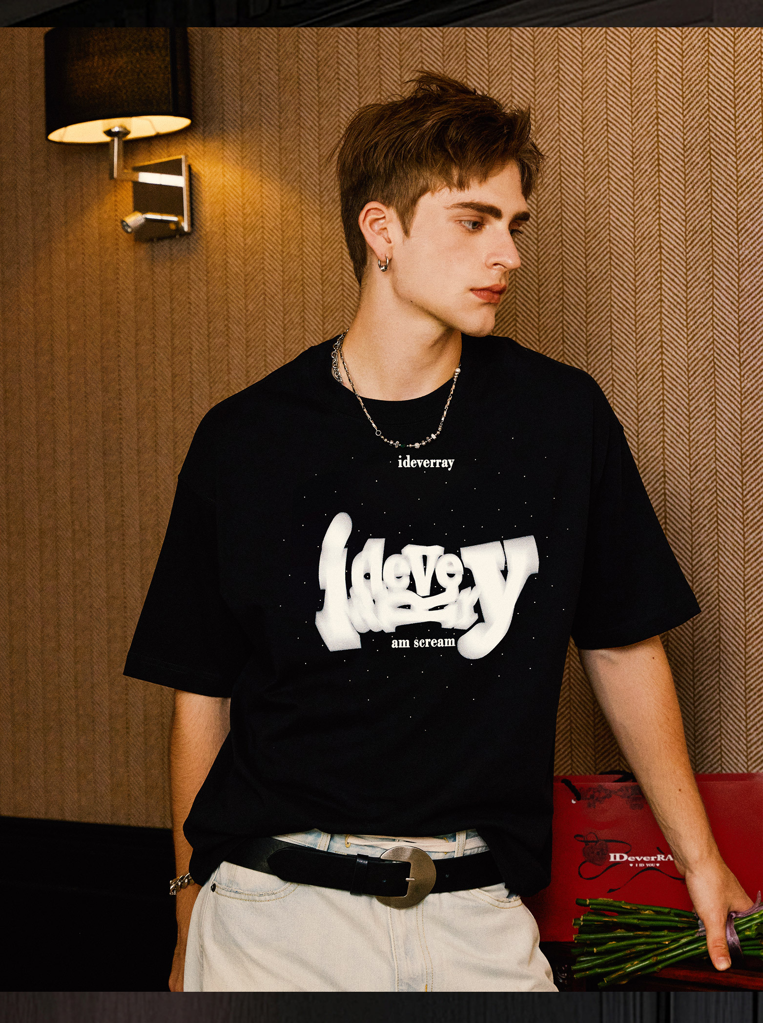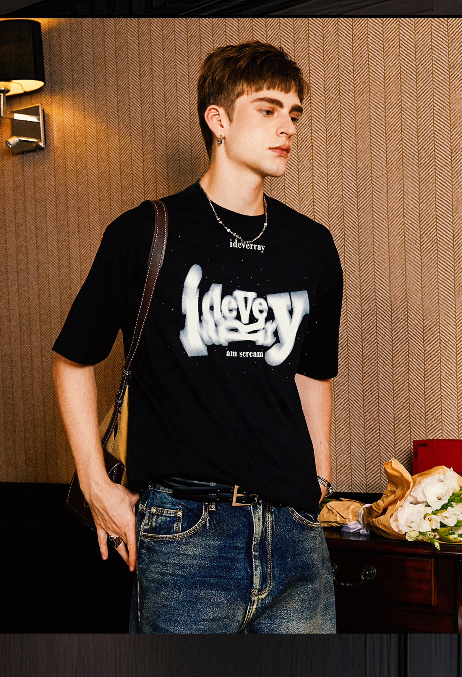 IDEVERRAY 2025夏季新上升级款设计感印花镶钻融合情侣短袖潮流
