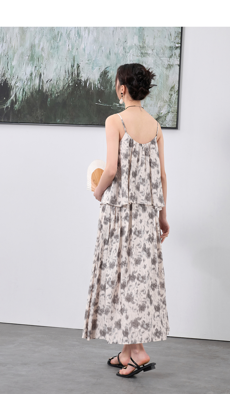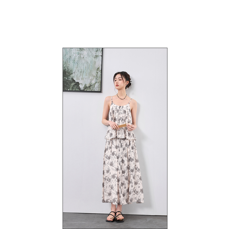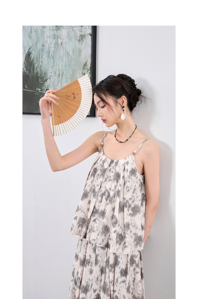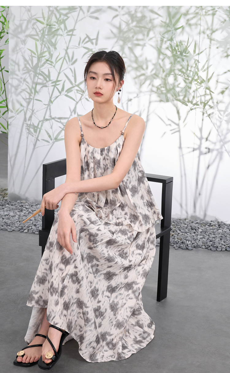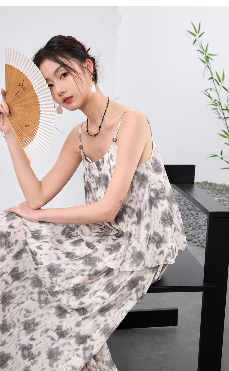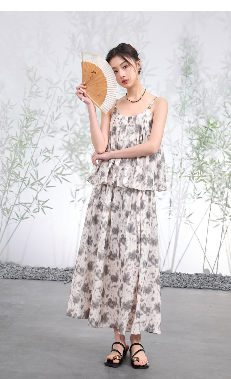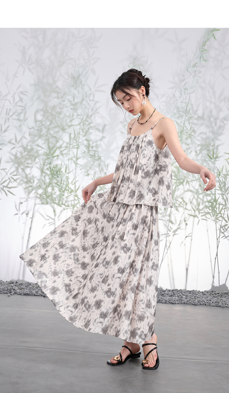 三彩【移花弄影】2024夏季新款新中式套装吊带高腰半身裙宽松长裙C