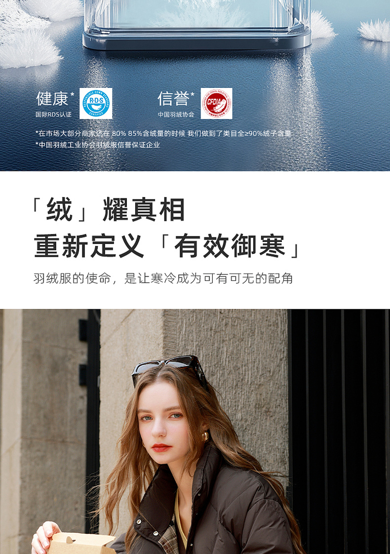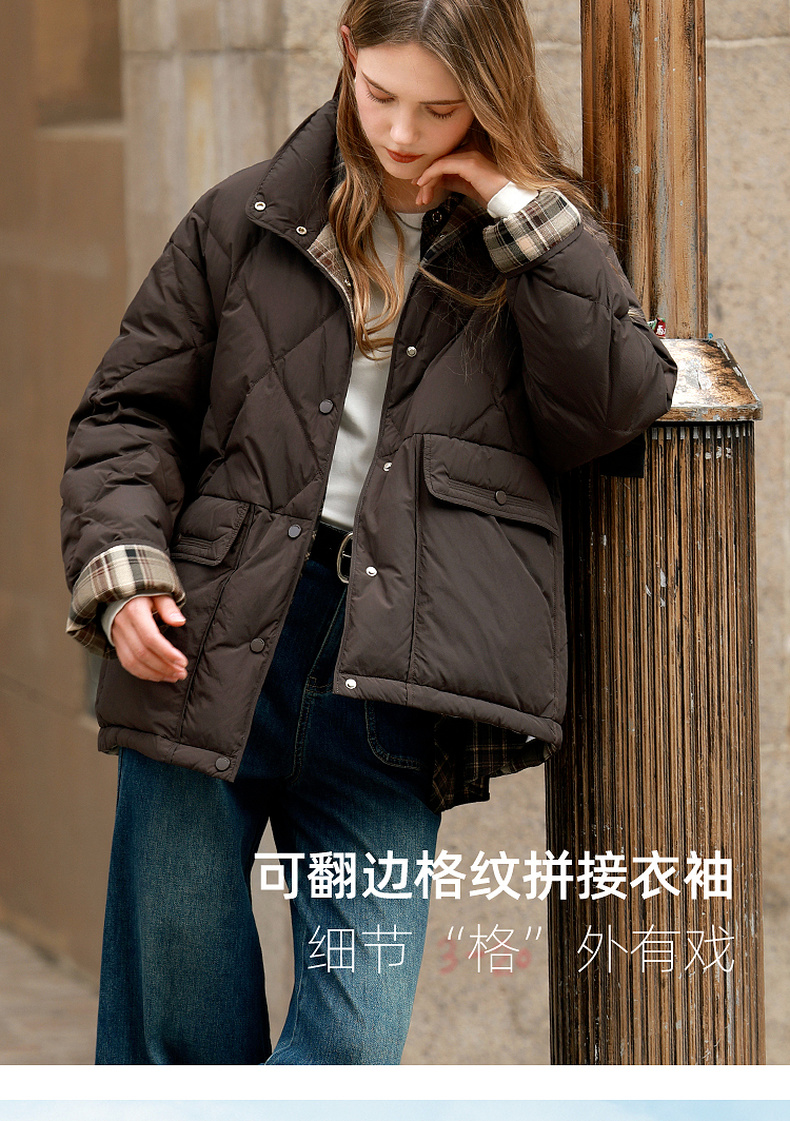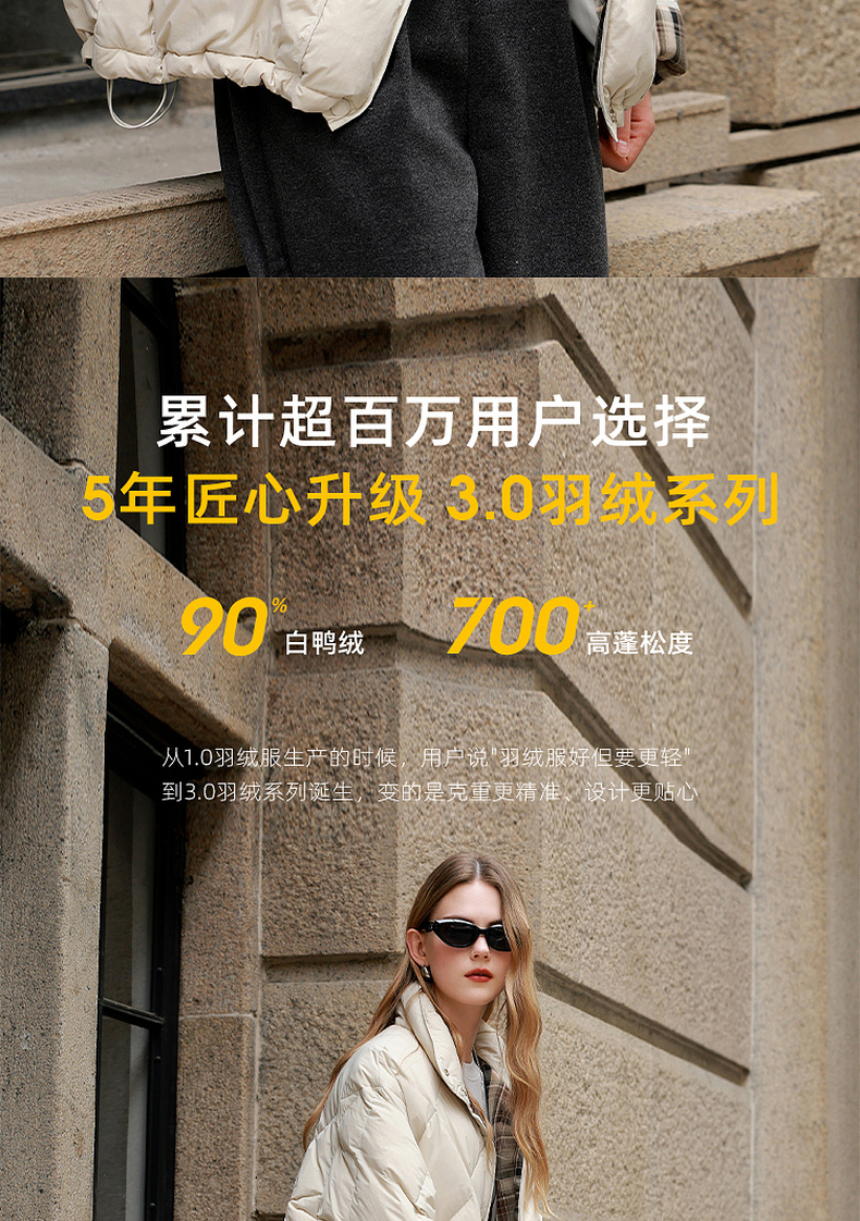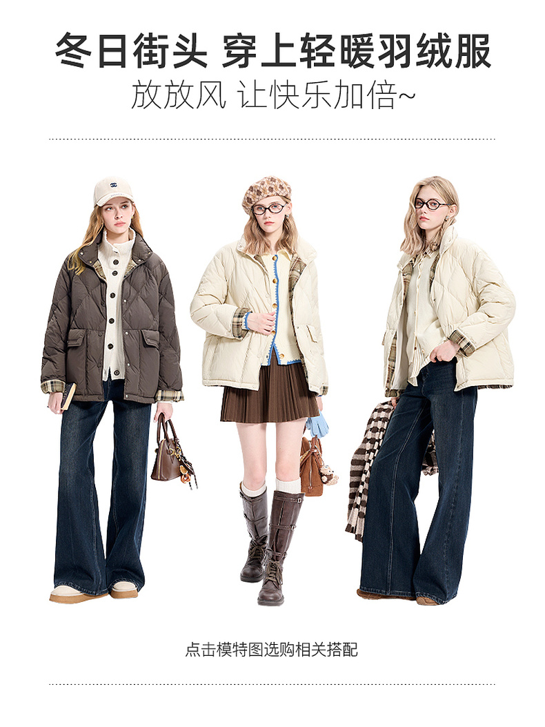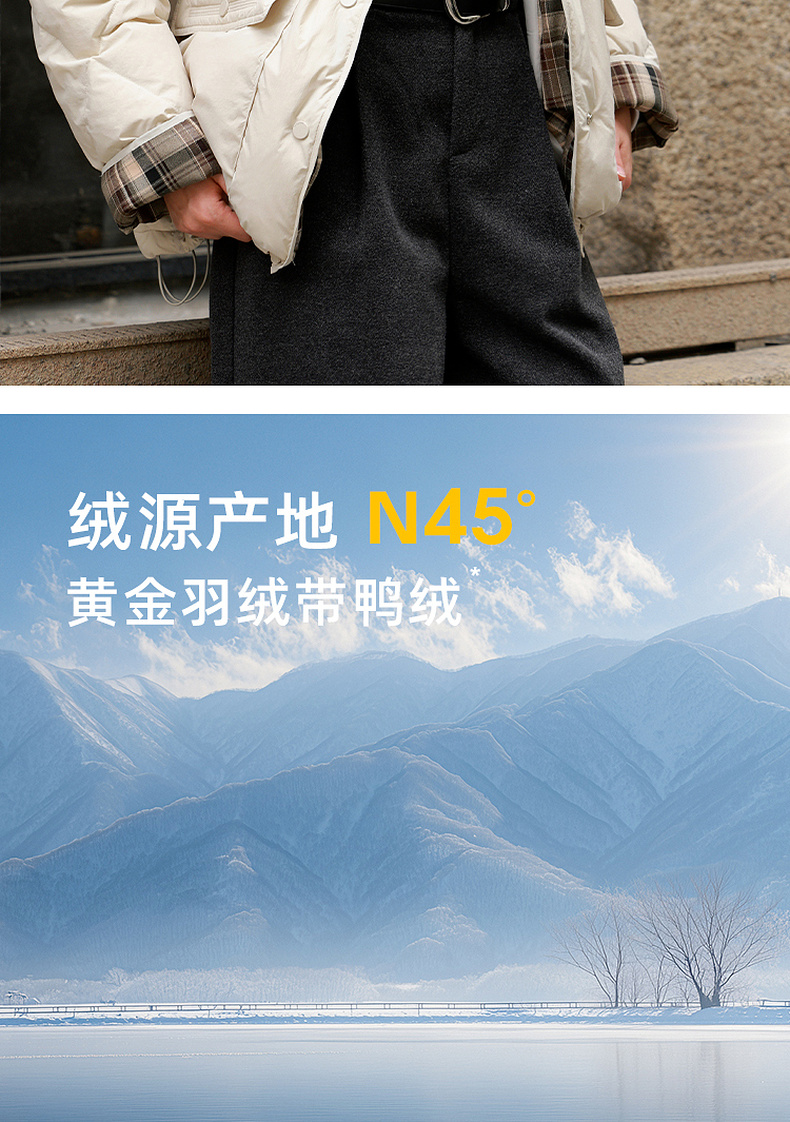 【易打理】三彩2025冬季新款90白鸭绒羽绒服保暖时尚宽松M