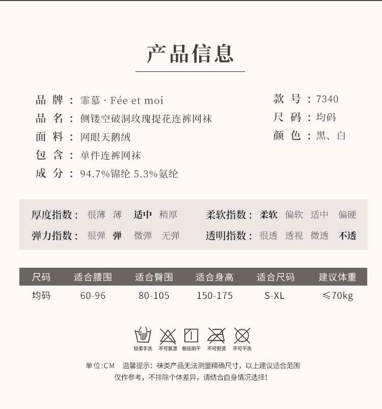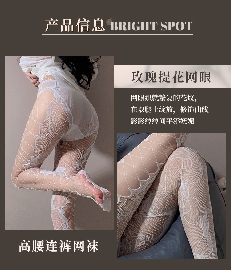 【霏慕】侧镂空破洞玫瑰提花连裤网袜7340情趣性感透肉网眼黑丝