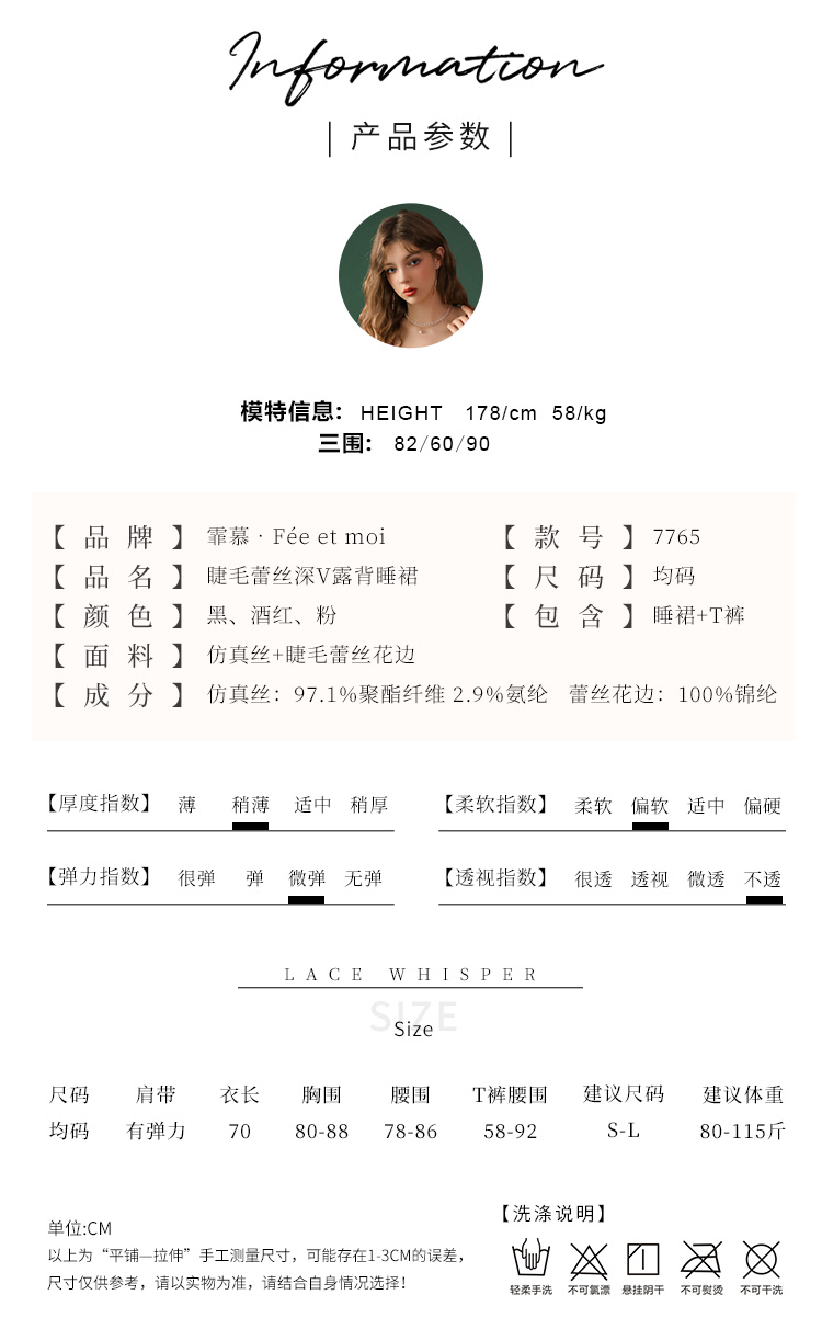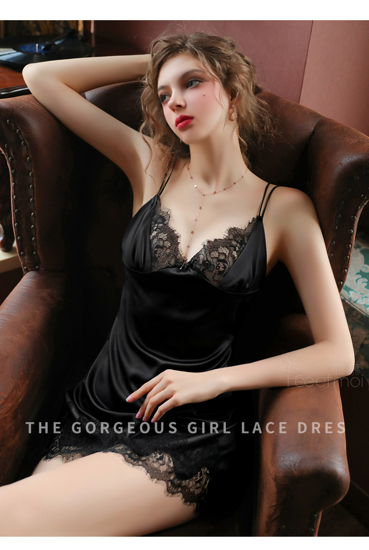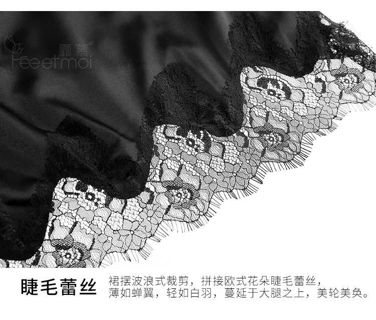 【霏慕】睫毛蕾丝深V露背睡裙7765