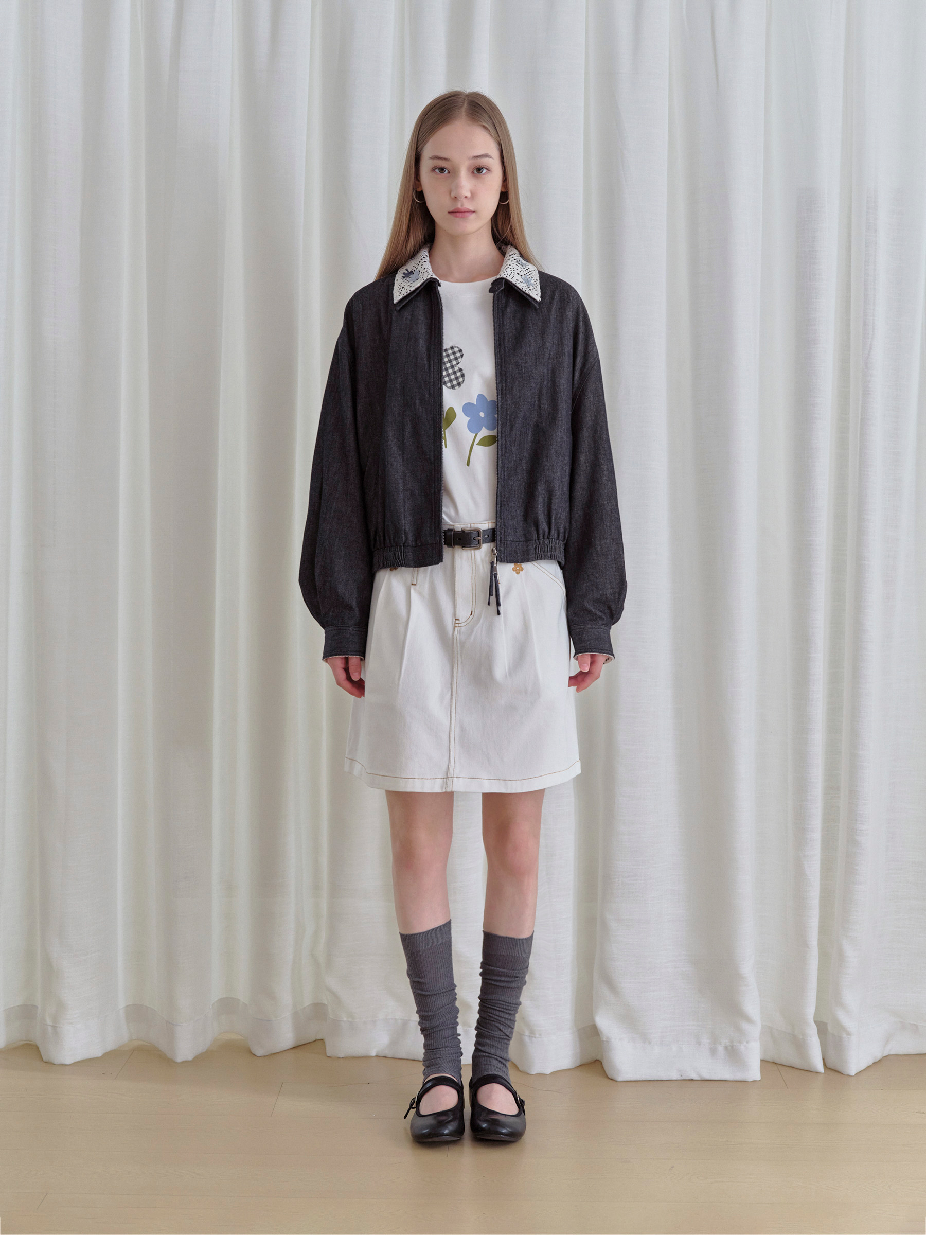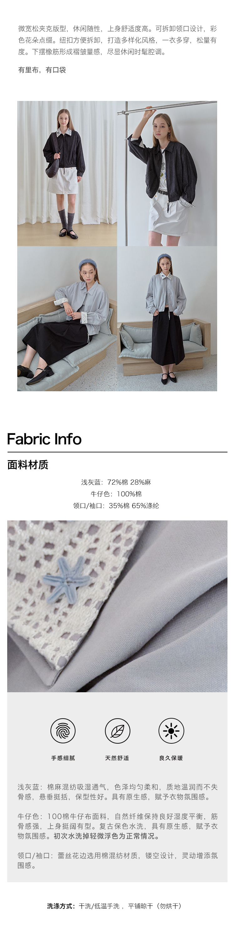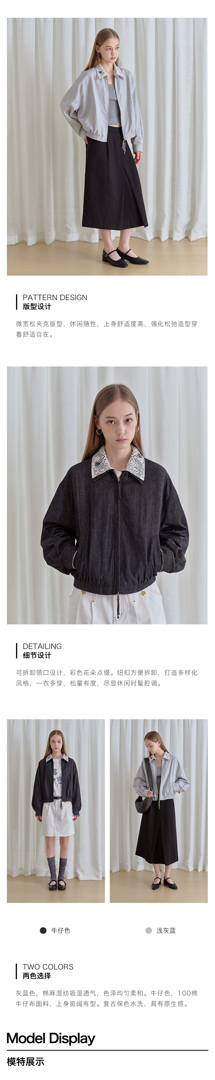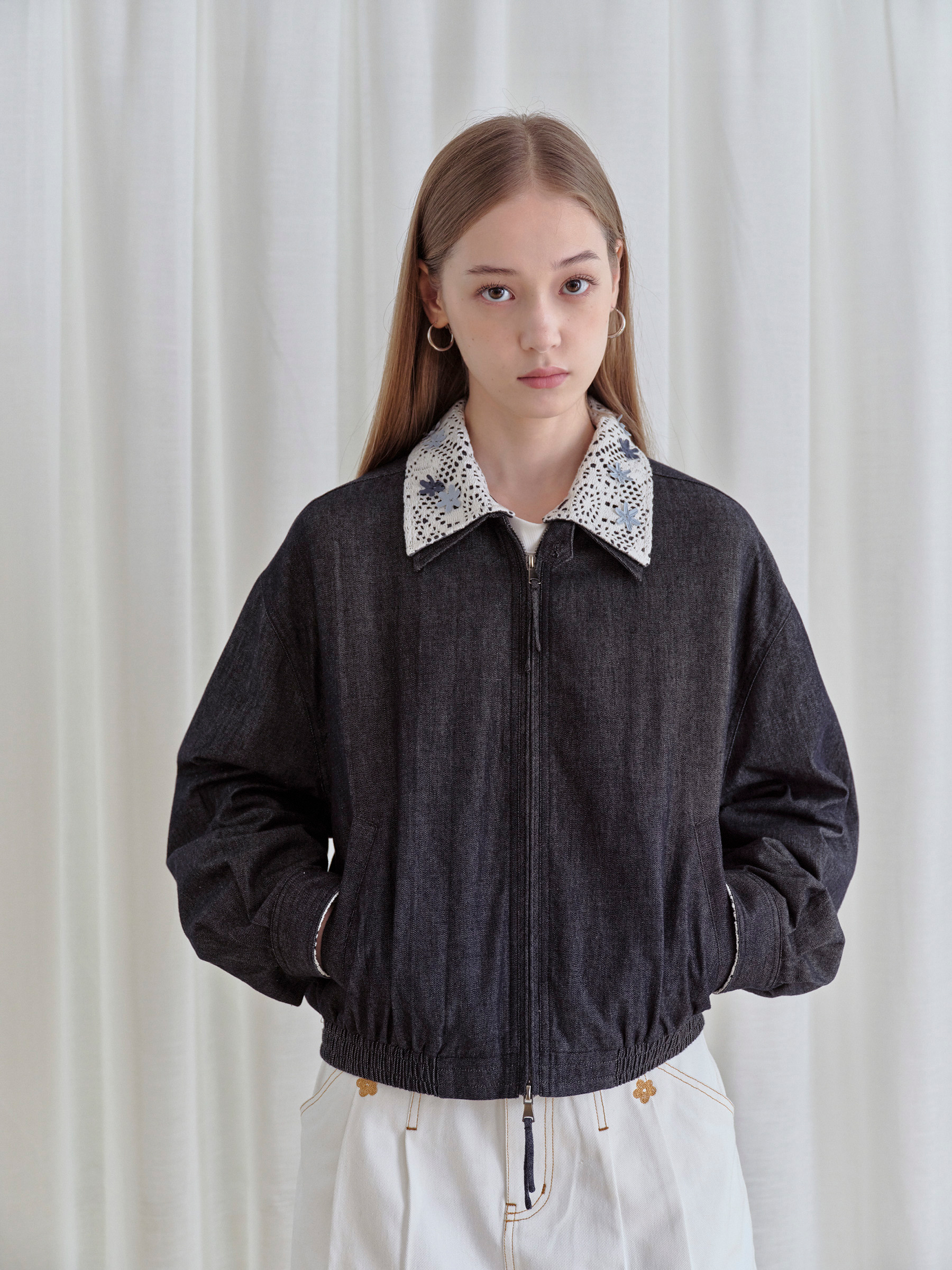 ForPoem 现货 25/FW原创设计可拆卸花朵领子休闲经典夹克外套