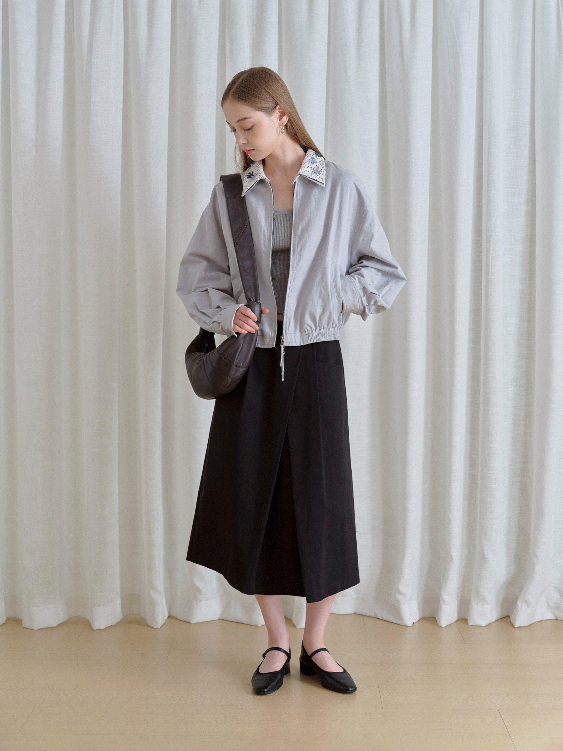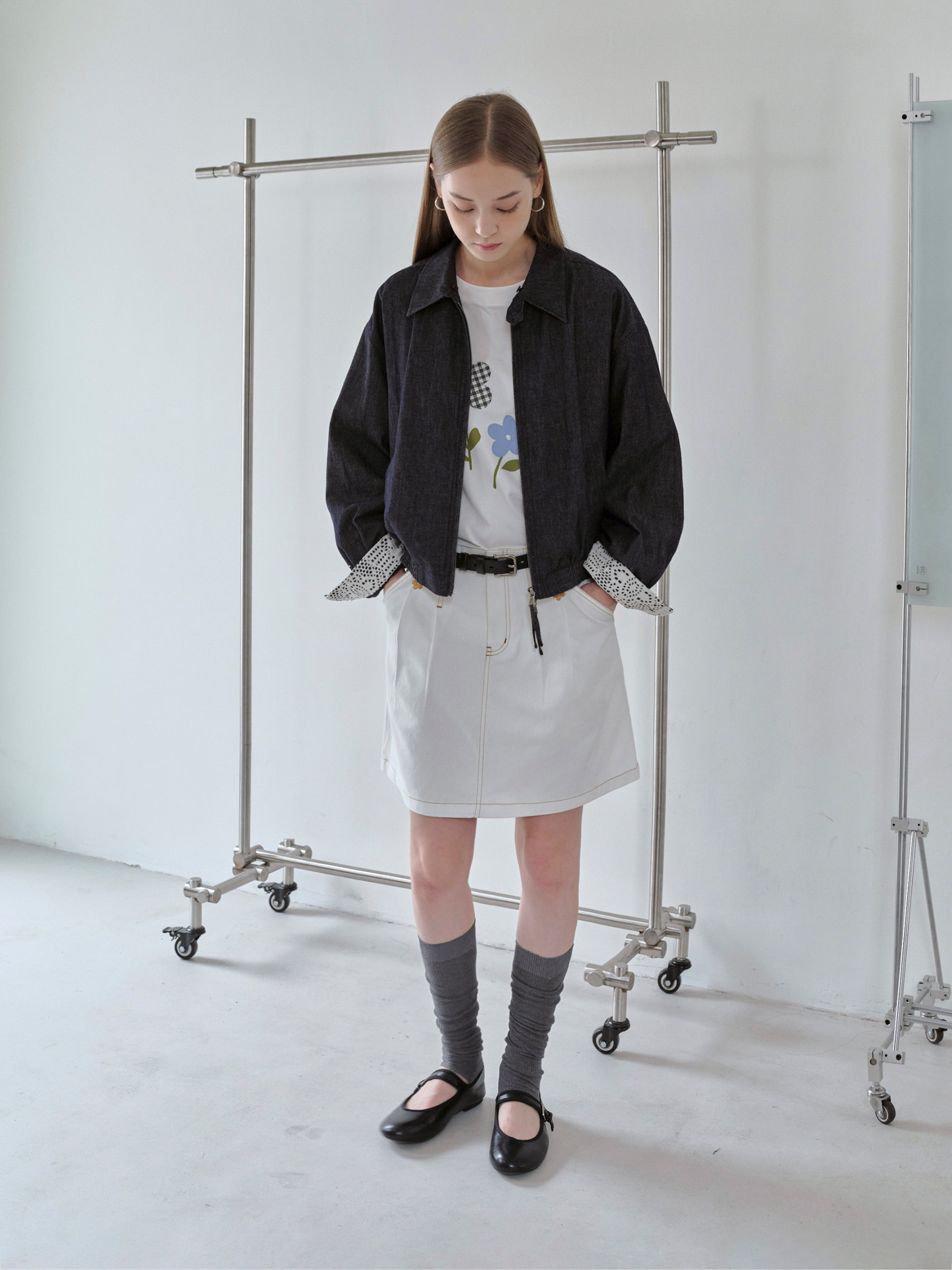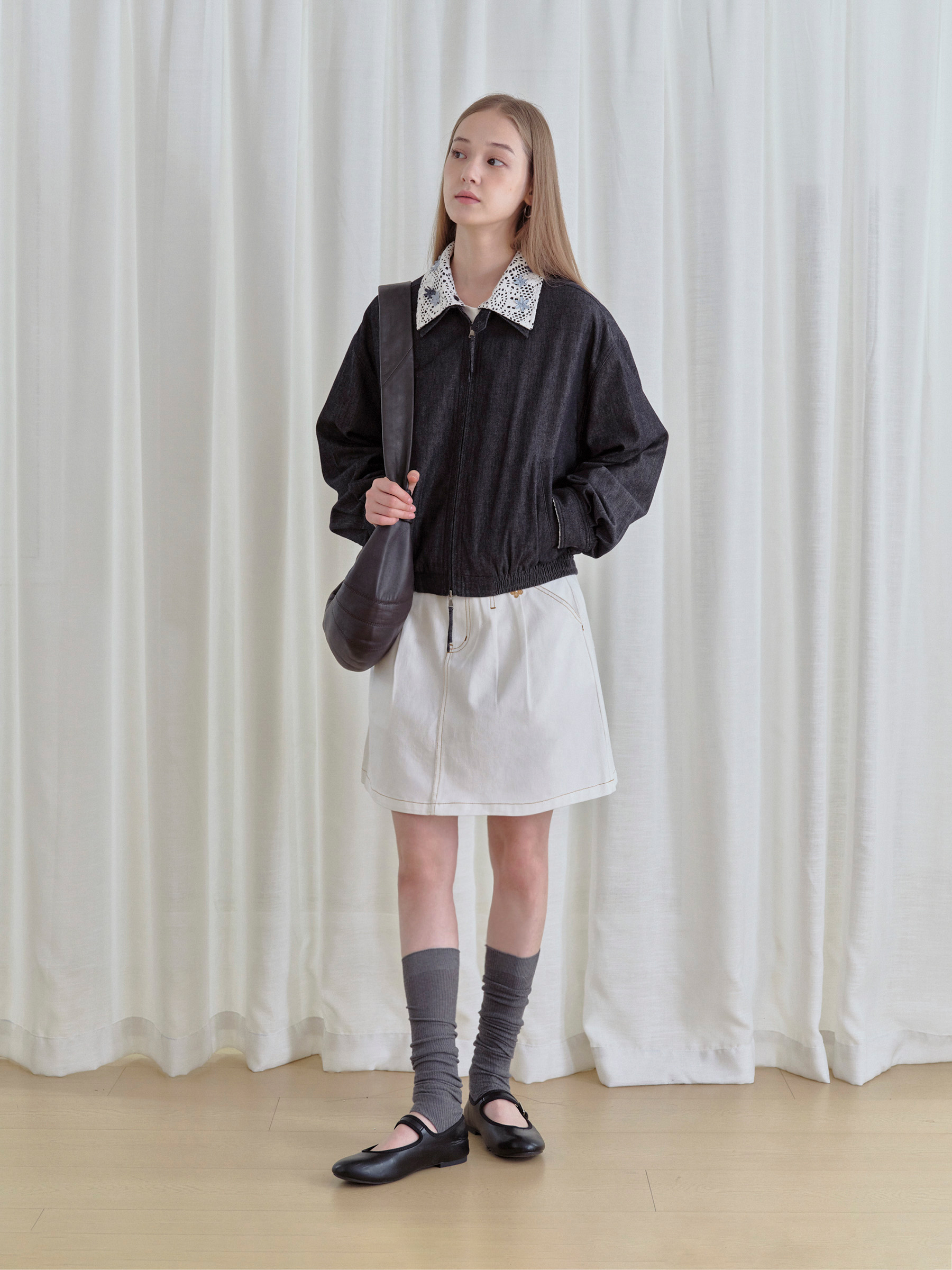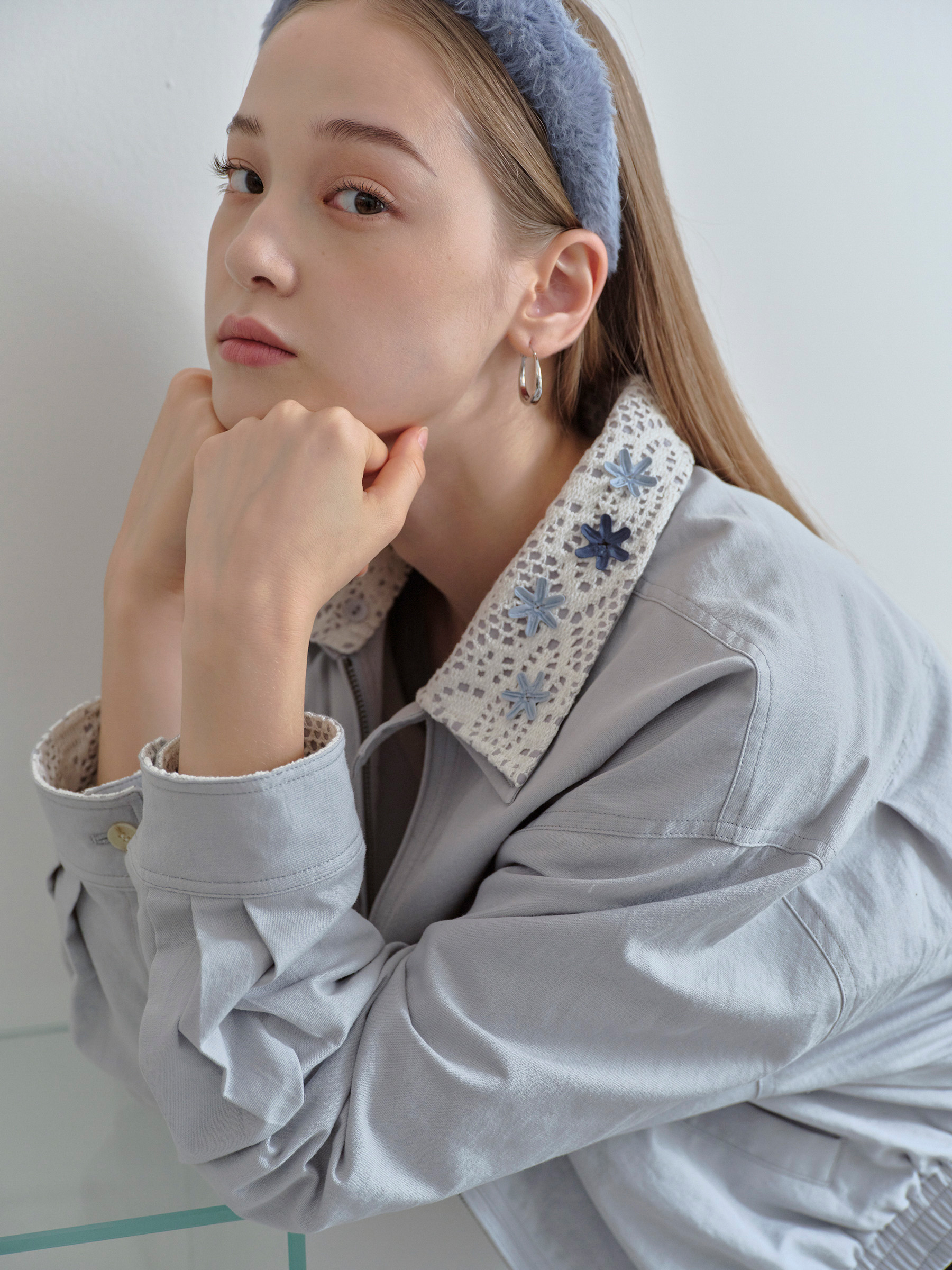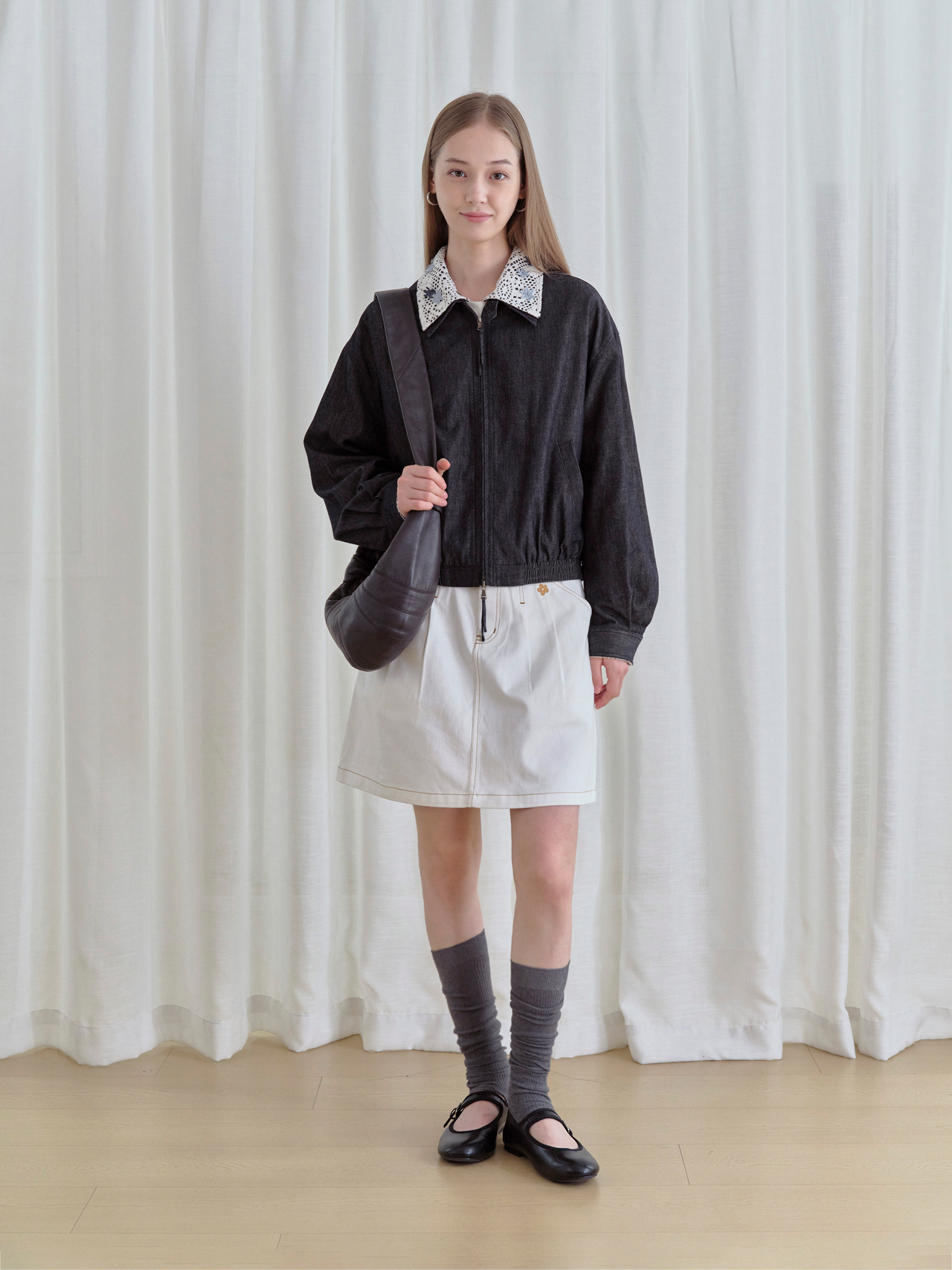 ForPoem 现货 25/FW原创设计可拆卸花朵领子休闲经典夹克外套