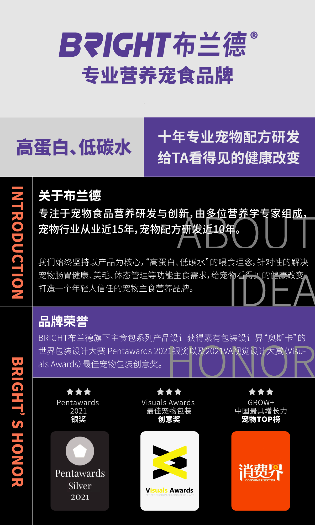 布兰德是一家专注于宠物主食的营养研发与创新的宠物公司,由多位营养学专家共同创立,创始团队成员宠物行业从业超15年,宠物配方研究超10年。布兰德始终坚持“科学有料,专业宠粮的”的产品理念,希望能给宠物看