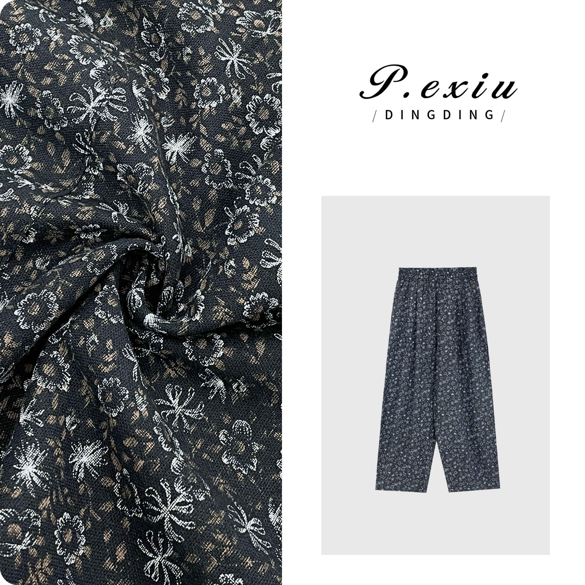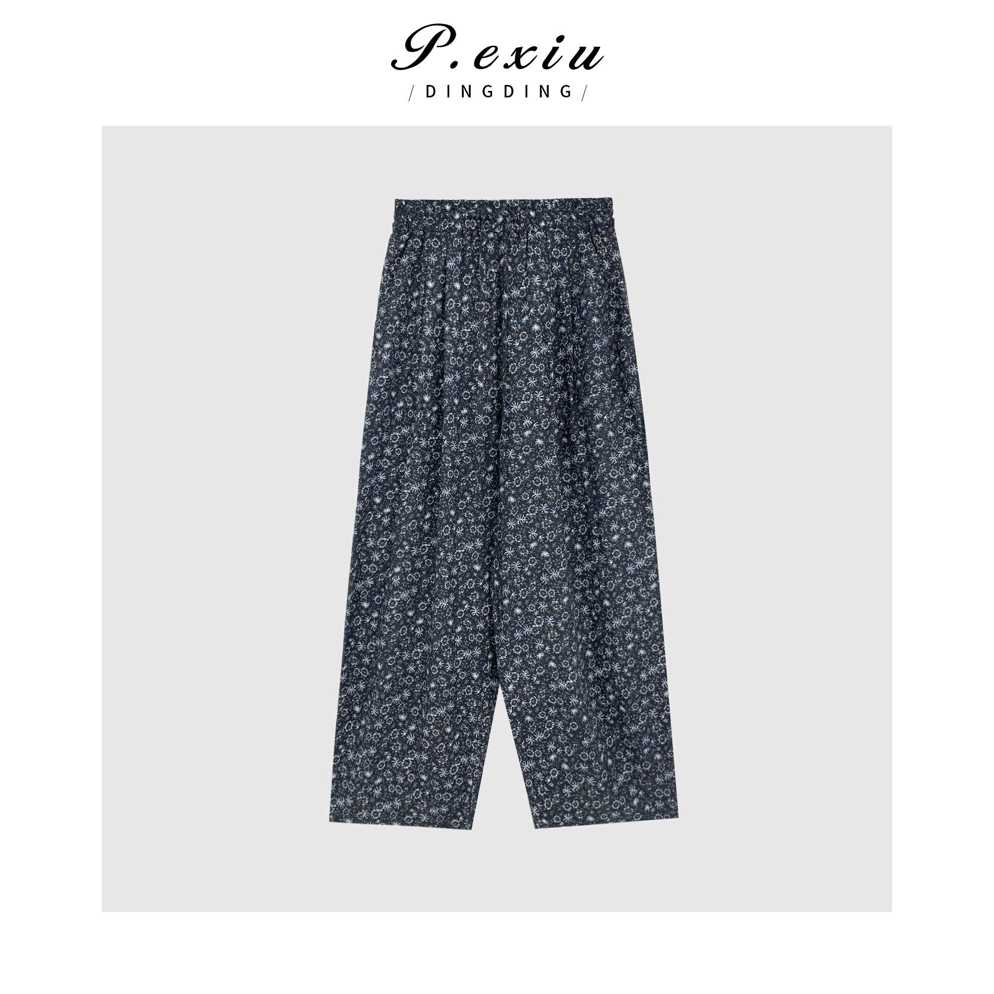 04-6潘依绣丁丁宠粉慵懒风碎花垂感松紧腰宽松直筒休闲裤 W-61471