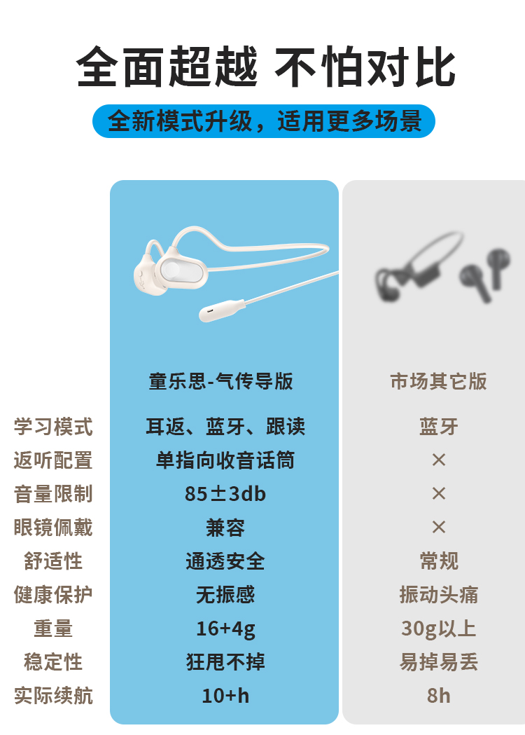 不影响听取外部声音,可以及时听到危险提醒,户外安全运动与学习两不误。