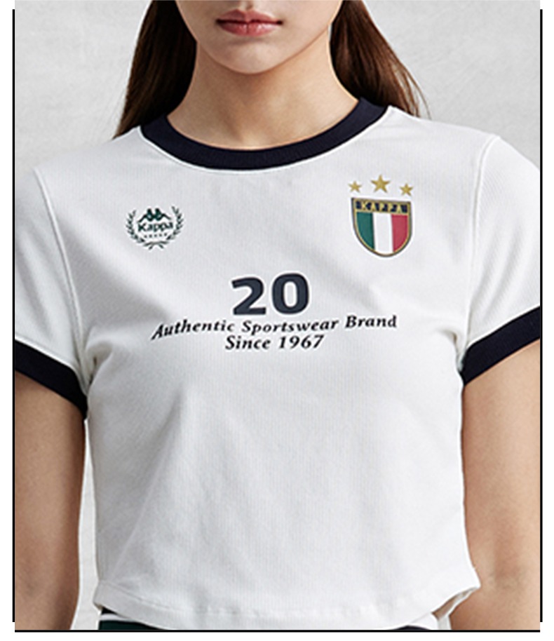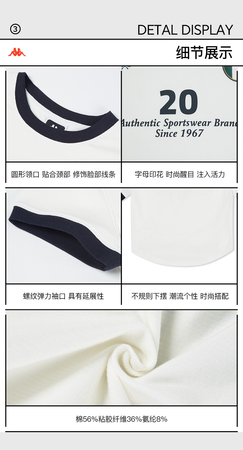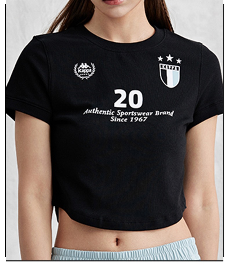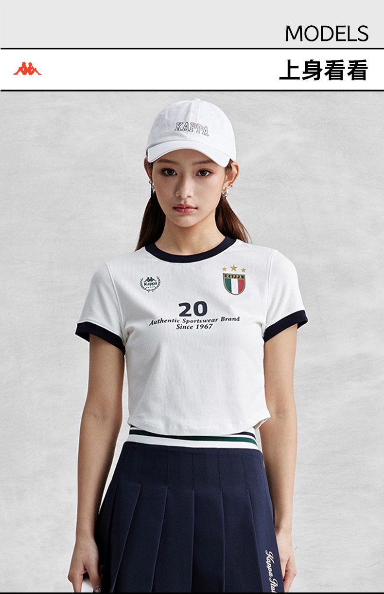 Kappa卡帕复古短袖2024新款女短款休闲T恤字母半袖夏K0E42TD22