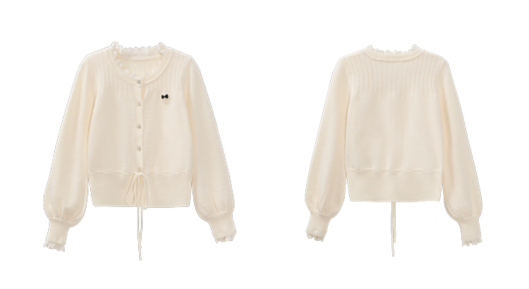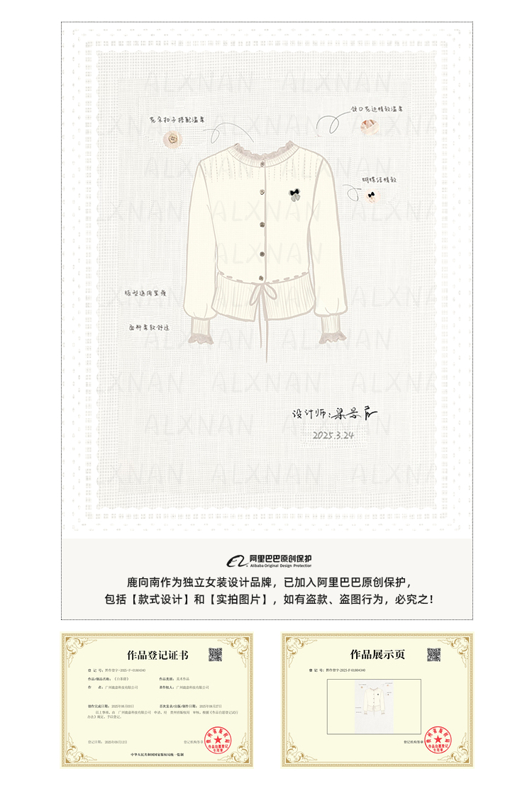 鹿向南「寻梦山茶」杏色针织衫女慵懒早秋上衣独特长袖毛衣开衫